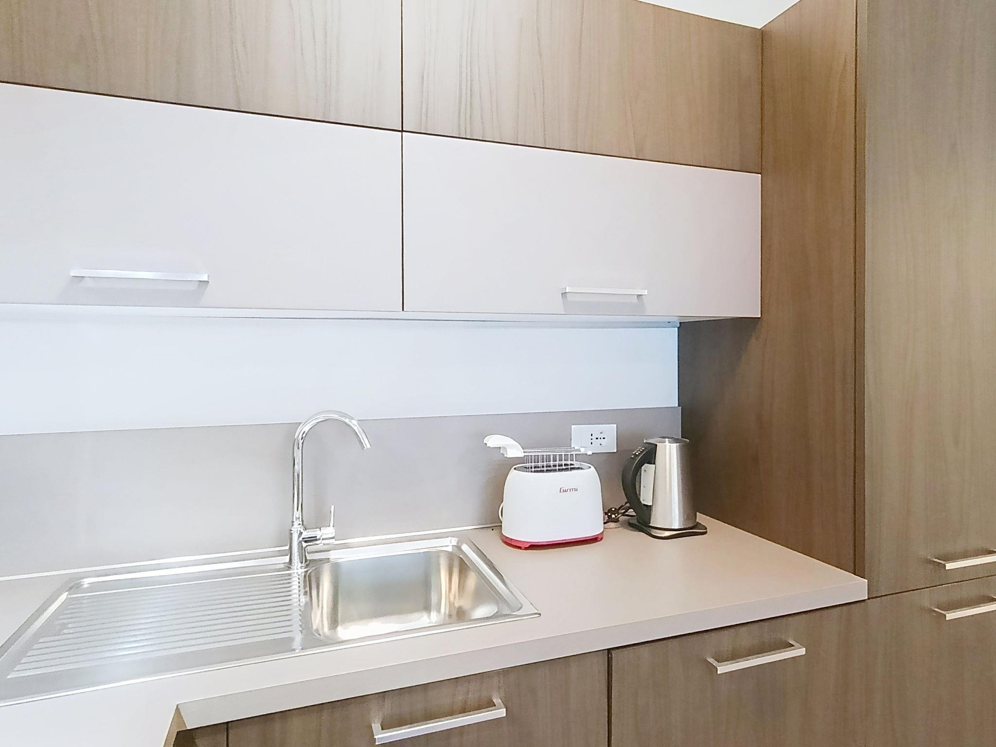 Riva del Garda: Very modern, comfortable apartment block "Condominio Garda". 70 apartments in the property. In the centre of Riva del Garda, in a central, sunny position in the residential district, 50 m from the lake, 50 m from the beach, direct access to the beach, direct access to the lagoon, south-east facing position. For shared use: with natural garden 500 m2 (fenced), lawn for sunbathing, beautiful garden to relax, natural pond. In the complex: reception, lounge, WiFi, relaxation room, table tennis, lift, storage room for bicycles. Linen change weekly (suppl. charge extra). Towel change weekly (suppl. charge extra). Room cleaning weekly on request (extra). Roofed, parking at the house. E-charging station. Grocery 100 m, supermarket, shopping centre 200 m, restaurant, bar 30 m, bakery 100 m, pedestrian zone 50 m, bicycle rental, pub garden 100 m, 5 minute walk to the centre, bus stop 50 m, railway station "Rovereto" 17 km, ferry "San Nicolò" 500 m, pebble beach "Sabbioni" 50 m, thermal baths "Garda Therme" 4 km, lake Garda 50 m. Golf course (18 hole) 4 km, surf school, sailing school 50 m, tennis 2 km, indoor tennis centre 1 km, minigolf 4 km, riding stable 4 km, walking paths from the house, cycle lane, children's playground 50 m. Nearby attractions: Castello di Arco 5 km, Trento 44 km, Terme di Sirmione 90 km, Gardaland 62 km, Climbing Stadium Arco 5 km, Stazione dei Bus 2 km. Well-known ski regions can easily be reached: Pinzolo - Madona di Campiglio 58 km. Well-known lakes can easily be reached: Lago di Ledro 14 km, Lago di Tenno 14 km, Lago di Molveno 50 km. Hiking paths: Ferrata Cima SAT 1 km, Ferrata Colodri 4 km, Pista Ciclabile Riva - Torbole - Sarche 50 m. Please note: private mooring. The complex has night security. Motorway close by 18 km from the property. Railway line closeby 20 km from the property. Airfield 90 km from the property. Neighbourhood highly sensitive to noise. Quietness and good behaviour expected.