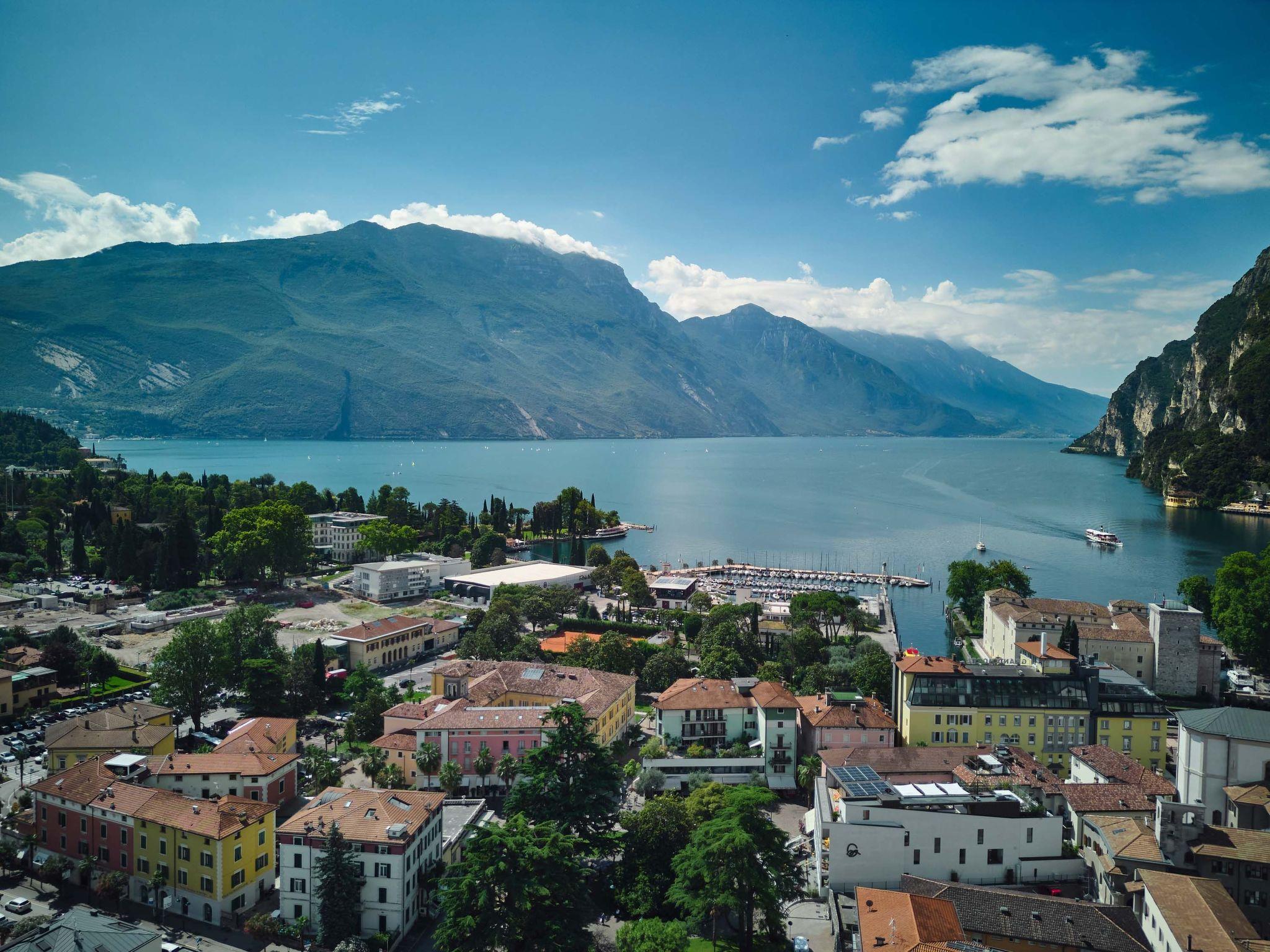 Riva del Garda is a charming town on the northern shore of Lake Garda, ideal both for a relaxing holiday thanks to its beautiful, wide beach, lakeside promenades, forests and nearby mountains, and for a full-spectrum holiday with sailing, windsurfing, climbing and cycling.