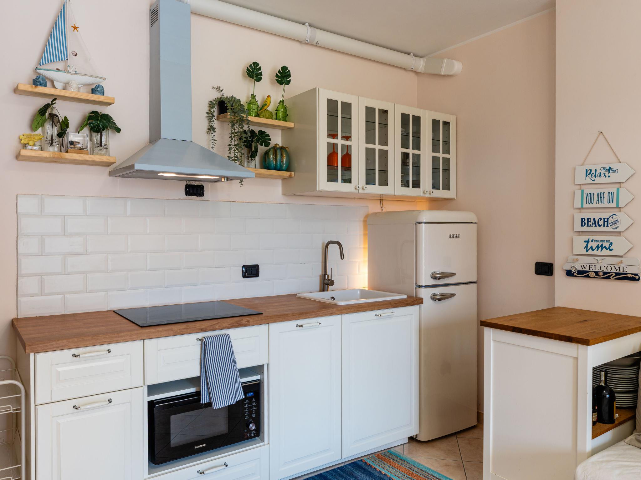 "Piccolo Tesoro", 1-room apartment 30 m2, on the ground floor. Very tasteful and cosy furnishings: living/dining room with 1 bed (140 cm, length 200 cm), air conditioning. Exit to the balcony. Kitchenette (dishwasher, 4 induction hot plates, toaster, kettle, microwave). Shower/bidet/WC. Gas heating, air-conditioning, forced-air heating. Heating available only from 01.11. to 15.04. Small balcony. Balcony furniture. Side view of the sea. Facilities: washing machine, baby cot for up to 2 year olds, hair dryer. Internet (WiFi, free). Garage at the house. Please note: non-smoking house. Maximum 1 pet/ dog allowed. Smoke alarm, fire extinguisher. IT008050B4WKQK3B34
