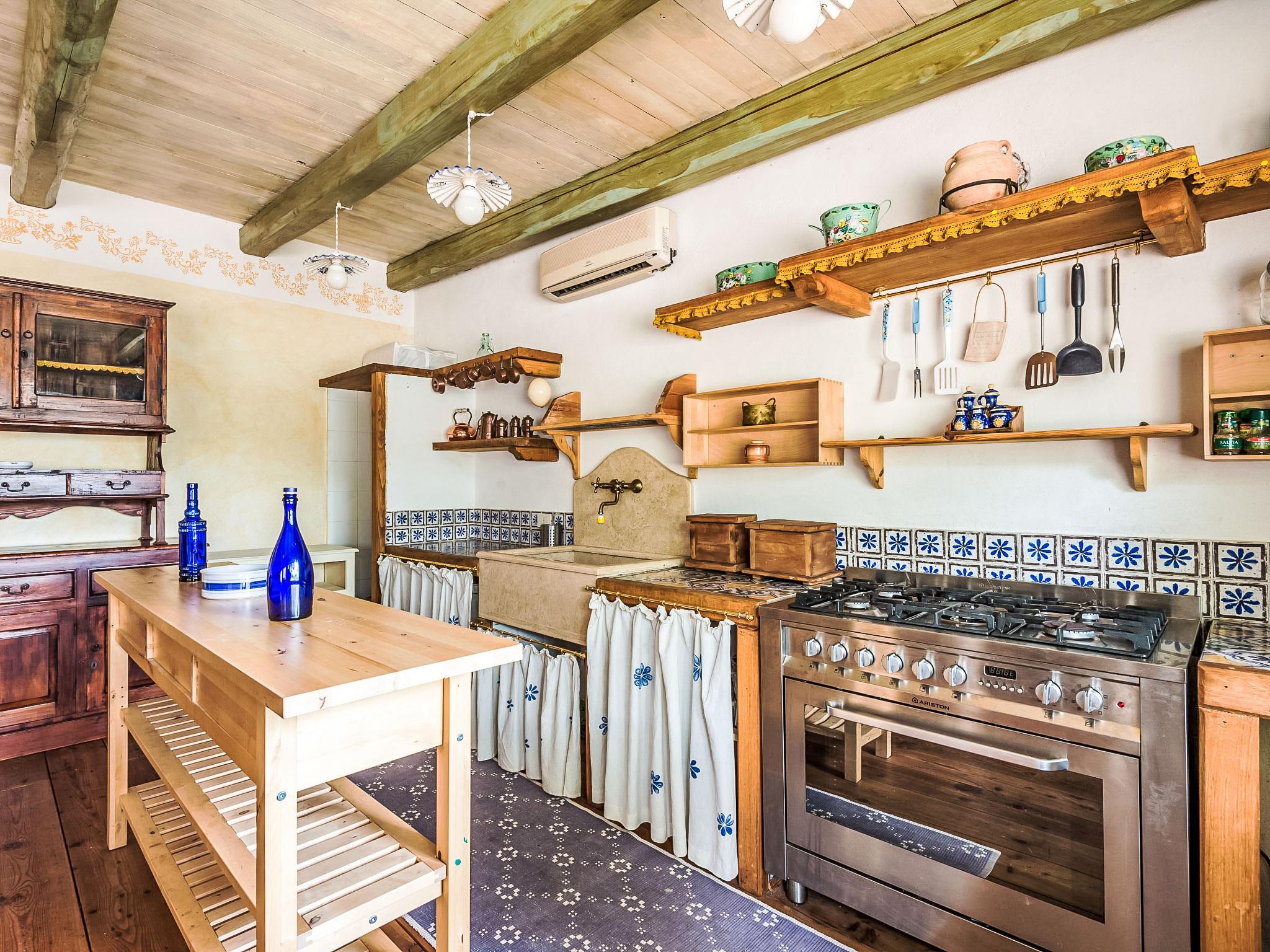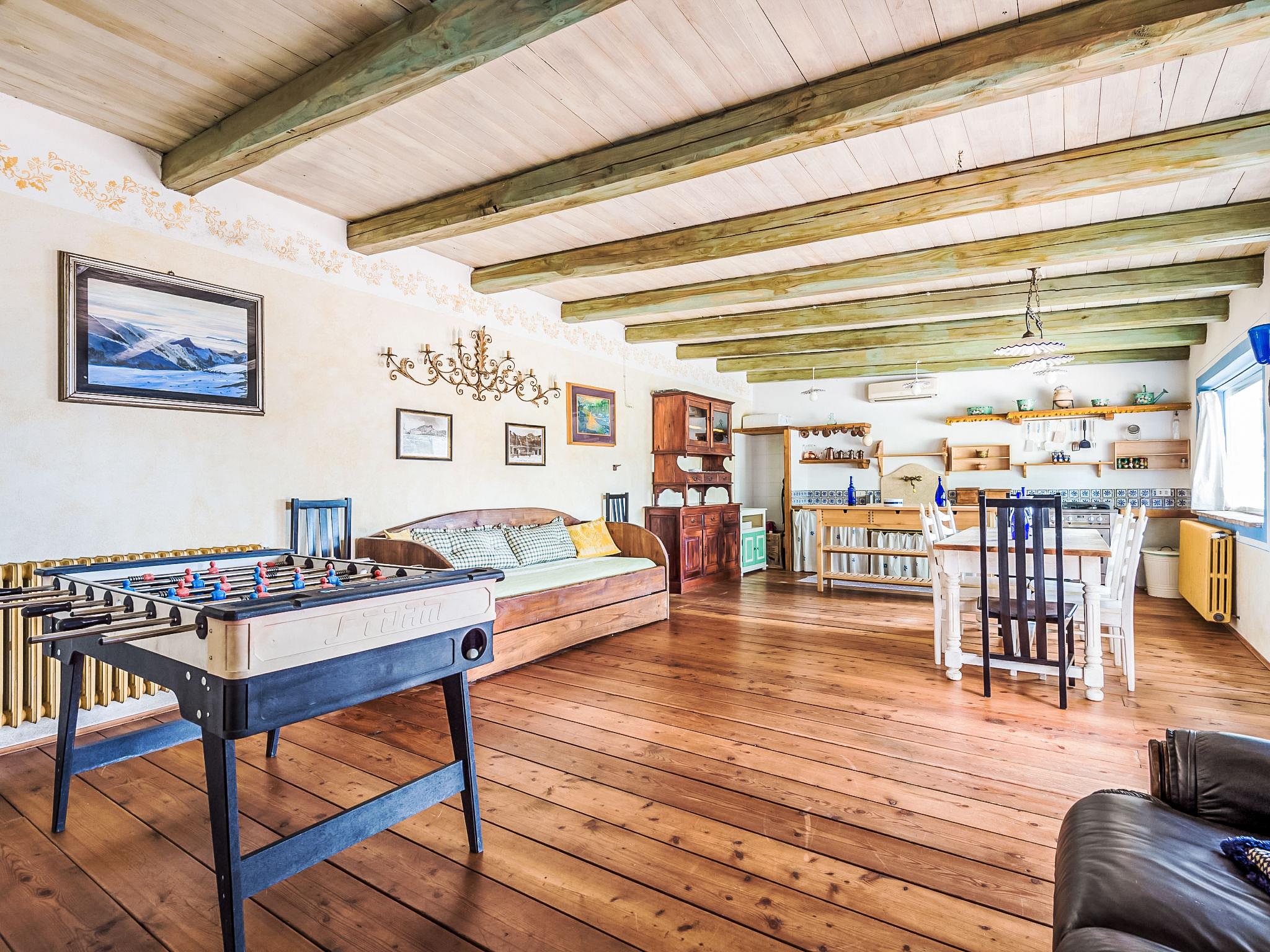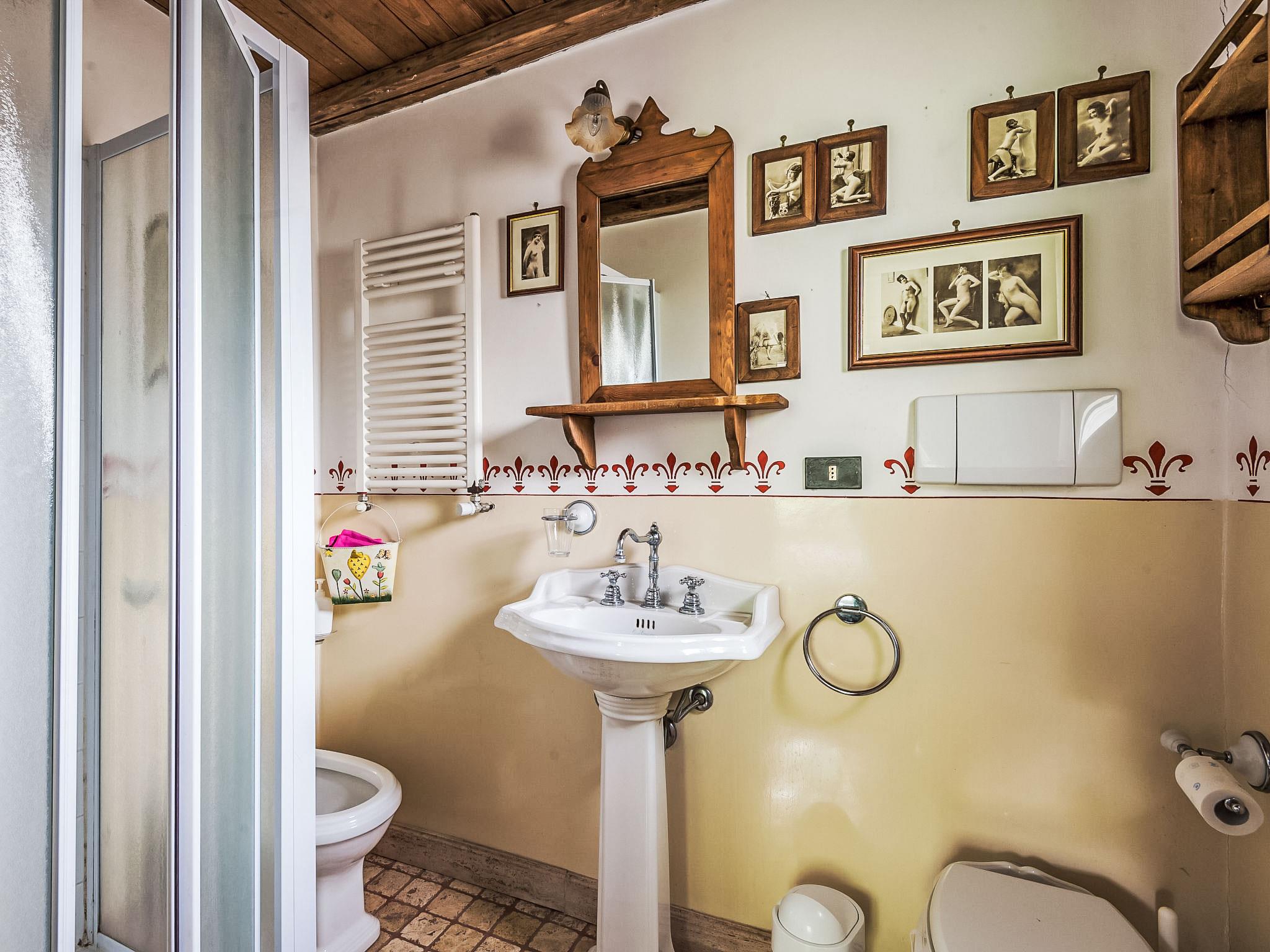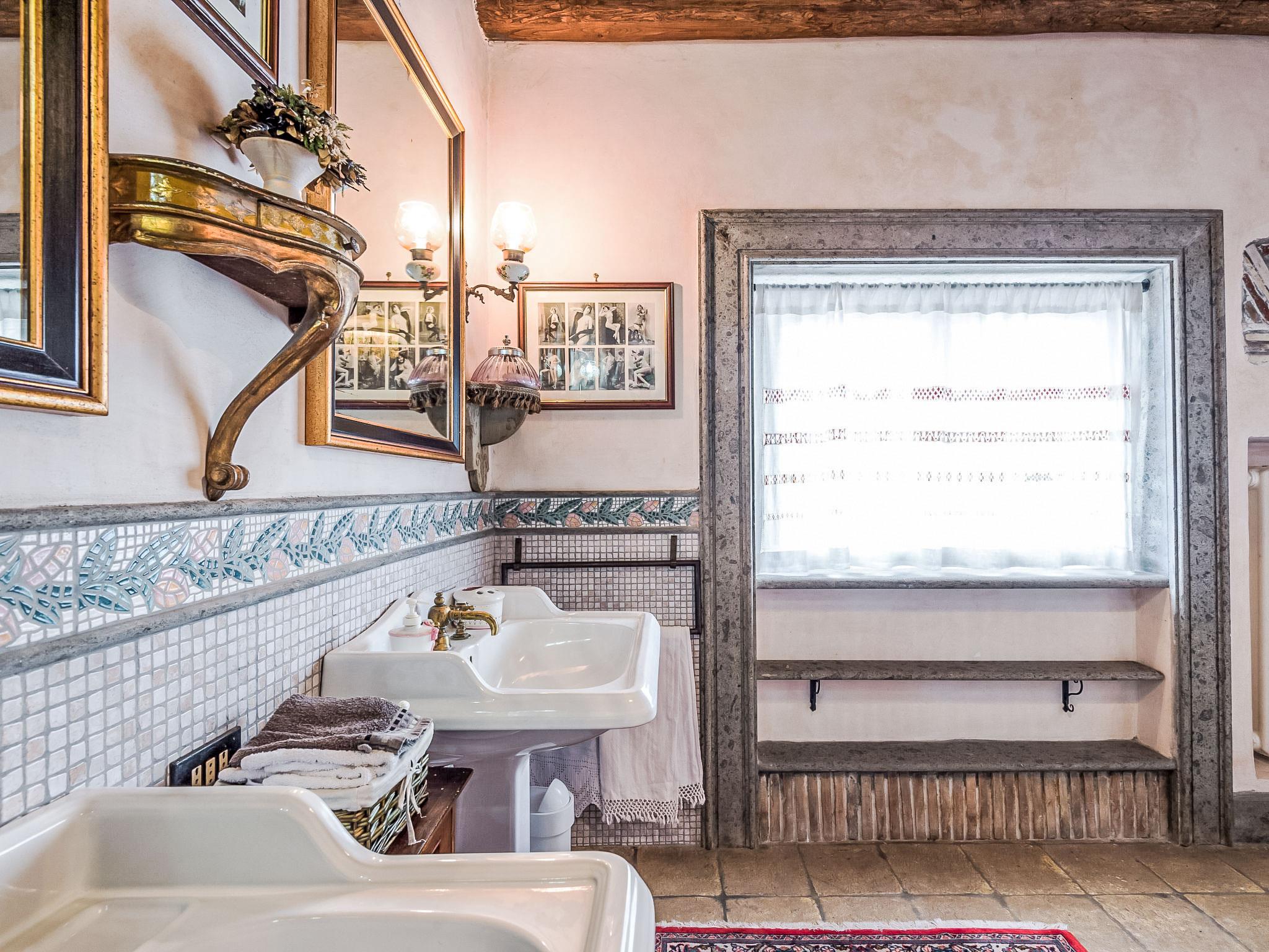 6-room villa 420 m2 on 3 levels. Very comfortable and tasteful furnishings: living room with open-hearth fireplace. Billiard room. 1 room with 1 double sofabed and 1 double bed. Dining room. Large, open kitchen 30 m2 (5 hot plates, oven, dishwasher, toaster, microwave, freezer, electric coffee machine) with open-hearth fireplace, dining table and TV. Shower/bidet/WC, 2 sep. WC's. Upper floor: 1 double bedroom with shower/bidet/WC. Exit to the balcony. 1 large room with 1 double bed and bath/shower/bidet/WC. Exit to the balcony. 1 double bedroom. (open staircase) open gallery with sloping ceilings with 1 bed. Shower/bidet/WC. 2nd upper floor: (spiral staircase), 1 large room with panoramic window with 3 beds and air conditioning. Living room with TV and flat screen. Shower/WC. Heating. Very beautiful panoramic view of the lake and the valley. Facilities: washing machine, iron, hair dryer. Internet (WiFi, free). The ground floor rooml with 1 double bed, 1 double sofa bed, is annex by the pool and it kas also a shower / WC and separate WC. Kitchenette. IT058086C2MA4YS7VB