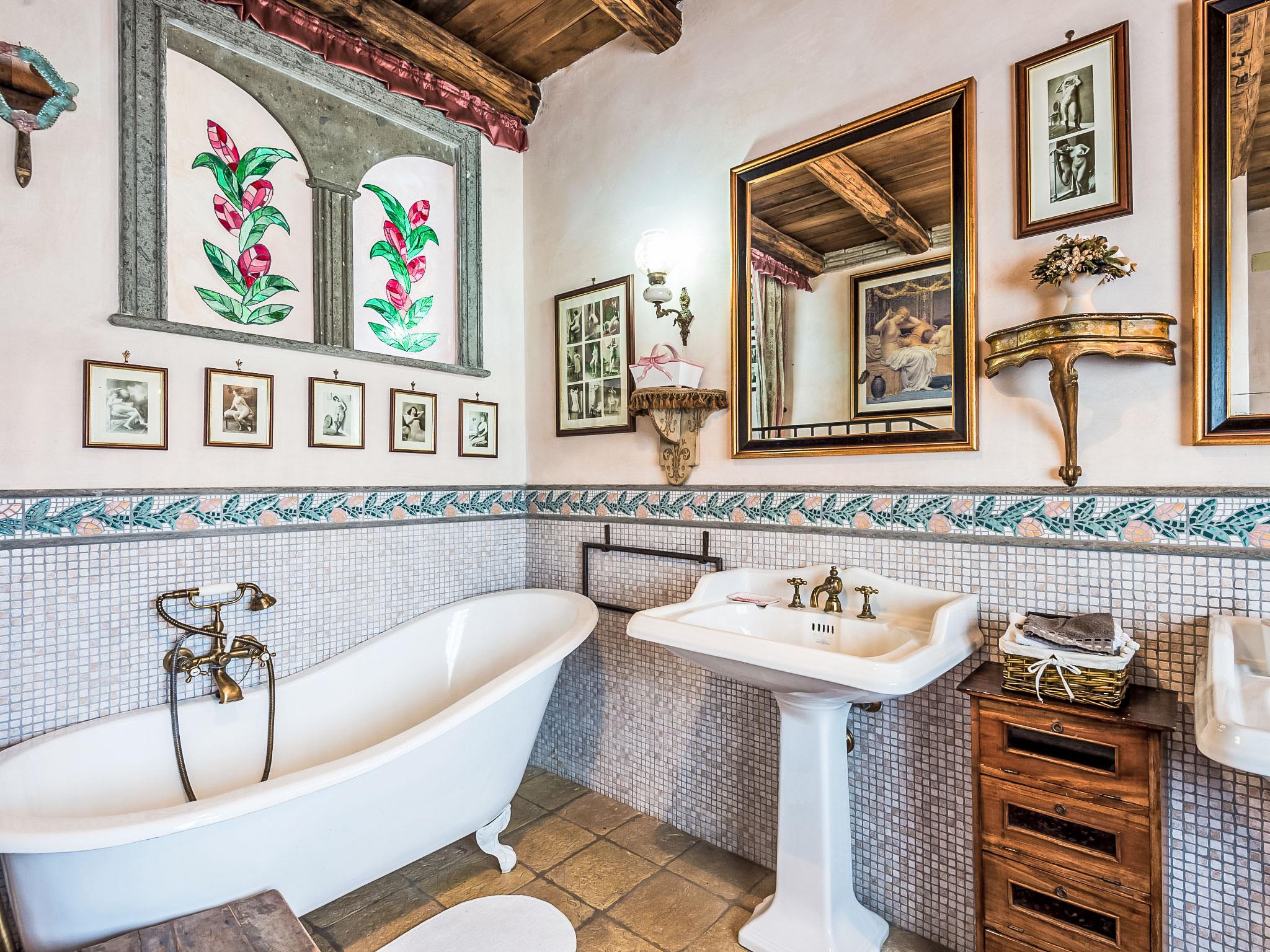 6-room villa 420 m2 on 3 levels. Very comfortable and tasteful furnishings: living room with open-hearth fireplace. Billiard room. Dining room. Large, open kitchen 30 m2 (5 hot plates, oven, dishwasher, toaster, microwave, freezer, electric coffee machine) with open-hearth fireplace, dining table and TV. Sep. WC. Upper floor: 1 double bedroom with shower/bidet/WC. Exit to the balcony. 1 large room with 1 double bed and bath/shower/bidet/WC. Exit to the balcony. 1 double bedroom. (open staircase) open gallery with sloping ceilings with 1 bed. Shower/bidet/WC. 2nd upper floor: 1 large room with panoramic window with 3 beds and air conditioning. Shower/WC. Heating (extra). Very beautiful panoramic view of the valley. Facilities: washing machine, iron, hair dryer. Internet (WiFi, free). IT058086C2MA4YS7VB
