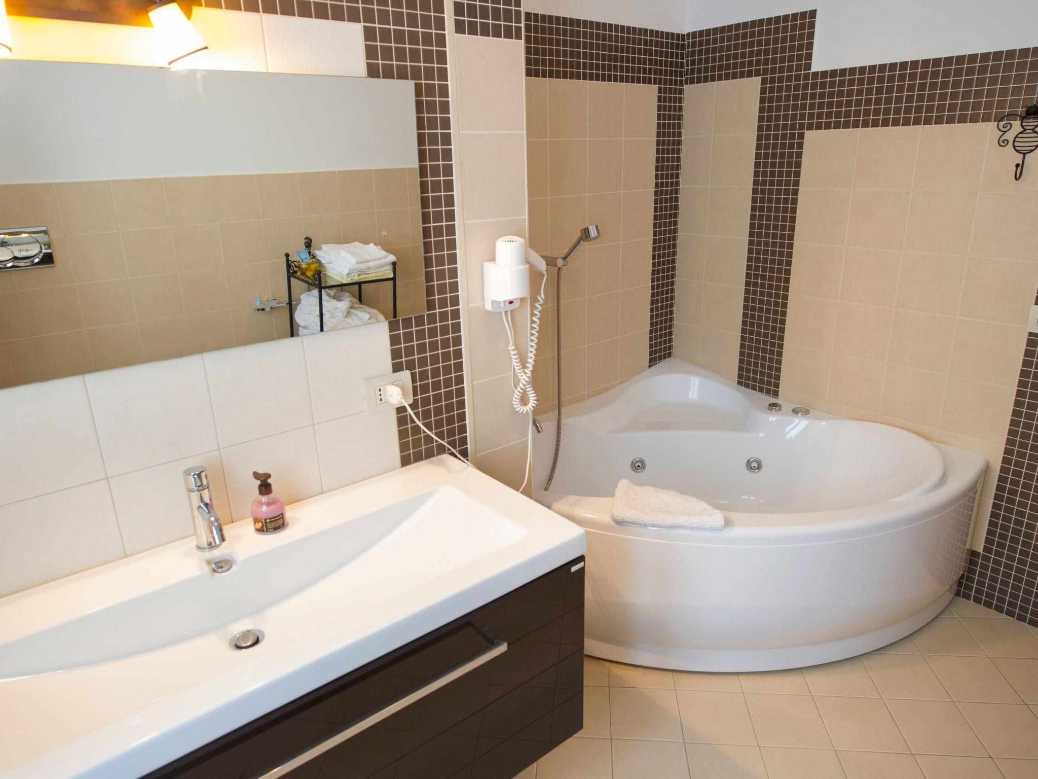 The room is equipped with a wrought iron double bed, fine furniture, TV, window with a view of the hills, this room has an adjoining bathroom for exclusive use, very large and cozy with a window, complete with sink, toilet, bidet, whirlpool tub, hair dryer, also provided with soaps shower gel etc. . In addition to bed linen and towels (including bathrobes) you will also have a courtesy kit. A small balcony is available