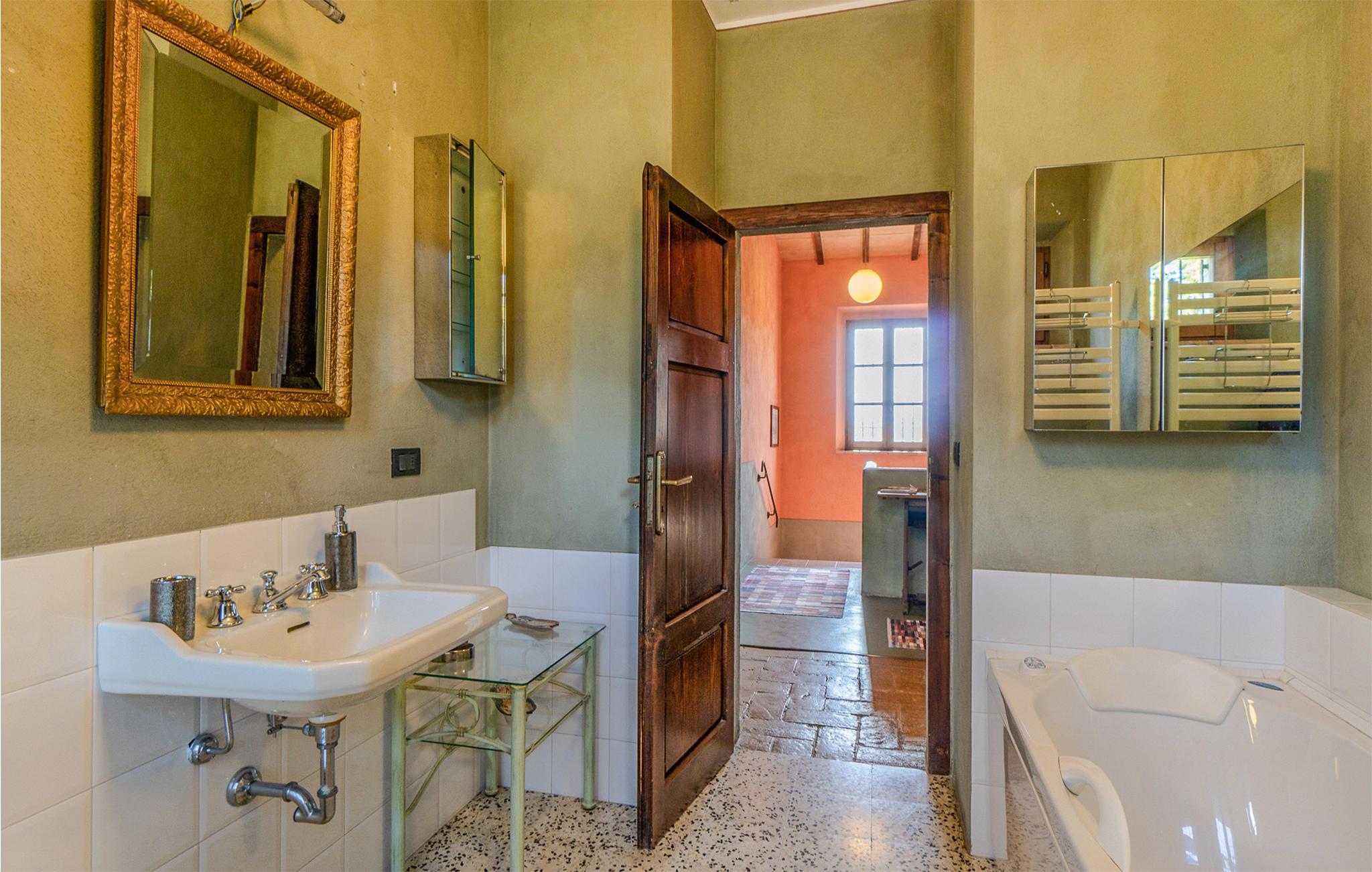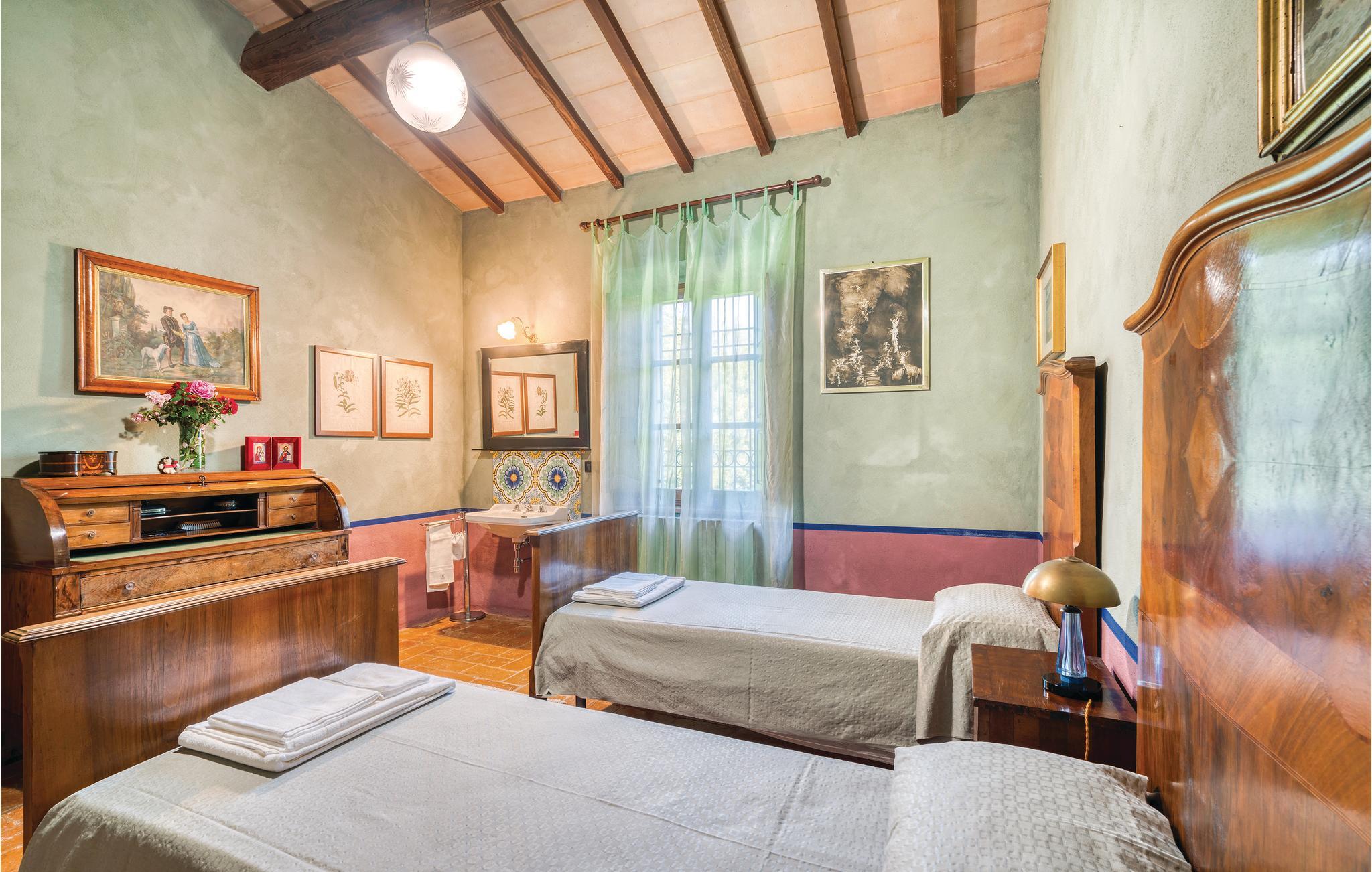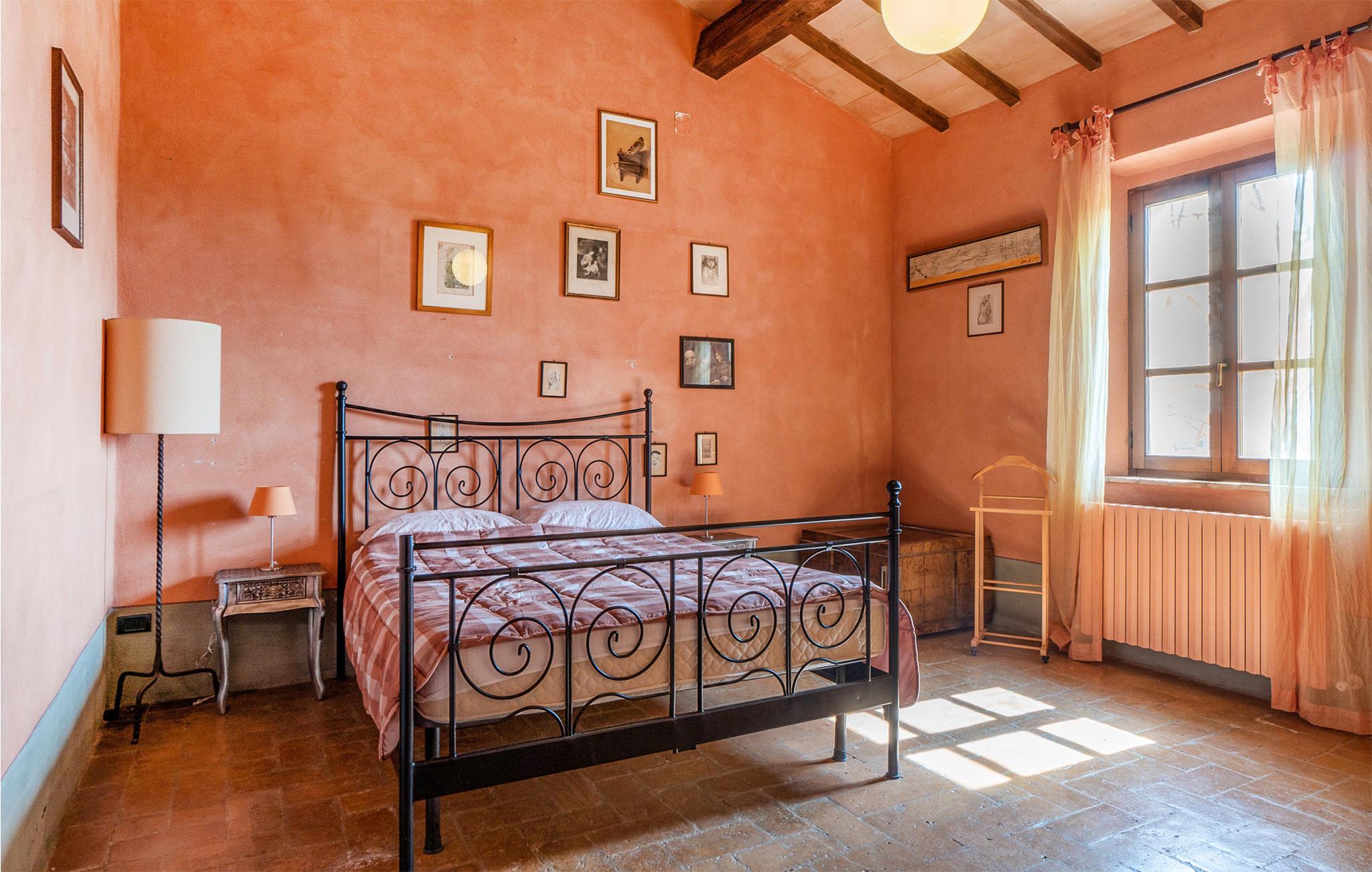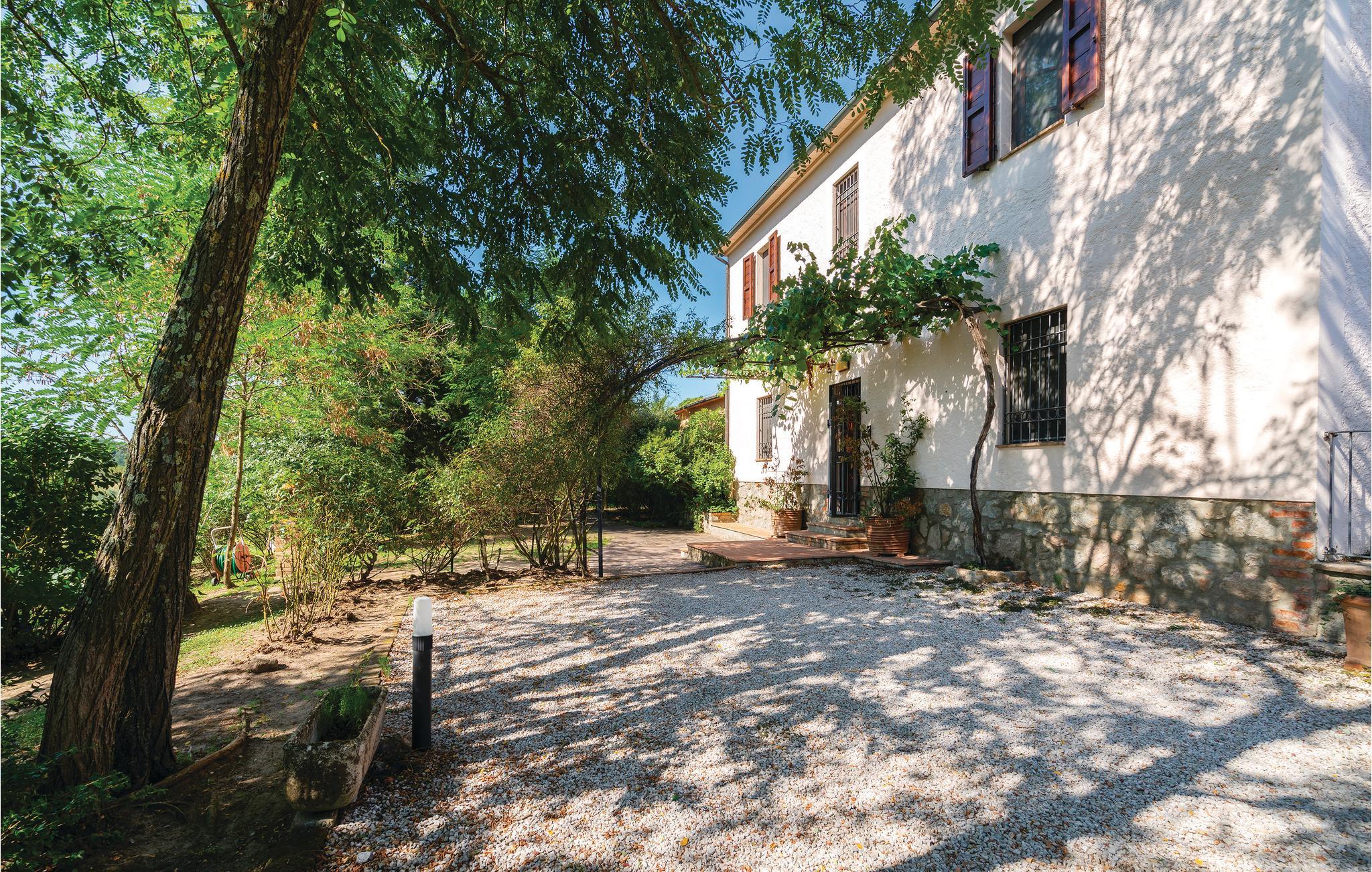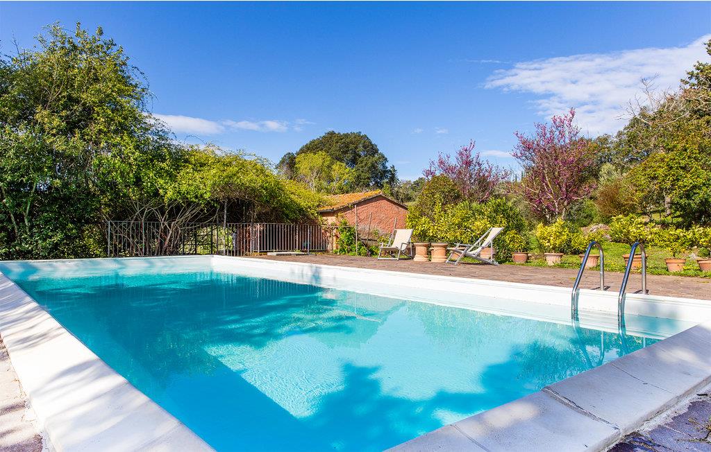 Dette smukke landhus i to etager, der ligger ca. 5 km fra Roccastrada, råder i stueetagen over en rummelig stue med pejs og billardbord, et stort spisekøkken, en lille stue med sovesofa og et brusebad. På første sal er der dobbeltværelse, et værelse med to senge og et badeværelse med jacuzzi. Huset er omgivet af en 5 ha stor park med eng og kork-eger. Parken prydes også af ca. 1.300 rosenbuske af de forskelligste arter, der især i maj, når de står i fuldt flor, forvandler parken til en spektakulær rosenhave. Husets gæster har en flot pool, store, møblerede udendørsområder, en grill og en træovn til rådighed. Viceværten bor i en fløj af huset, der ellers er helt uafhængig af resten, og som har egen indgang. Jeres feriebolig ligger i meget oprindelig natur, i rolige omgivelser og smukt bakkelandskab. Der er kun ca. 40 km til den toskanske kyst med sine lange sandstrande, og der er ca. 20 km til termalbadene af Petriolo. Tæt på ligger de karakteristiske, små byer Roccatederighi, Montemassi og Massa Marittima. Tilkørsel ad en grusvej (fire km)
