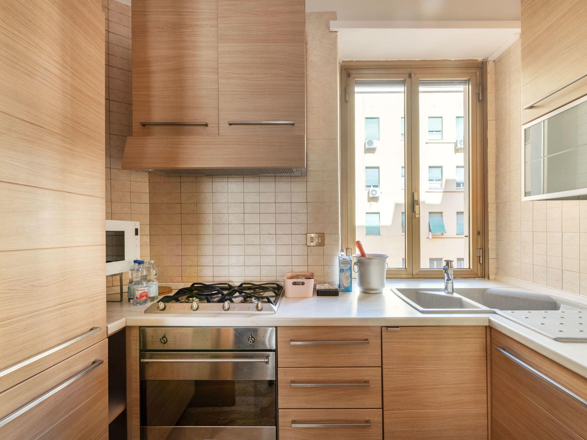 Inside, the flat stands out for its functional and elegant layout. It accommodates two bedrooms, each carefully furnished to ensure maximum comfort and complete with blackout systems that promise an impeccable rest after a day among the wonders of Rome. The bathroom has a spacious shower, offering practicality and comfort. For those who like to try their hand at cooking while on holiday, the flat has a well-equipped kitchen with modern appliances, including a capsule coffee machine, a dishwasher and an electric kettle, ideal for preparing delicious meals or enjoying a hot drink at any time.