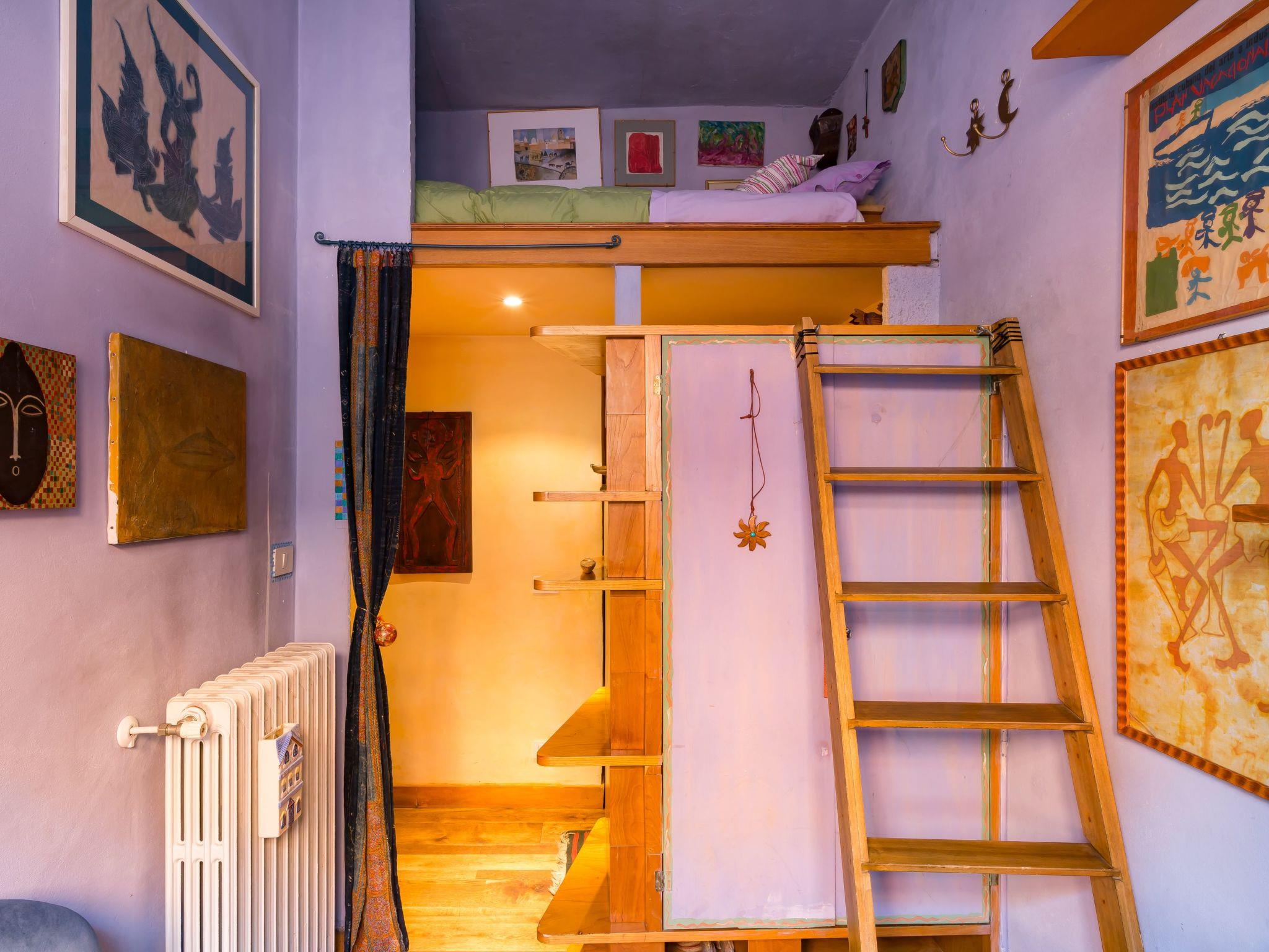 Our house is very bright, built with natural materials, embellished with art objects and antiques and with a warm oak parquet floor. The bathroom is equipped with a Moroccan-style bathtub, perfect for relaxing after a day exploring the sights of Rome. The kitchen is equipped with everything you need for cooking, including a practical dishwasher. The bedroom has a double bed, the living room has a double sofa bed and the two rooms are separated by large wooden sliding doors. The single bed is located in another room above the library, accessible by a staircase. The total area is 75 square metres, just a few steps from the Colosseum. Washing machine and Wi-Fi internet access are included.