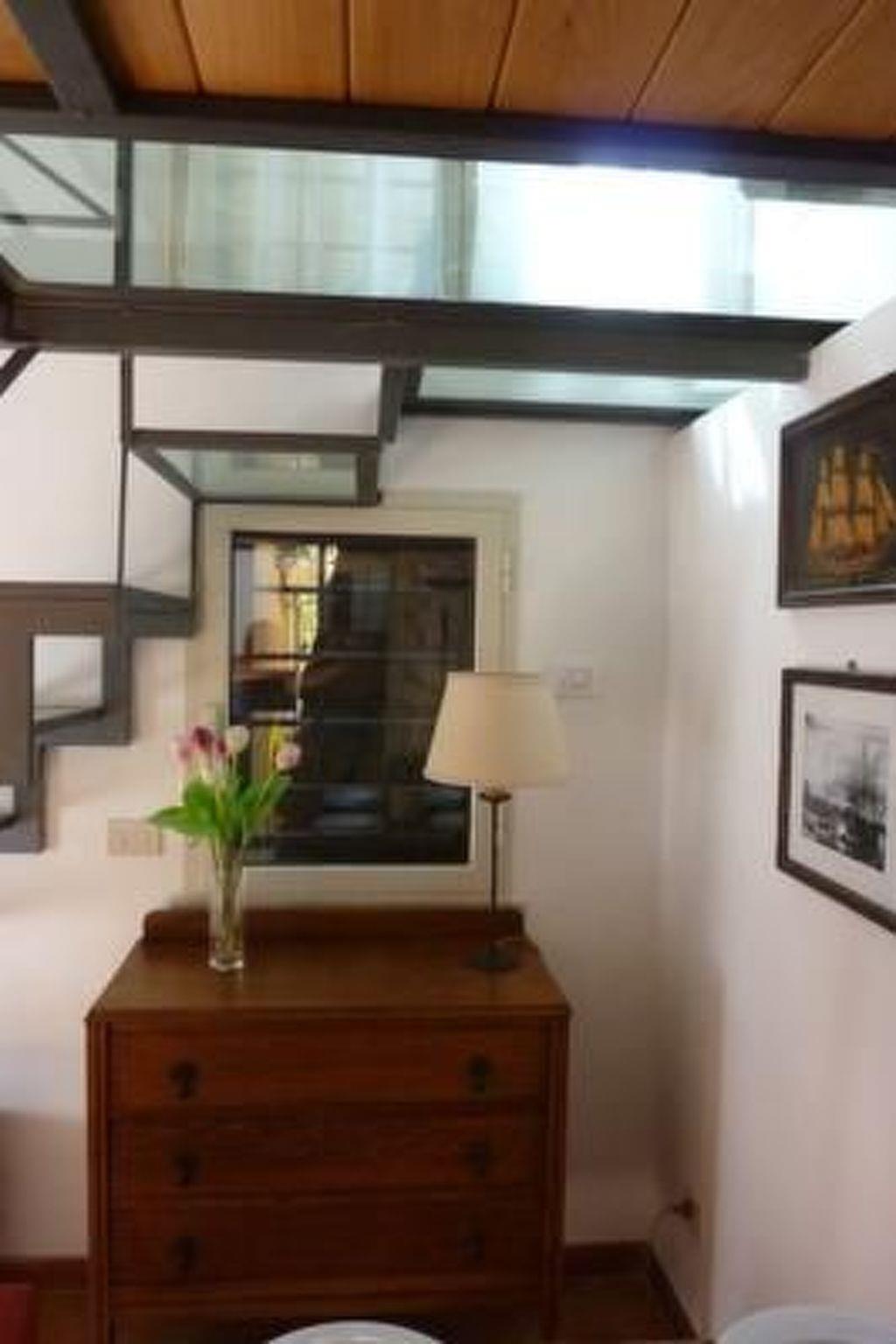 Quaint and bright cottage about 35 sm, 5 minutes walking from Santa Maria in Trastevere. Double entrance and a pleasant independent court. Recently restored. Downstairs you have a nice living room (english antique furniture, double sofa, satellite TV) a bright kitchen (with gas cookers, electric oven, refrigerator and washing machine) and a bathroom with shower cabin. Upstairs you have the bed and the closet. The cottage can house up to 4 people. The cottage is located 5 minutes walking from Santa Maria in Trastevere on a hill which is linked to the street by a flight of about 40 steps (height 15 cm each) I have to admit thet when I first saw this cottage I fell in love with it. I was fascinated by it and by the surroundings. I thought "I want to live in a place like this. It is a place where you can enjoy after a day visiting Rome and share for a pleasant stay with friends.The cottage is five minutes walking from the Basilica of Santa Maria in Trastevere which is the heart of the historical village of Trastevere. Strolling through the narrow streets of Trastevere street, you will feel immersed in the ancient setting of Rome, with its charm, its taverns where you can taste the specialties of the delicious Roman cuisine.Short descriptionOther : Non-smoking houseShort description 1Number of kitchens : 1Other rooms : quaint little cottageLiving room 1Other living room features : English dining table with extension, double sofa bed, TV, wi-fi, libraryKitchen 1Other kitchen equipment : Sandwich toaster, Kitchen Tools, Eating Implements, Washing MachineSurroundingNearby sports facilities : Sport center, TennisRental Facilities : Bicycle rental service, car rentalGarden and outdoorGarden facilities : Garden furniture provided