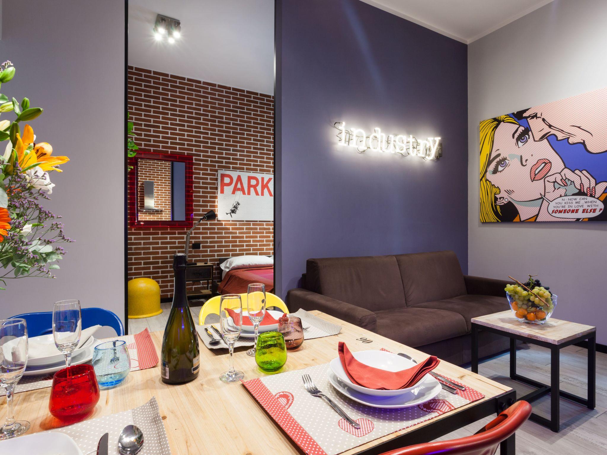 The interiors have been realised with attention to detail: each flat boasts spacious bedrooms, comfortable living rooms with large sofa beds, fully equipped kitchens and bright and spacious bathrooms. Guests' comfort is ensured by beds with new-generation mattresses, spacious wardrobes, large mirrors, desks, as well as'accesso a SKY TV e Wi-Fi, rendendo ogni soggiorno il più confortevole e accogliente possibile.