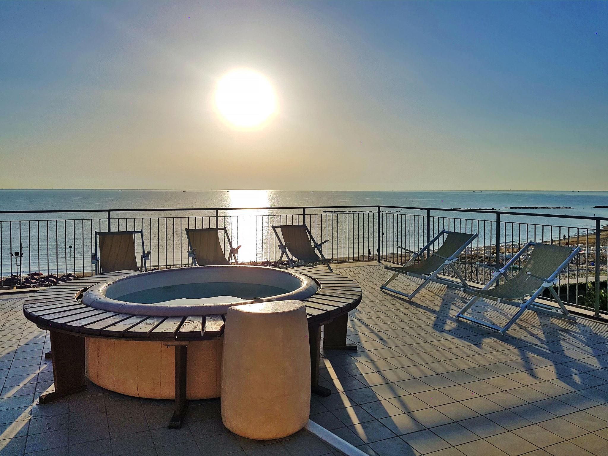 Child friendly residence "Casa del Mar", 4 storeys. 60 apartments in the residence. 1 km from the centre of Roseto degli Abruzzi, 55 km from the centre of Pescara, 9 km from the centre of Pineto, in a sunny position in the residential district, at the seaside, direct access to the beach. For shared use: swimming pool (15 x 6 m, seasonal availability: 30.May. - 13.Sep.) with internal staircase. Unconventional pool shape. Outdoor shower, terrace, garden furniture. In the complex: reception, restaurant, bar, internet access, lift, roof terrace, bicycle rental. Half board possible (extra). Parking (limited number of spaces, extra), public parking on the road. Supermarket 800 m, bus stop 2.2 km, railway station "Roseto degli Abruzzi" 1.5 km. Nearby attractions: Pineto 9 km. Please note: entertainment in the season. Suitable for families. Railway line 50 m from the property. During the off season only limited offers available in the holiday resort.