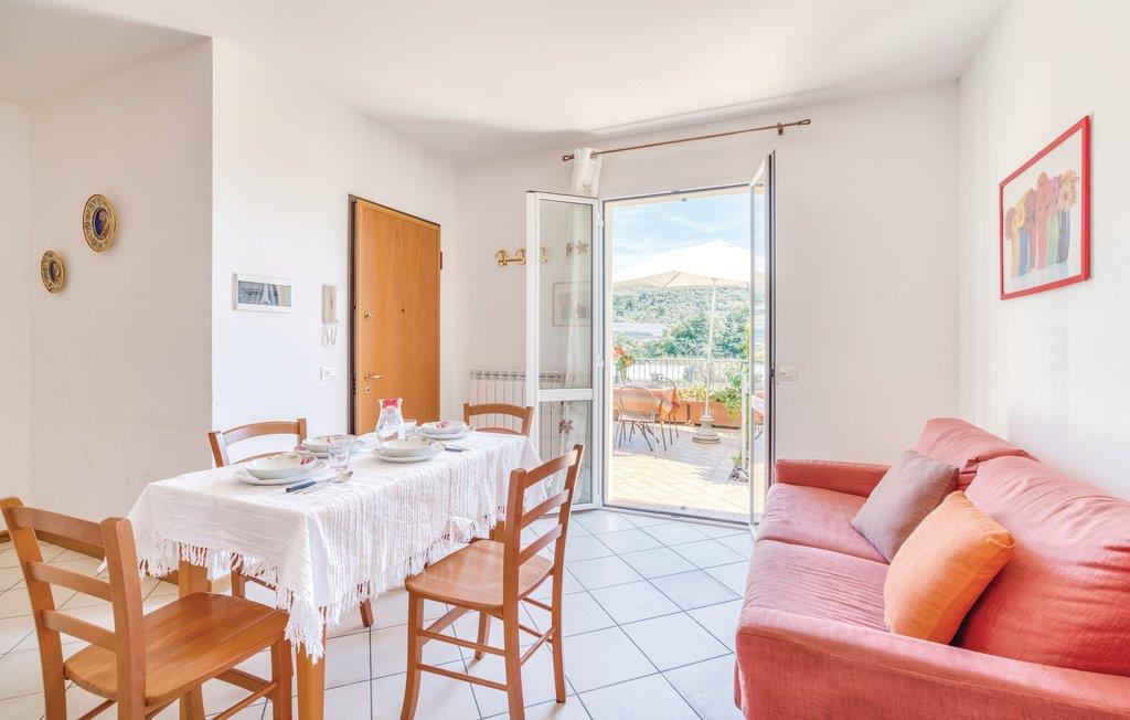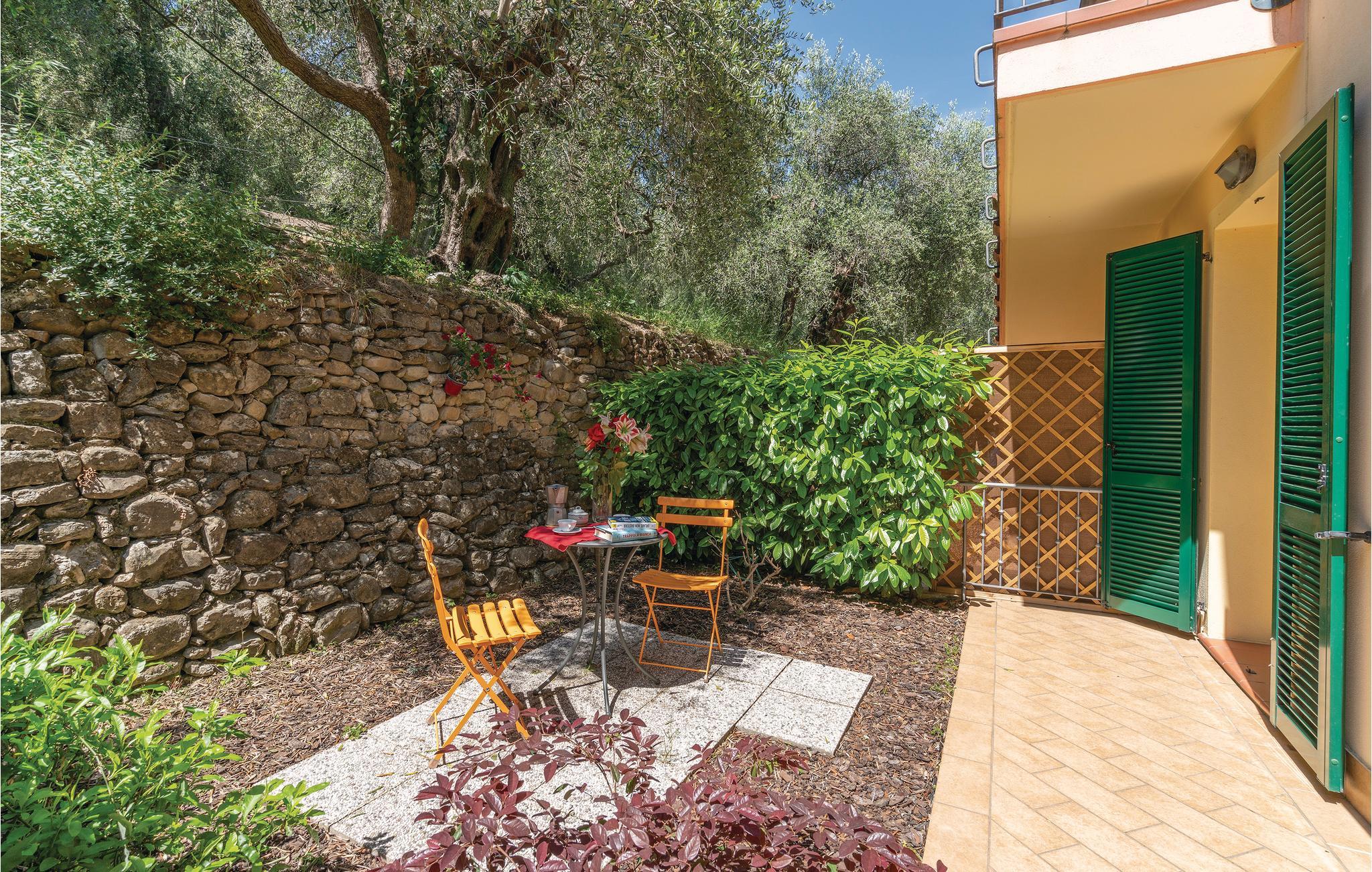 Moderne lejlighed i et rækkehus omgivet af oliventræer, blot få minutter fra stranden og havet. Fra parkeringspladsen kommer I til husets grund via en udendørs trappe. San Bartolomeo al Mare, med en af Liguriens skønneste strandpromenader, er en dejlig badeby ved den Italienske riviera, i Diana bugten. Dejlige strande og små bugter, idylliske badestrande til en rolig ferie. Desuden er der rige muligheder for at dyrke sport og tage på spændende udflugter.