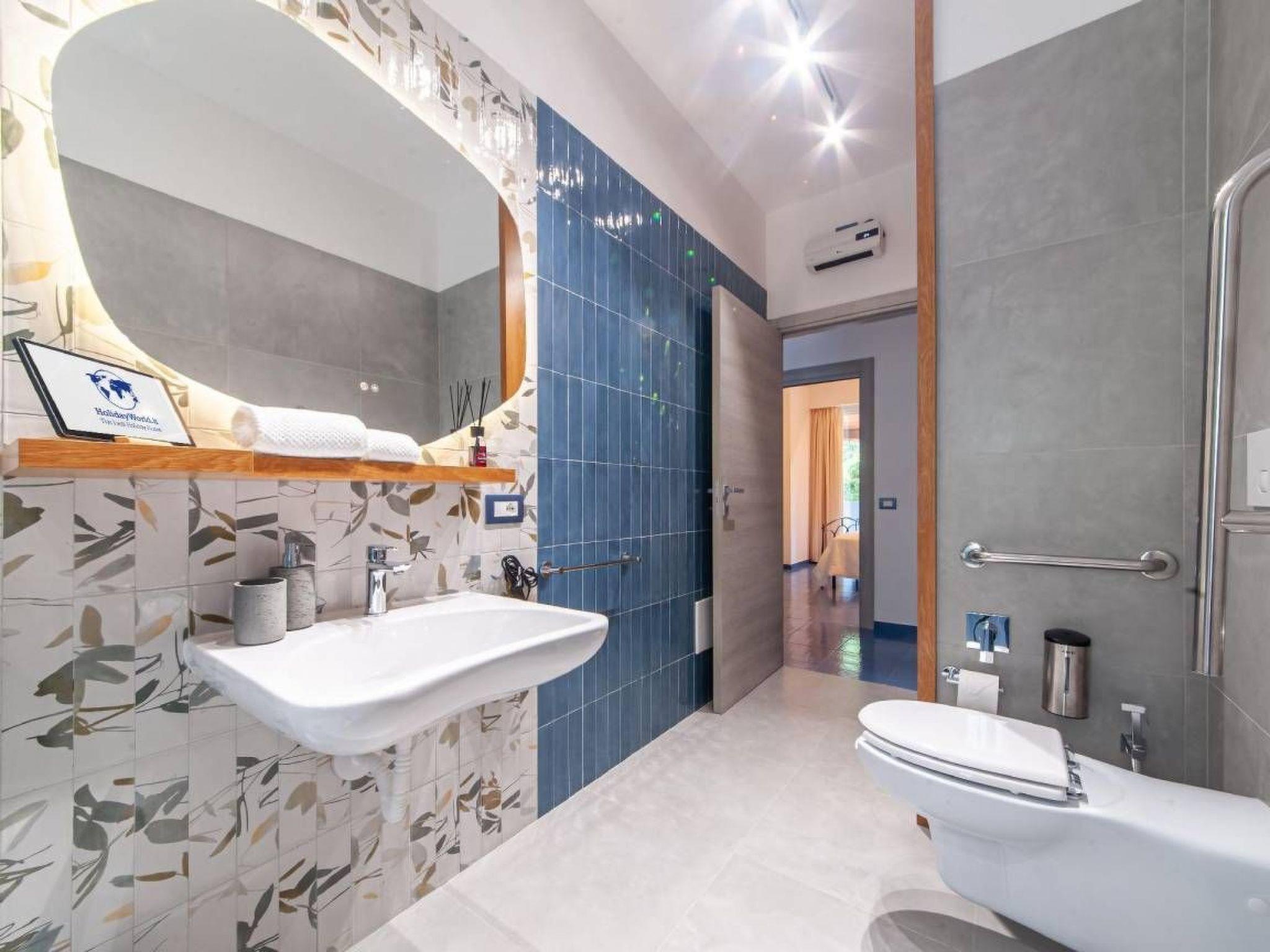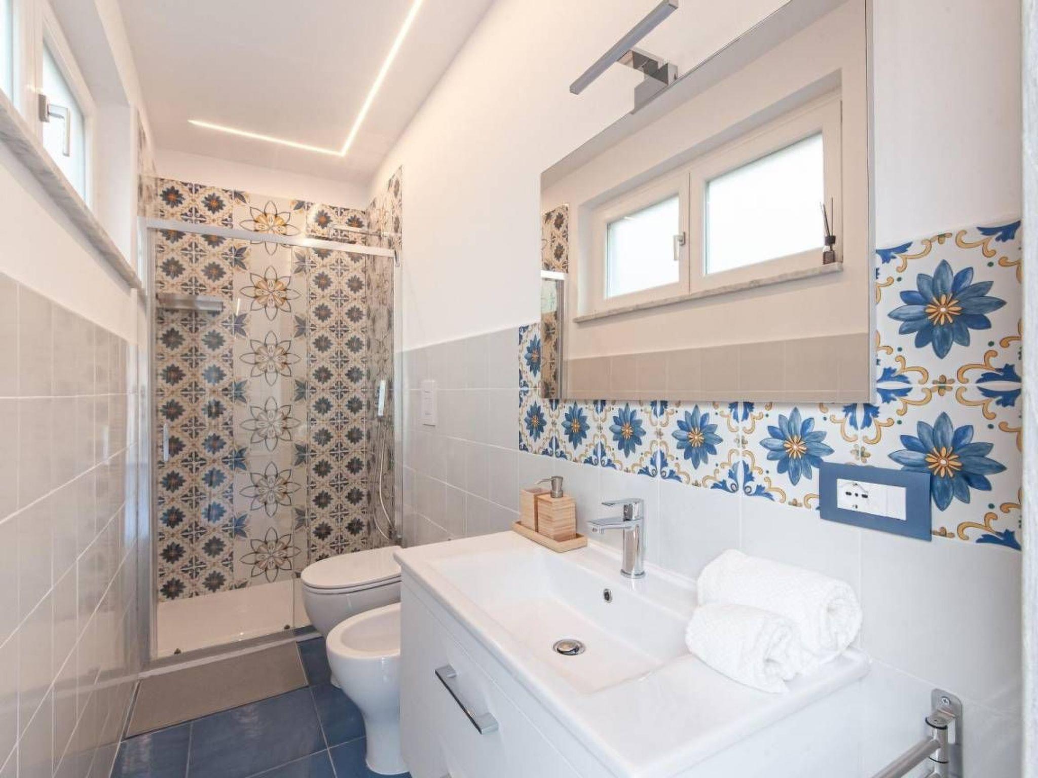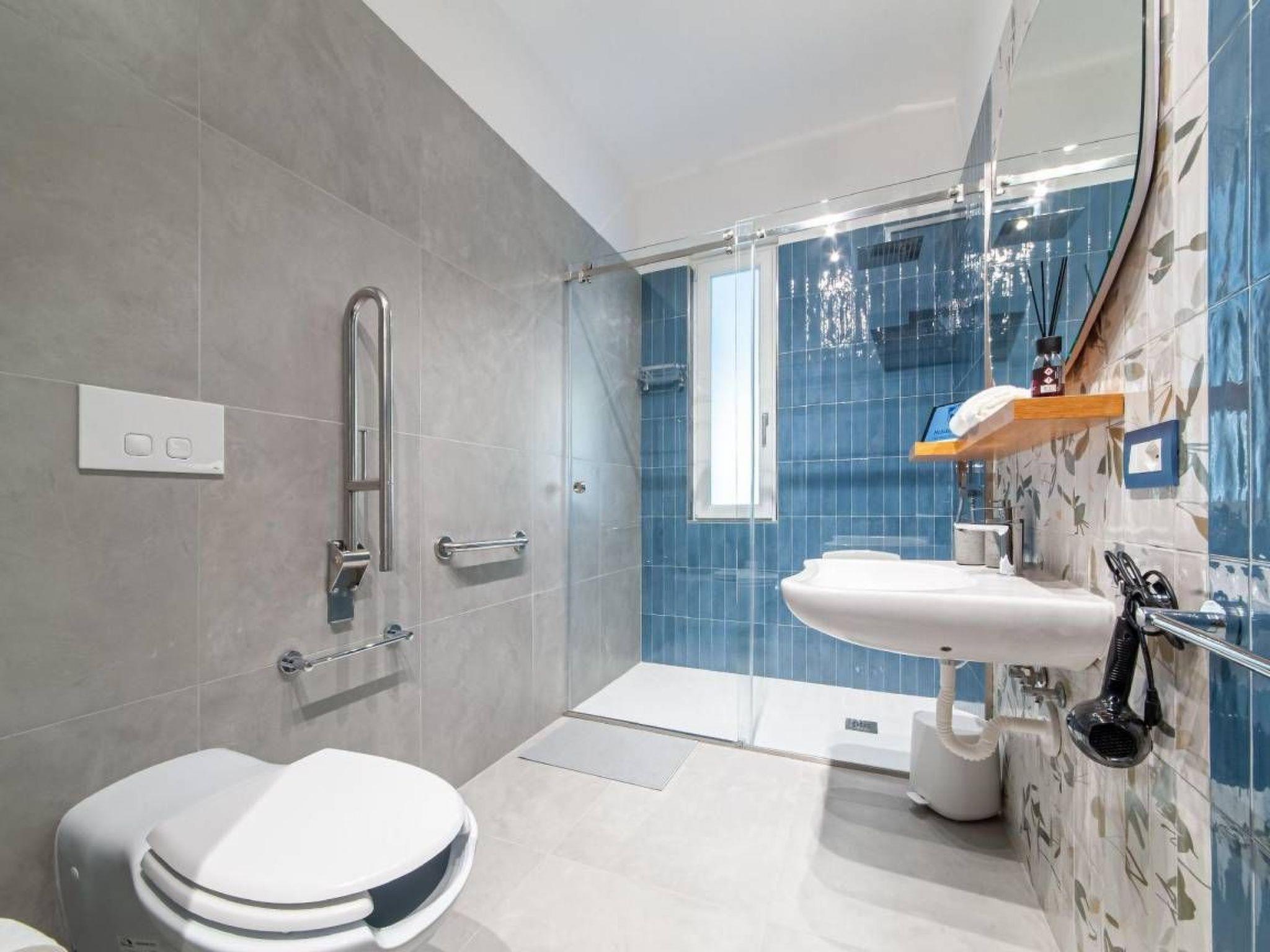 Casa Mary Rose is designed to comfortably accommodate up to 7 people, making it the ideal solution for large families or groups of friends looking for a spacious and comfortable stay. The accommodation consists of three cosy bedrooms, each with a comfortable double bed, guaranteeing privacy and quality rest. The spacious and bright living room is enhanced by a two-seater sofa bed, offering additional flexibility for guests. The living area has been carefully designed down to the smallest detail and houses a fully equipped open kitchen, designed for those who love to try their hand at cooking and share convivial moments. Here you will find everything you need to prepare delicious breakfasts, lunches and dinners, just like at home. The two modern and functional bathrooms are equipped with every accessory and guarantee maximum practicality, even for people with disabilities. Each room has large, well-distributed spaces that invite you to relax. Smart TVs in the living room and in each bedroom provide unlimited entertainment, while spacious drawers and wardrobes ensure order and practicality for all your personal belongings. Attention to detail and fine furnishings make the interior of Casa Mary Rose an example of elegance and functionality. It is the ideal place for those seeking an elegant and comfortable retreat, where they can disconnect from their routine and regenerate. Casa Mary Rose is equipped with every imaginable comfort to ensure a carefree and relaxing stay. The house offers a range of services and facilities that make it unique. The kitchenette is for lovers of good food, complete with frying pans, pots, chopping boards, fridge and freezer, and a convenient dishwasher for easy cleaning. With families in mind, Casa Mary Rose provides a baby cot, making your stay pleasant and safe even for the smallest of children. Safety is a priority: the house is equipped with a smoke detector and fire extinguisher. One of the strong points of Casa Mary Rose are its two furnished courtyards, designed to offer moments of pure relaxation and conviviality in the open air. For outdoor evenings, a barbecue is at your disposal for unforgettable grills. The high-speed Wi-Fi connection will allow you to stay connected at all times. Casa Mary Rose stands out for its exceptional attention to accessibility, making it an inclusive and comfortable choice for all guests, including people with disabilities. It has convenient indoor parking, eliminating any worries about finding a parking space. The removal of architectural barriers was a focal point of the renovation: the wide entrance door and the absence of steps inside the house ensure easy access to every room. The bathrooms, modern and functional, have been designed with accessibility in mind, with an accessible shower equipped with a plastic seat and support handle.