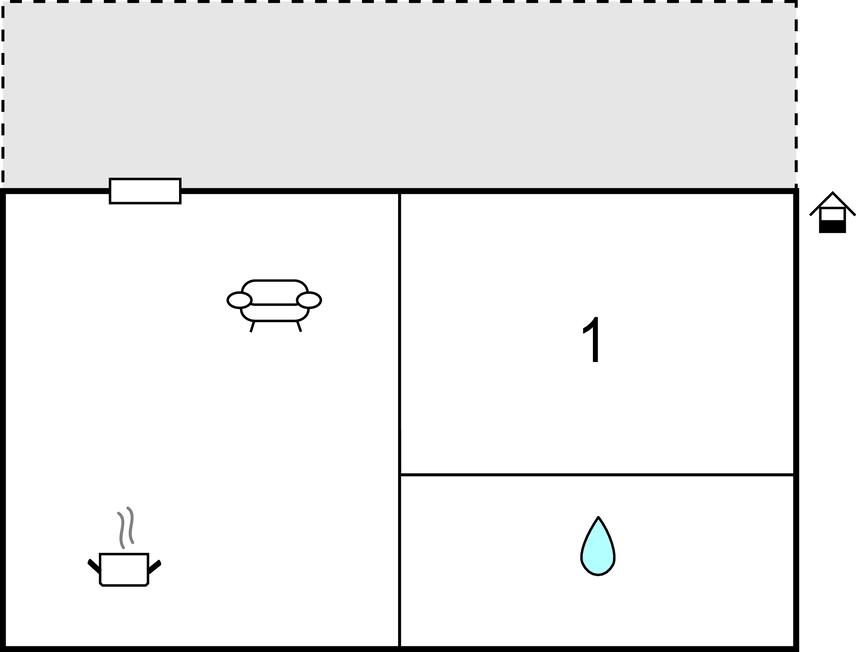 Opholdsstue/køkken - 2 Sovepladser. (Sofa, madras eller lignende).