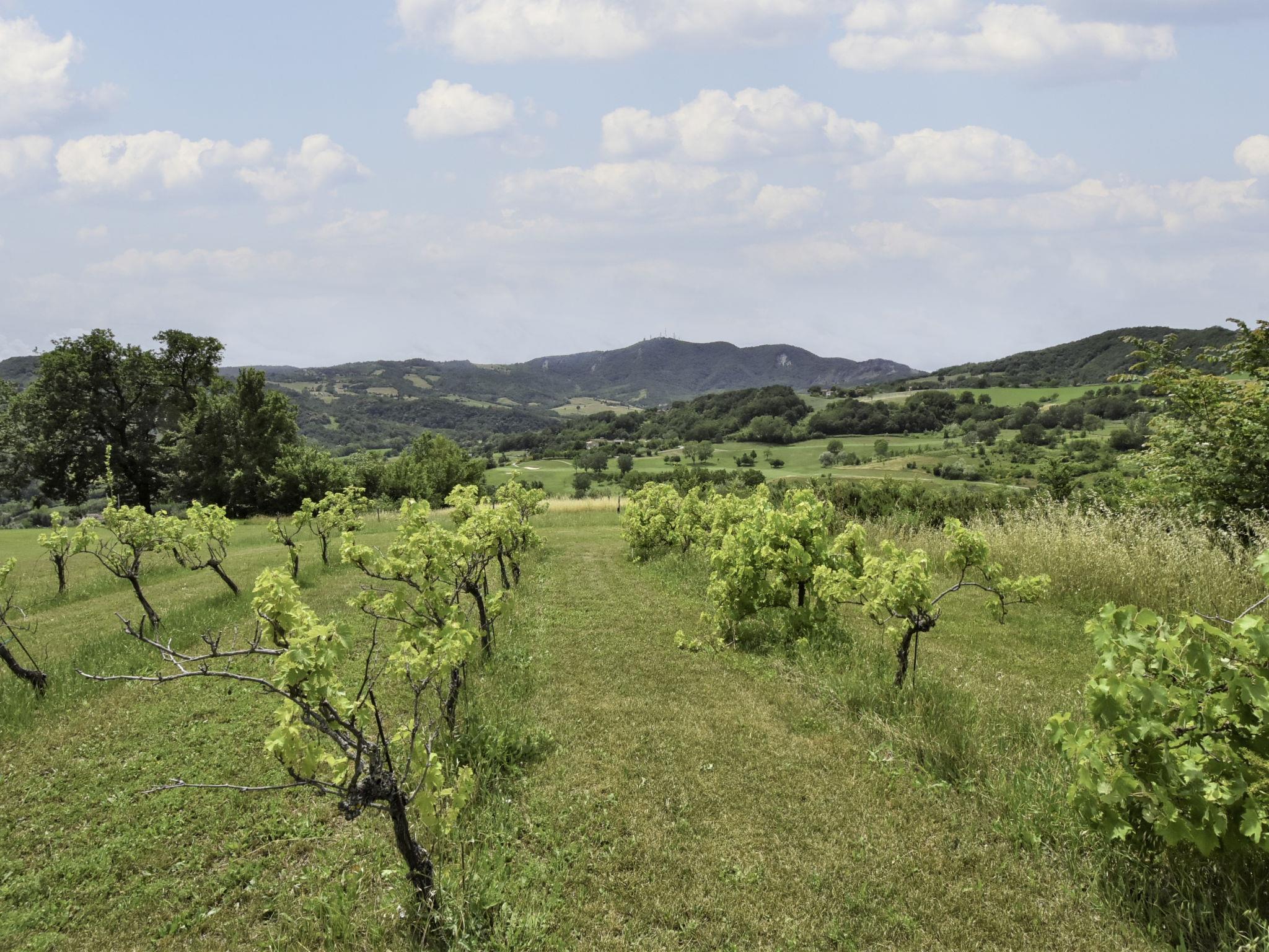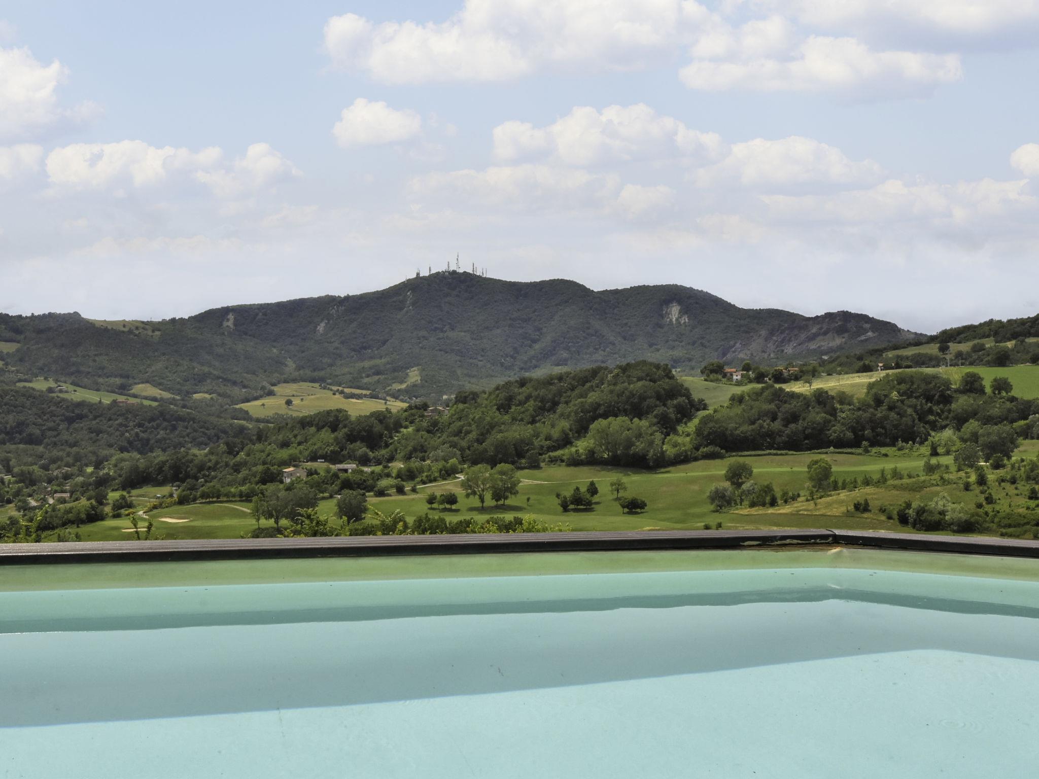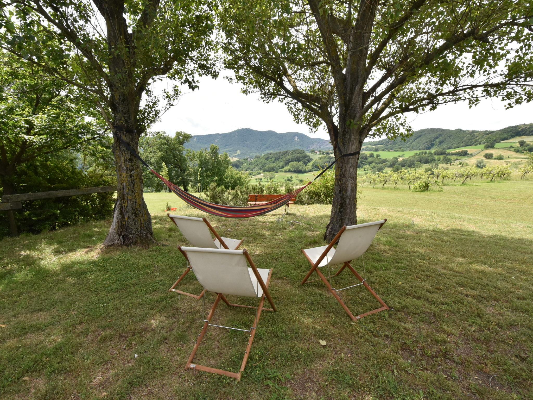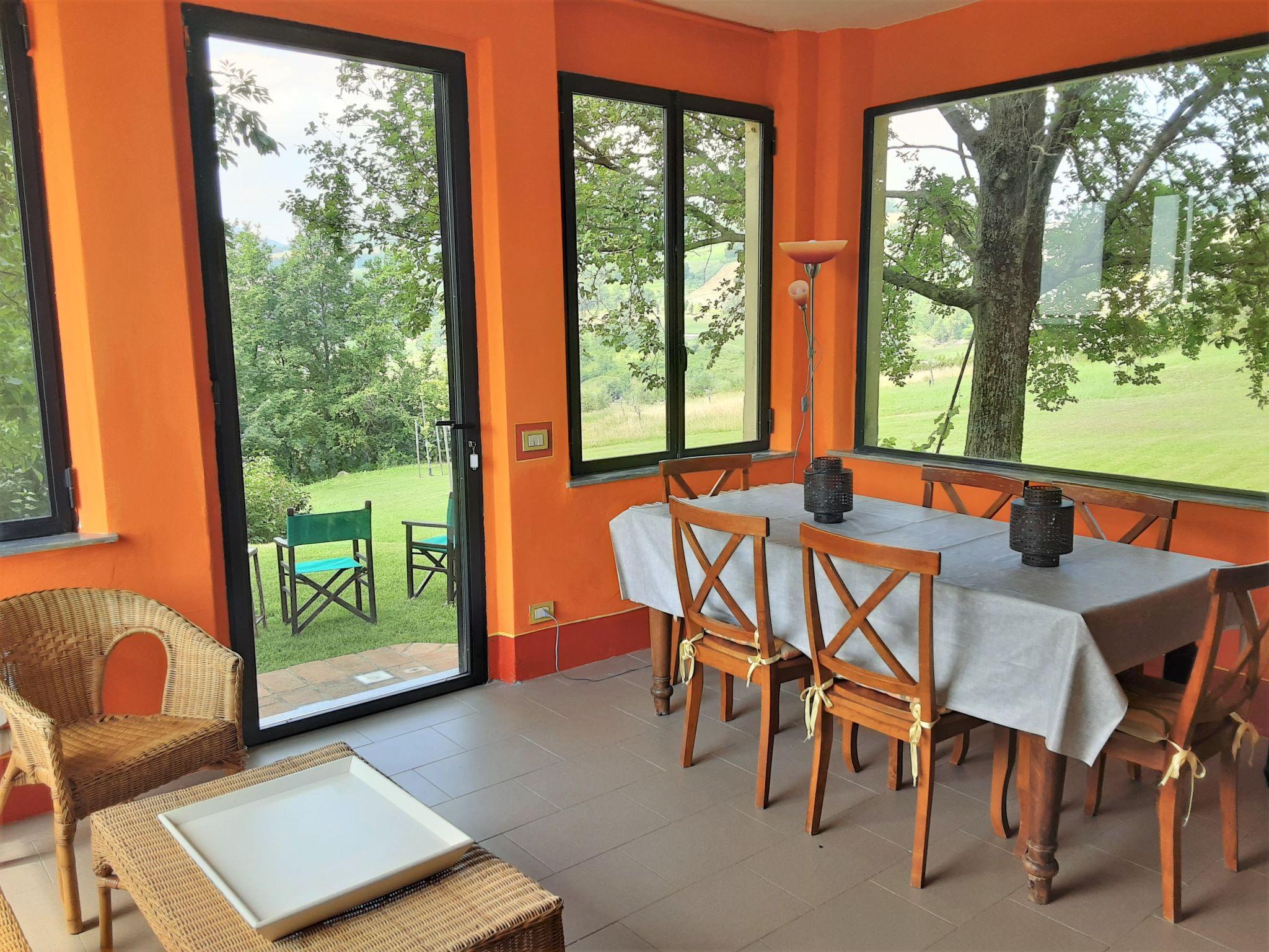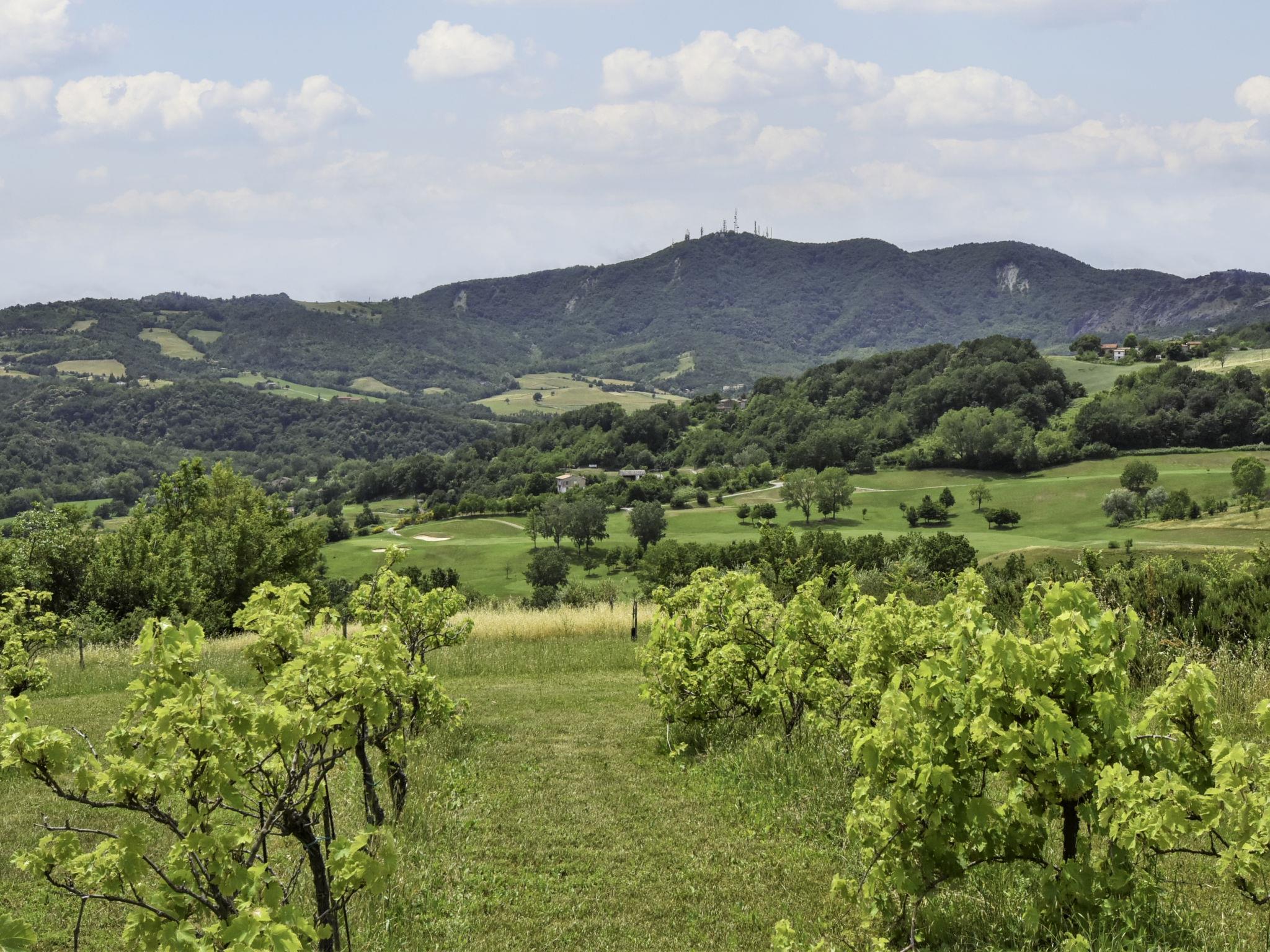 Large, rustic farmhouse "Busani", surrounded by meadows and fields. 40 km from the centre of Parma, 16 km from the centre of Fidenza, outside the resort, 7 km from the centre of Salsomaggiore, in a secluded, quiet, sunny position on top of a hill, in a cul-de-sac. For shared use: property 25 ha, plants and trees, swimming pool (above ground) (8 x 4 m, depth 140 cm, seasonal availability: 01.Jun. - 10.Sep.). Outdoor shower, pergola, garden furniture. Private: property 3'000 m2. Garden furniture, barbecue. In the house: lounge, WiFi, storage room for bicycles, heating to be paid on the spot. 1.8 km long bumpy, steep motor access (via unmade road). Parking on the premises. Bus stop "Salsomaggiore Terme" 7 km, sandy beach "Forte dei Marmi" 145 km. Golf course (18 hole) 200 m. Nearby attractions: Lanfredini Parmigiano 3 km, Fidenza Outlet Village 22 km, Dallara Academy 24 km, Busseto (Casa Natale di Verdi) 30 km, Reggia di Colorno 52 km, Maranello (Museo Ferrari) 108 km. Hiking paths: Contignaco 50 m. Please note: car recommended. The owner lives in the same residence. The owner has a dog. In the complex: area of birdwatching. Organic farm, products can be bought on site.