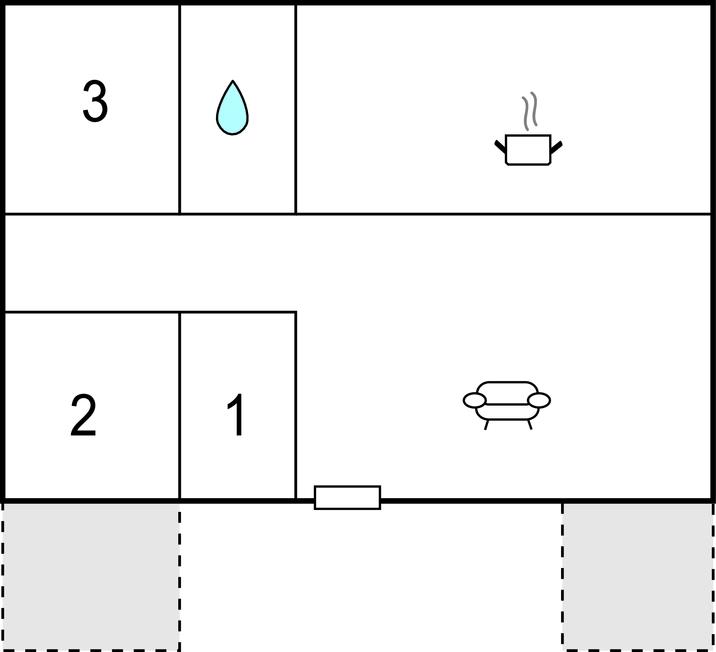 Soveværelse (nr. 3) - 1 Soveplads. (Enkeltseng(e)). 2 Sovepladser. (Dobbeltseng(e)).