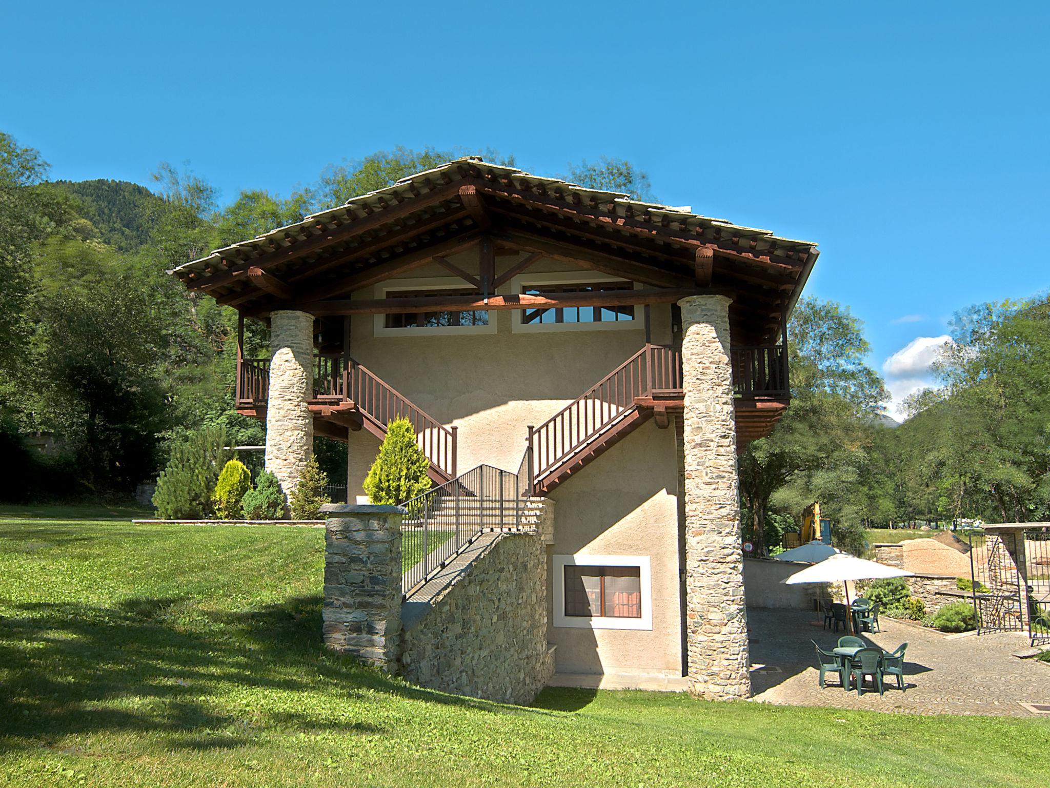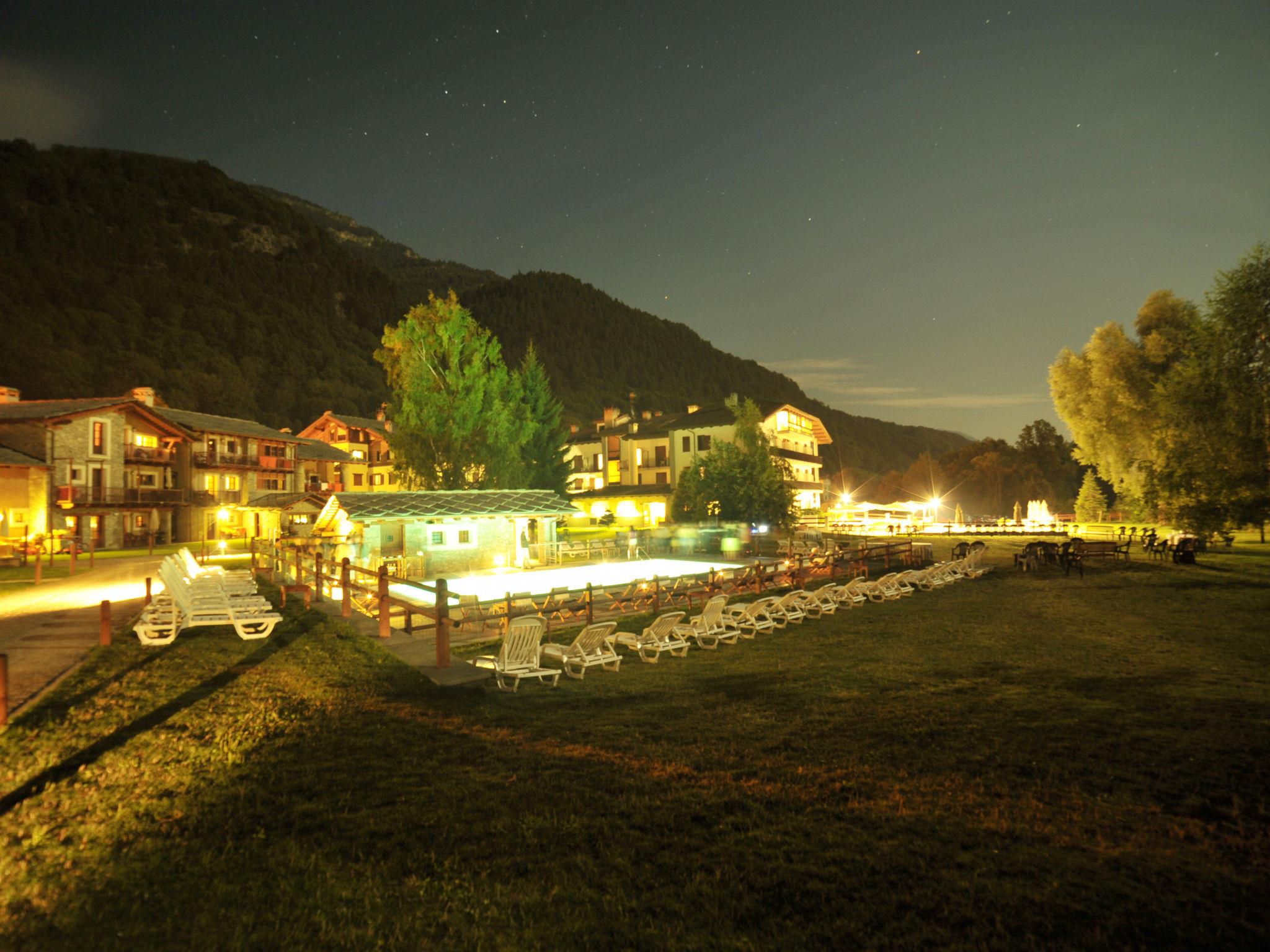 Residence "Torinetto", 1'000 m a.s.l., 4 storeys. 18 apartments in the residence. In the district of Calchesio 1 km from the centre of Sampeyre, on the outskirts, 12 km from the centre of Casteldelfino, 35 km from the centre of Saluzzo, 50 m from the river. For shared use: park 5'000 m2, large, beautiful, well-kept garden (not fenced) with plants and trees, swimming pool fenced (12 x 5 m, depth 100 - 170 cm, seasonal availability: 01.Jun. - 30.Sep., extra). Shower/WC in the pool area, outdoor shower, boccia, terrace, garden furniture, barbecue, children's playground. In the complex: reception, restaurant, bar, lounge, WiFi, fitness room, storage room for bicycles, washing machine (for shared use, extra), heating available only from 15.Oct. - 15.Apr.. Breakfast and half board possible (extra). Parking. Supermarket 1.5 km, bus stop 2 km, railway station "Costigliole di Saluzzo" 35 km. The facilities for shared use are in the main building with another 40 hotel rooms. The pool is in approx. 50 m distance to «La Borgata» and approx. 150m from «Casa del Ponte». Wi-fi only at the reception.