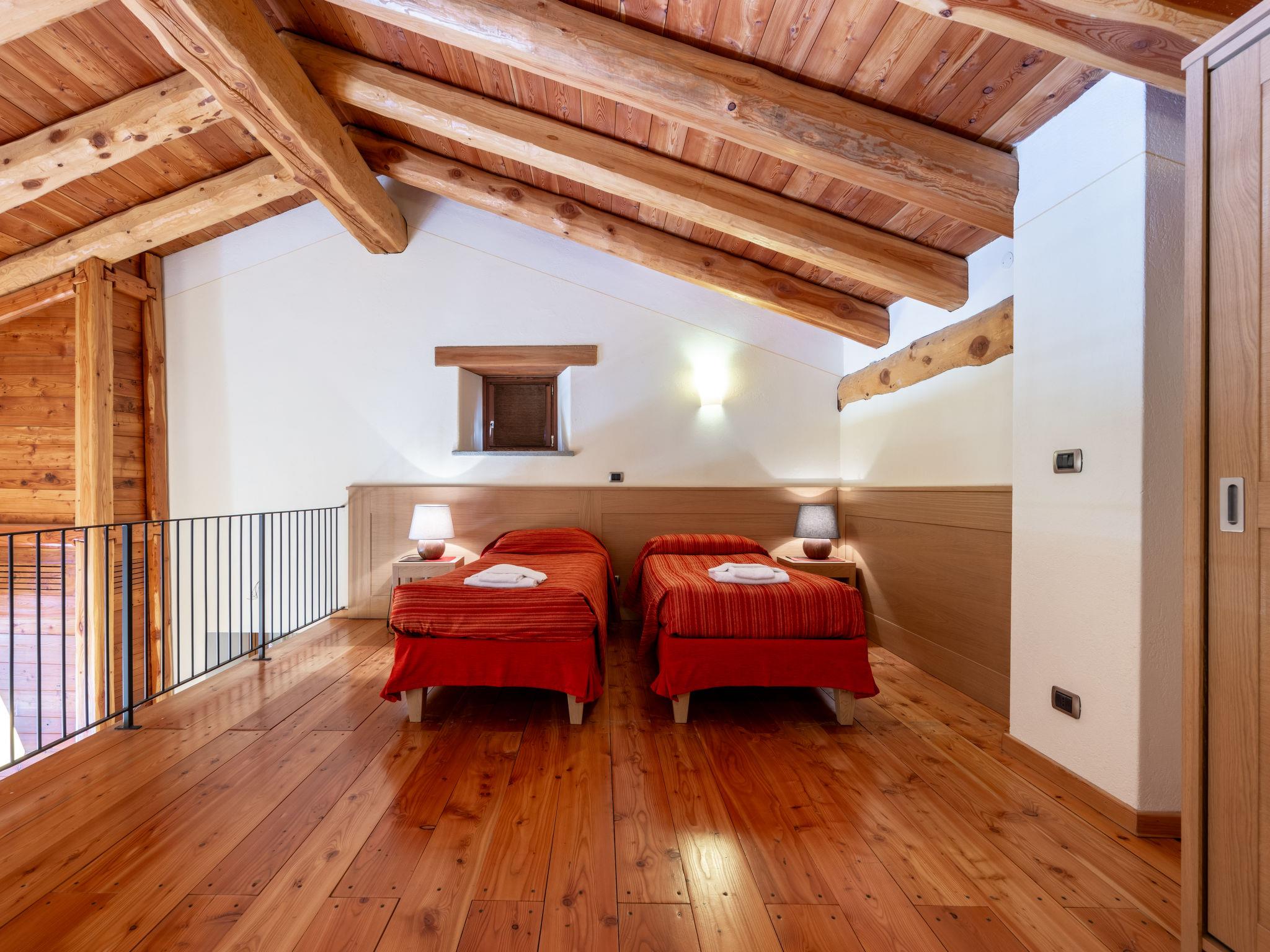 "La Borgata", 2-room apartment 63 m2 on 2 levels on 2nd floor. Tasteful and cosy furnishings: living/dining room with open-hearth fireplace, dining table and TV. Exit to the terrace. 1 room with 1 double bed. Open mezzanine with 2 beds. Small, open kitchen (4 gas rings, microwave). Shower/bidet/WC. Gas heating. Parquet floors. Terrace. Terrace furniture. Panoramic view. Facilities: children's high chair, baby cot. Please note: private entrance. Instead of an enclosed bedroom, some sleeping areas are located in an open-plan area (gallery, alcove, etc.). IT004205B4T8MGIVQM