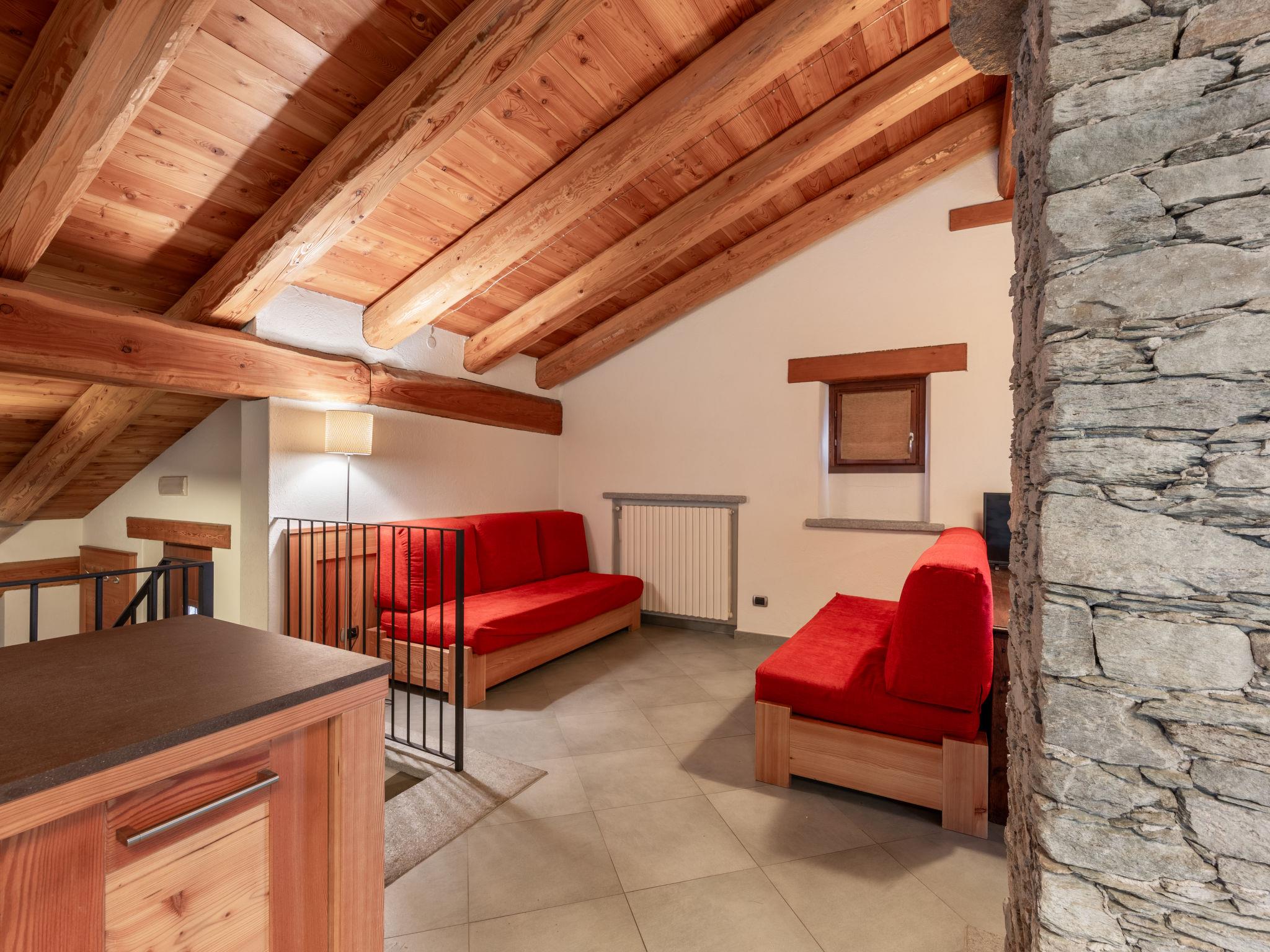 "Casot Pra La Funt", 4-room chalet 110 m2 on 2 levels, on the upper ground floor. Tasteful and wooden furniture furnishings: 1 room with 1 bed and 1 double bed. 2 rooms, each room with 1 double bed. Shower/WC. Upper floor: open living/sleeping room with 2 sofabeds, open-hearth fireplace, dining table and satellite TV. Exit to the garden. Small, open kitchen (4 gas rings, microwave). Shower/WC. Gas heating (extra). Wooden floors. Patio. Terrace furniture, barbecue (portable). Panoramic view of the mountains and the valley. Facilities: children's high chair, baby cot. IT004205B4MVQGWBZX