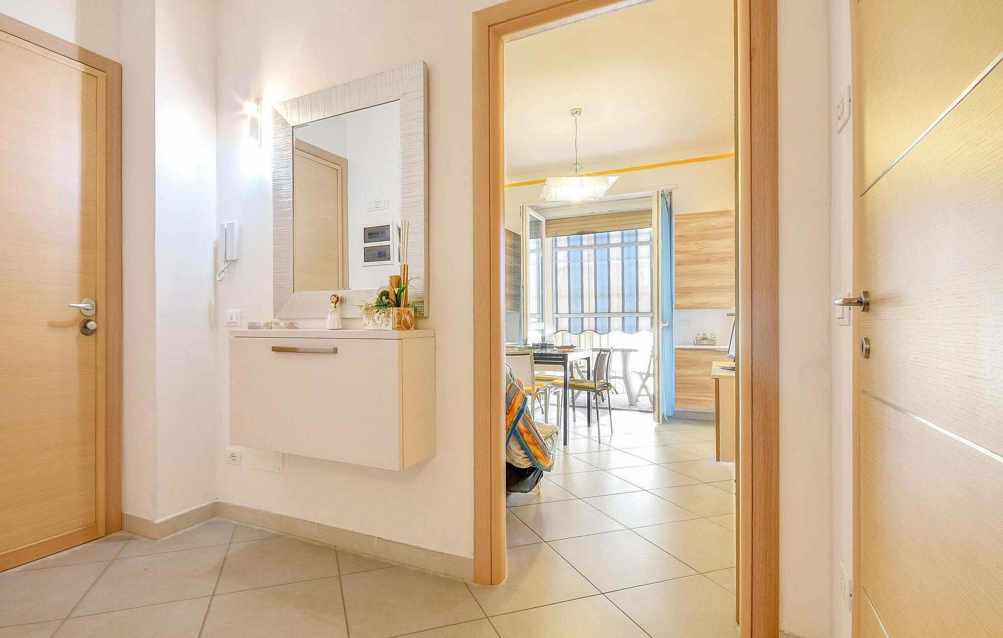 Velkommen til denne lyse og velholdte ferielejlighed, som lægger op til en dejlig ferie ved havet, kun få skridt fra den lange sandstrand. Fremtryl lækre retter i det moderne køkken, og lad den behagelige brise strømme gennem rummene, mens I spiser ved spisebordet. Mellem strandbesøg kan I forkæle jer selv med afslappende siestaer på den behagelige sofa og afslutte dagen med en god bog eller et brætspil.