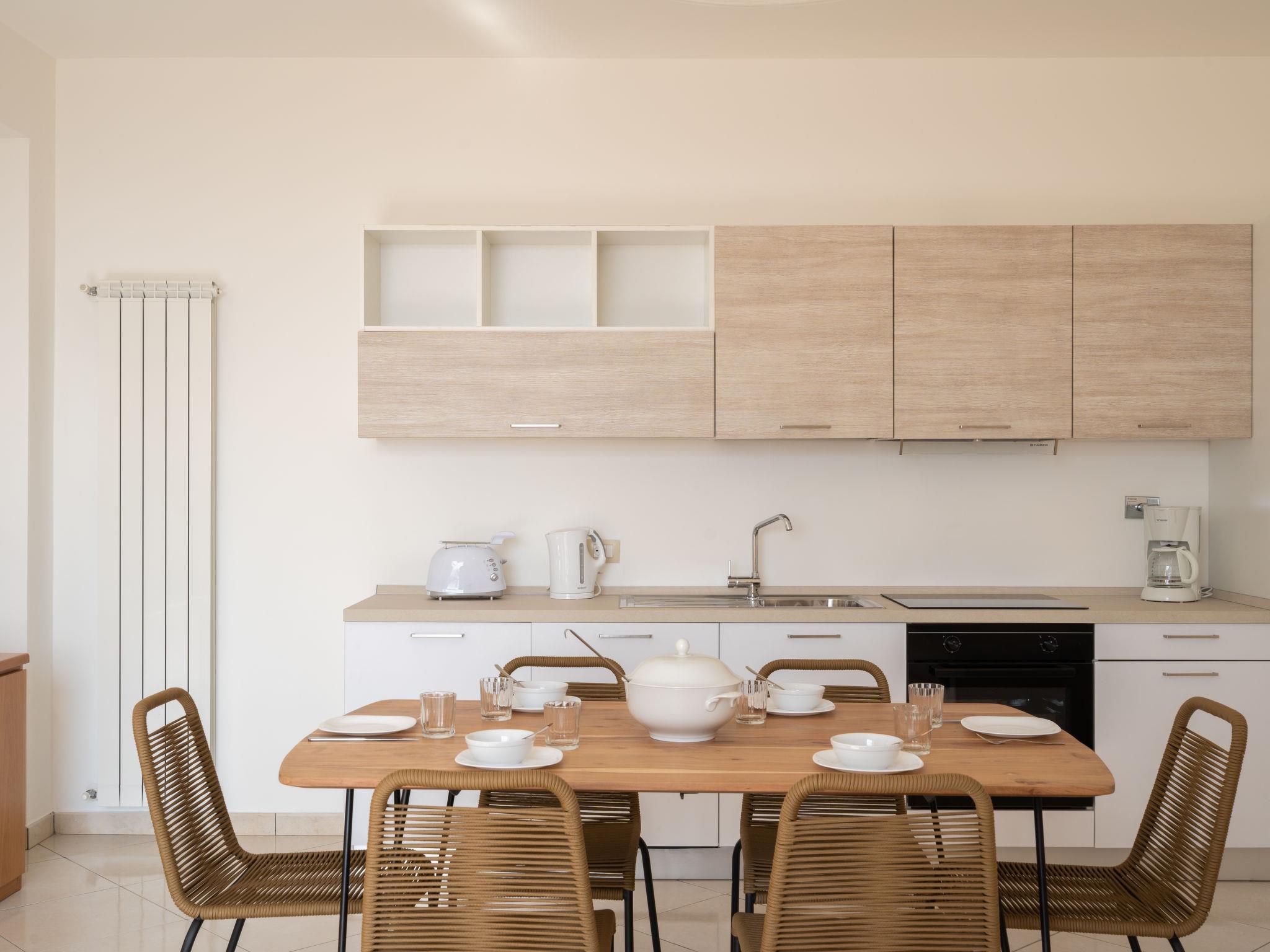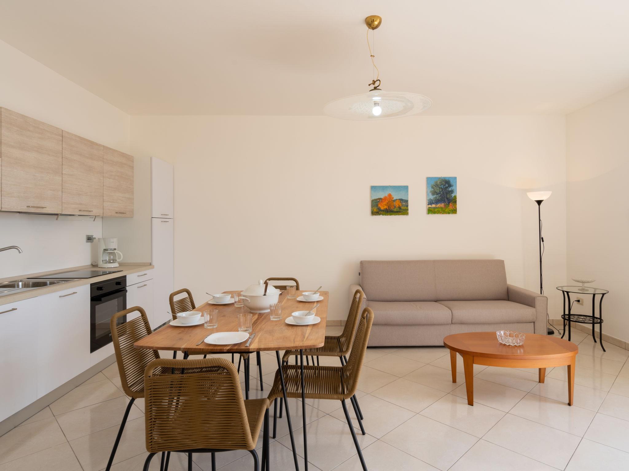 "Salvia", 3-room apartment 70 m2, on the ground floor. Bright, practical and modern furnishings: living/sleeping room with 1 double sofabed (140 cm), dining table. Exit to the patio. 1 room with 1 french bed (160 cm). 1 small room with 1 sleeping facility (60 cm, length 180 cm). Open kitchen (oven, dishwasher, 4 induction hot plates, freezer, electric coffee machine). Shower/WC. Gas heating. Patio. Terrace furniture, barbecue (portable), deck chairs. Facilities: washing machine, children's high chair, baby cot. Internet (WiFi, free). Parking (1 car). Maximum 1 pet/ dog allowed. IT008052C2G58FJGA2