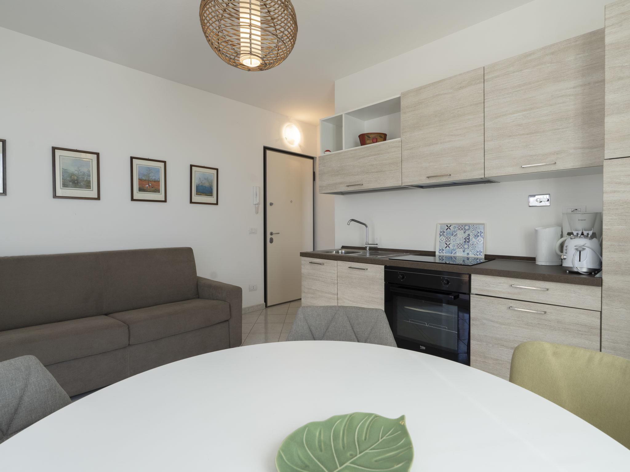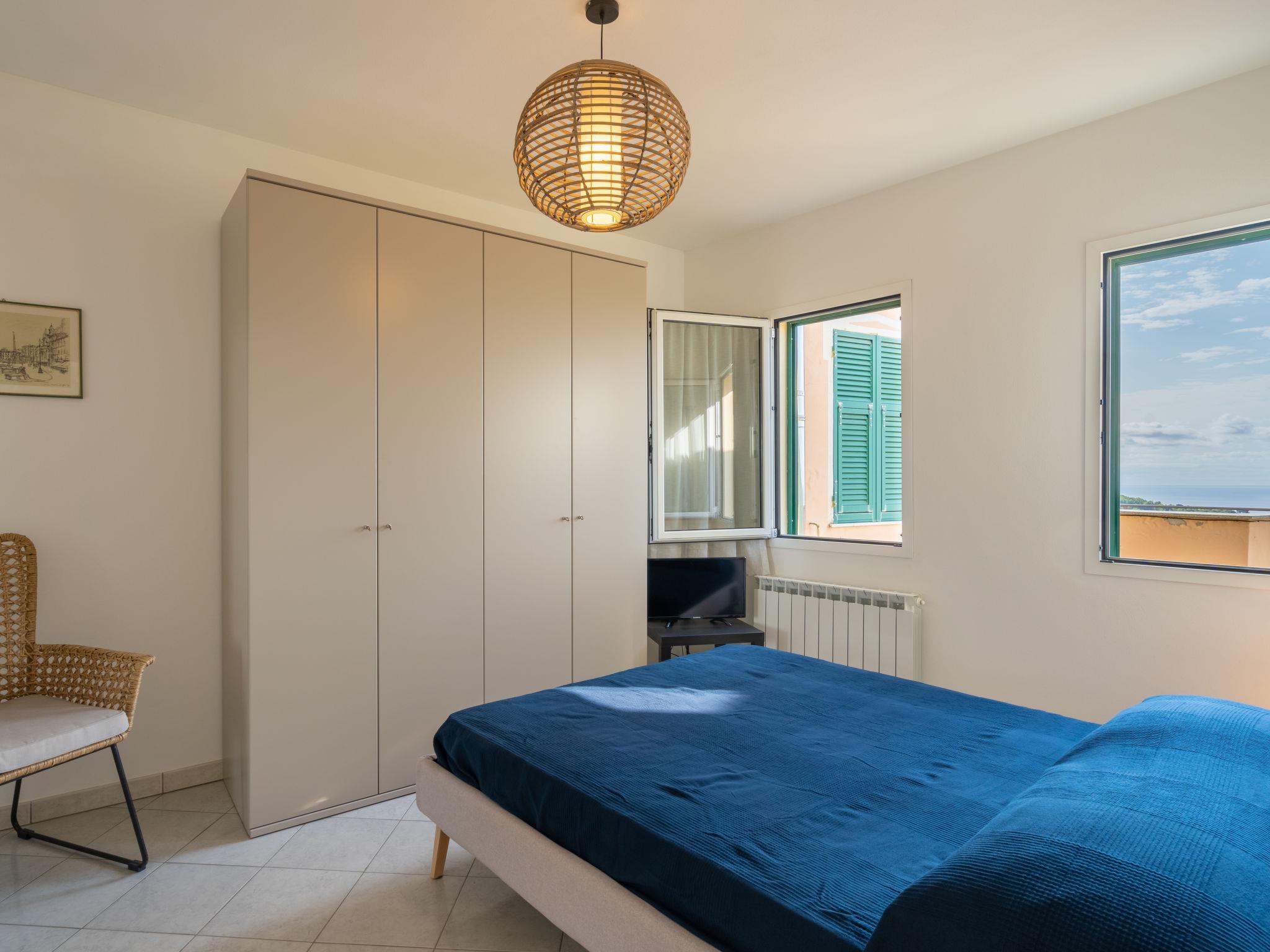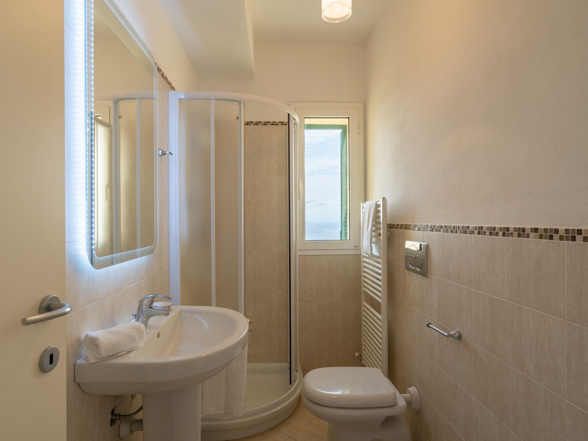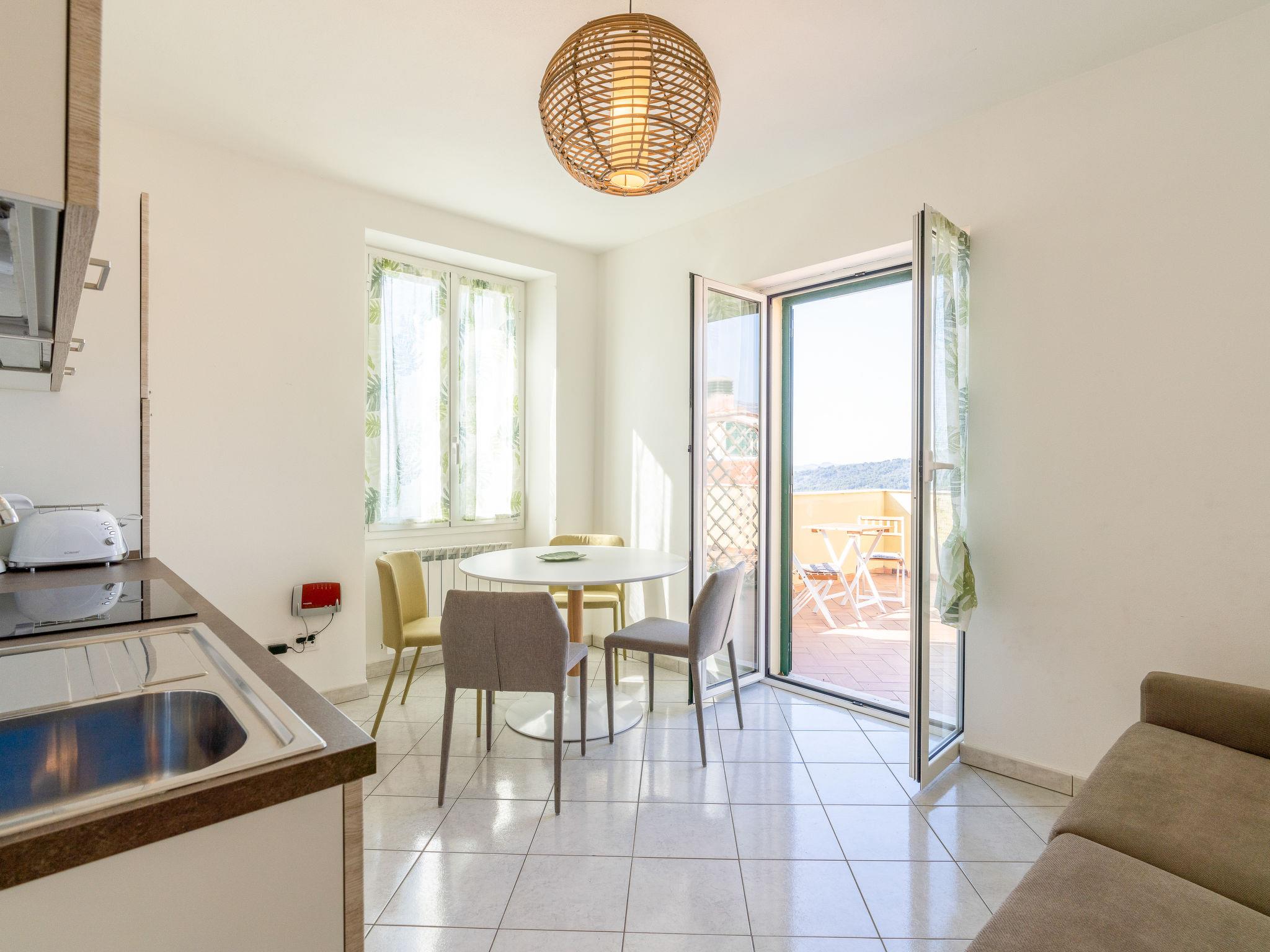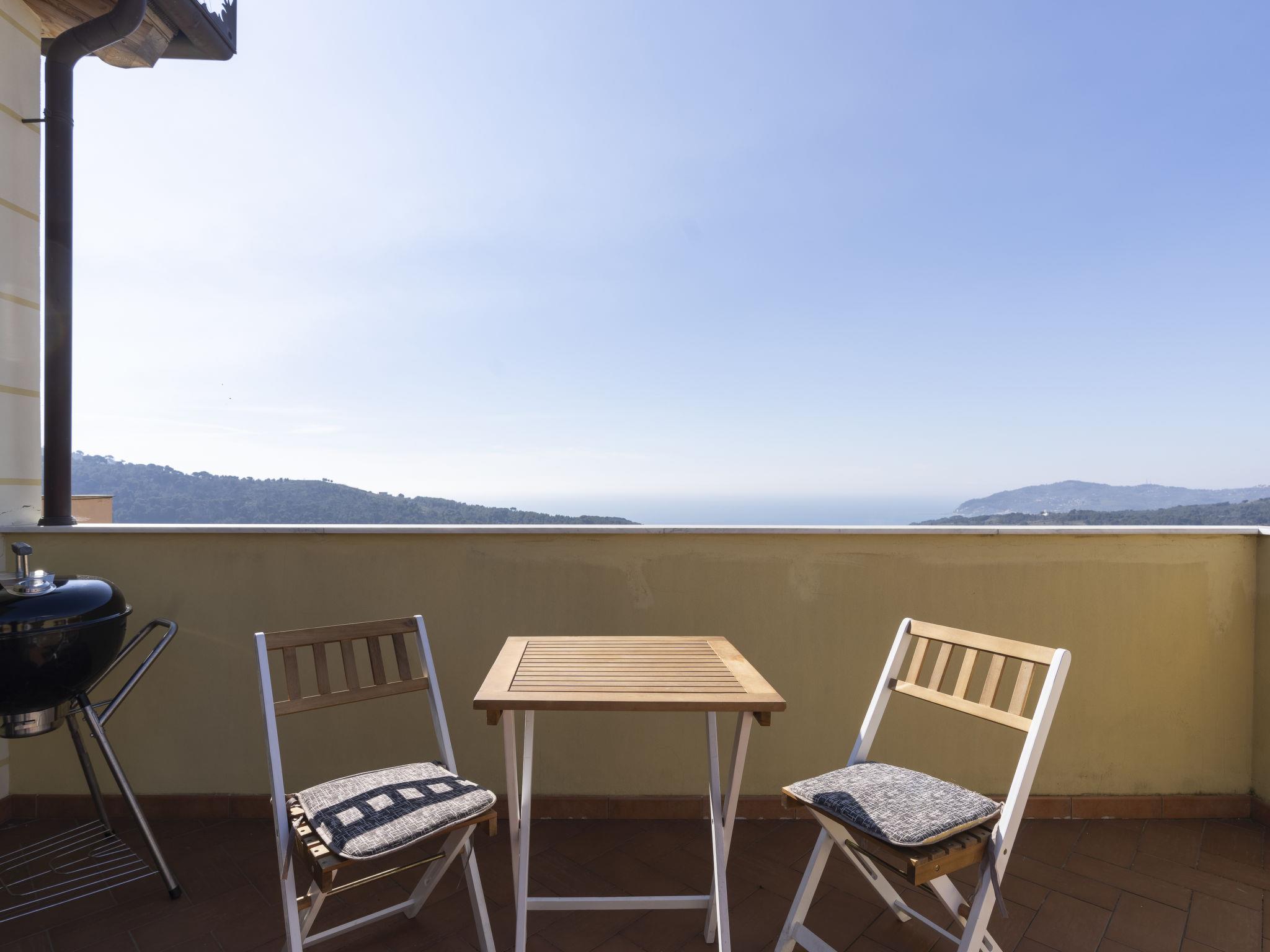 "Basilico", 2-room apartment 50 m2 on 2nd floor. Bright, practical and modern furnishings: 1 room with 1 french bed (160 cm). Kitchen-/living room (oven, dishwasher, 4 induction hot plates, freezer, electric coffee machine) with dining table, 1 double sofabed (140 cm). Exit to the terrace. Shower/WC. Gas heating. Heating available only from 15.10. to 30.04. Large terrace, south-west facing position. Terrace furniture, barbecue (portable), deck chairs. Very beautiful distant view of the sea and the countryside. Facilities: washing machine, children's high chair, baby cot for up to 2 year olds. Internet (WiFi, free). Parking (1 car). Maximum 1 pet/ dog allowed. IT008052C2JGB5XOH6