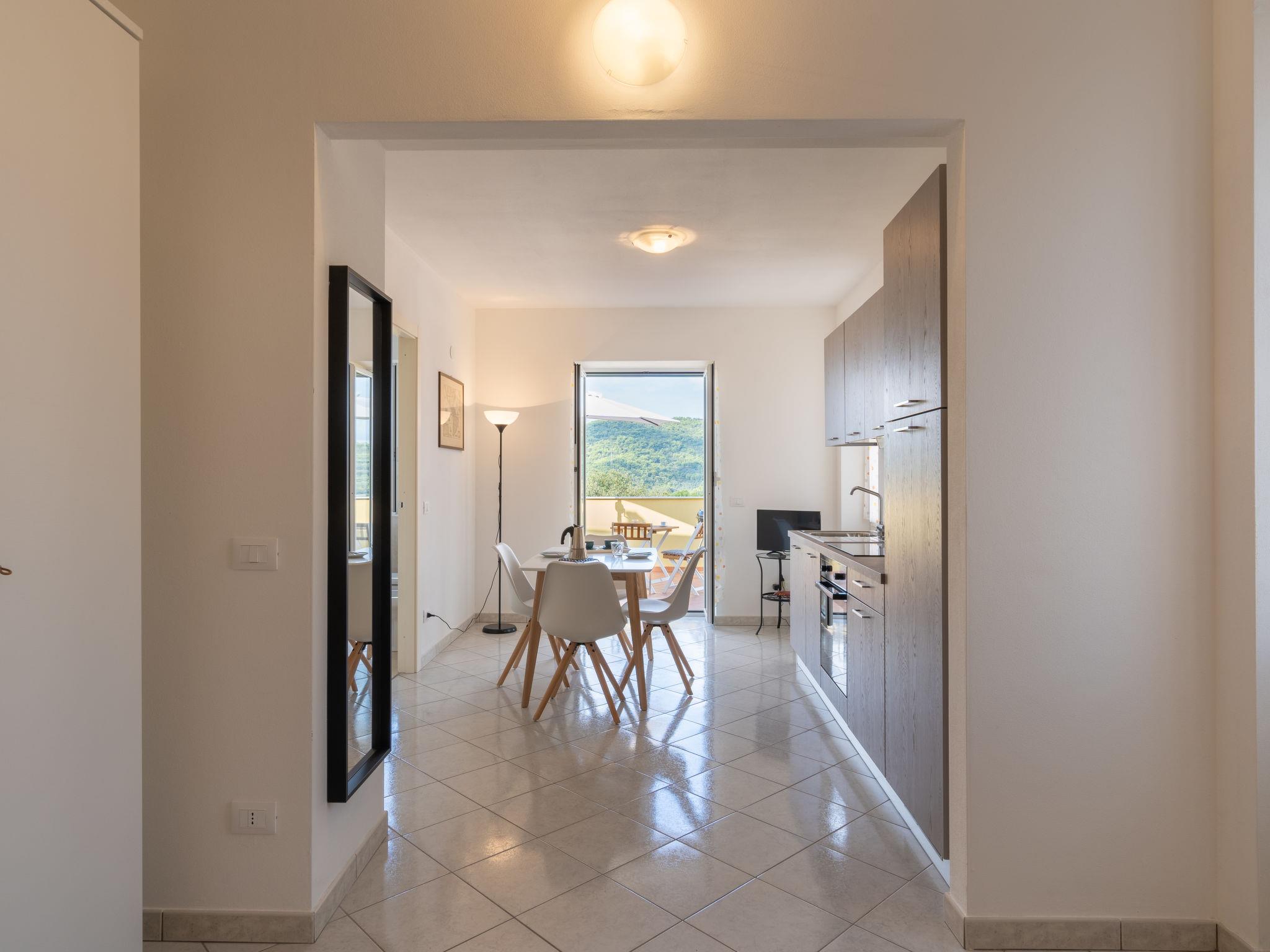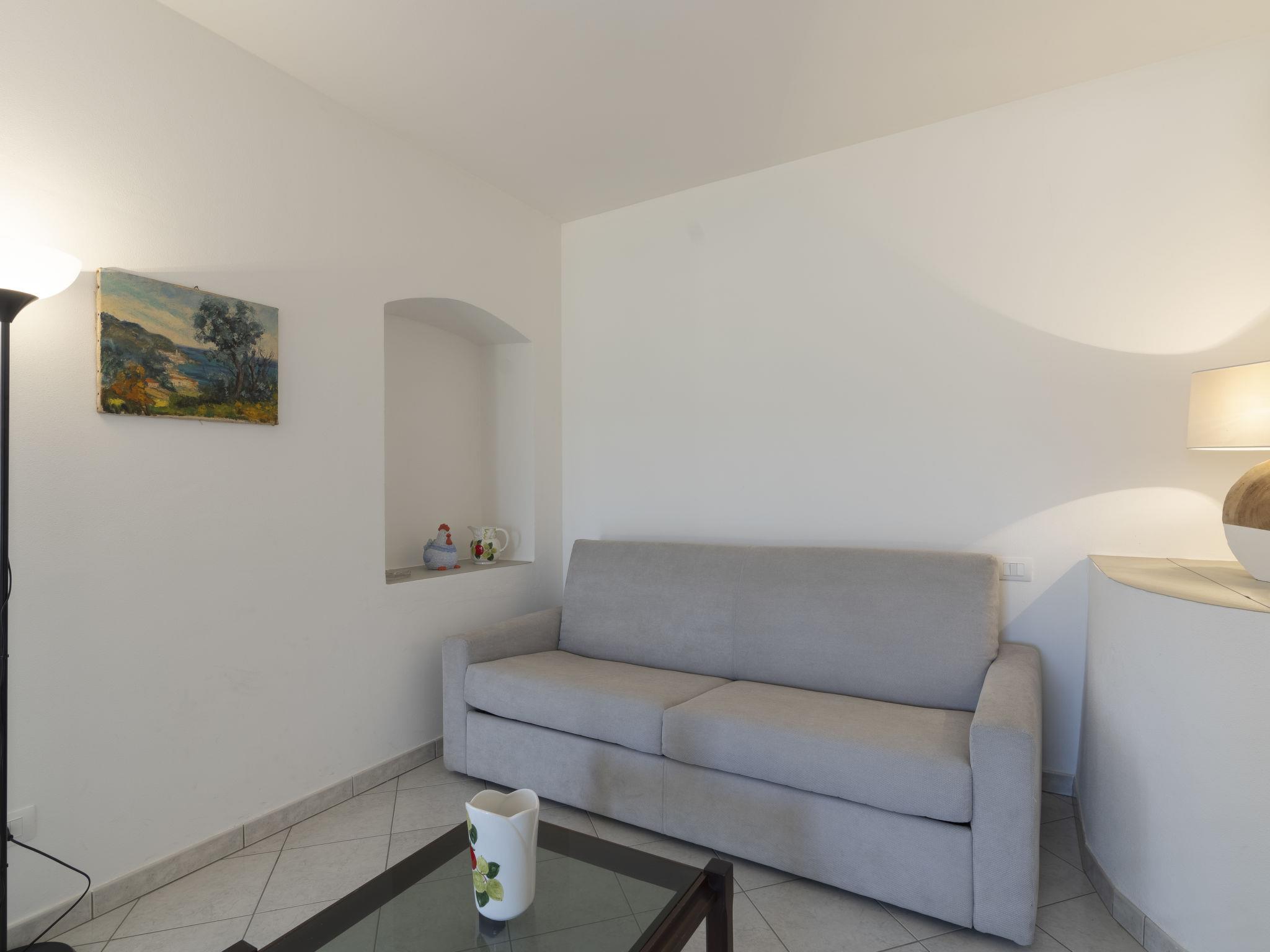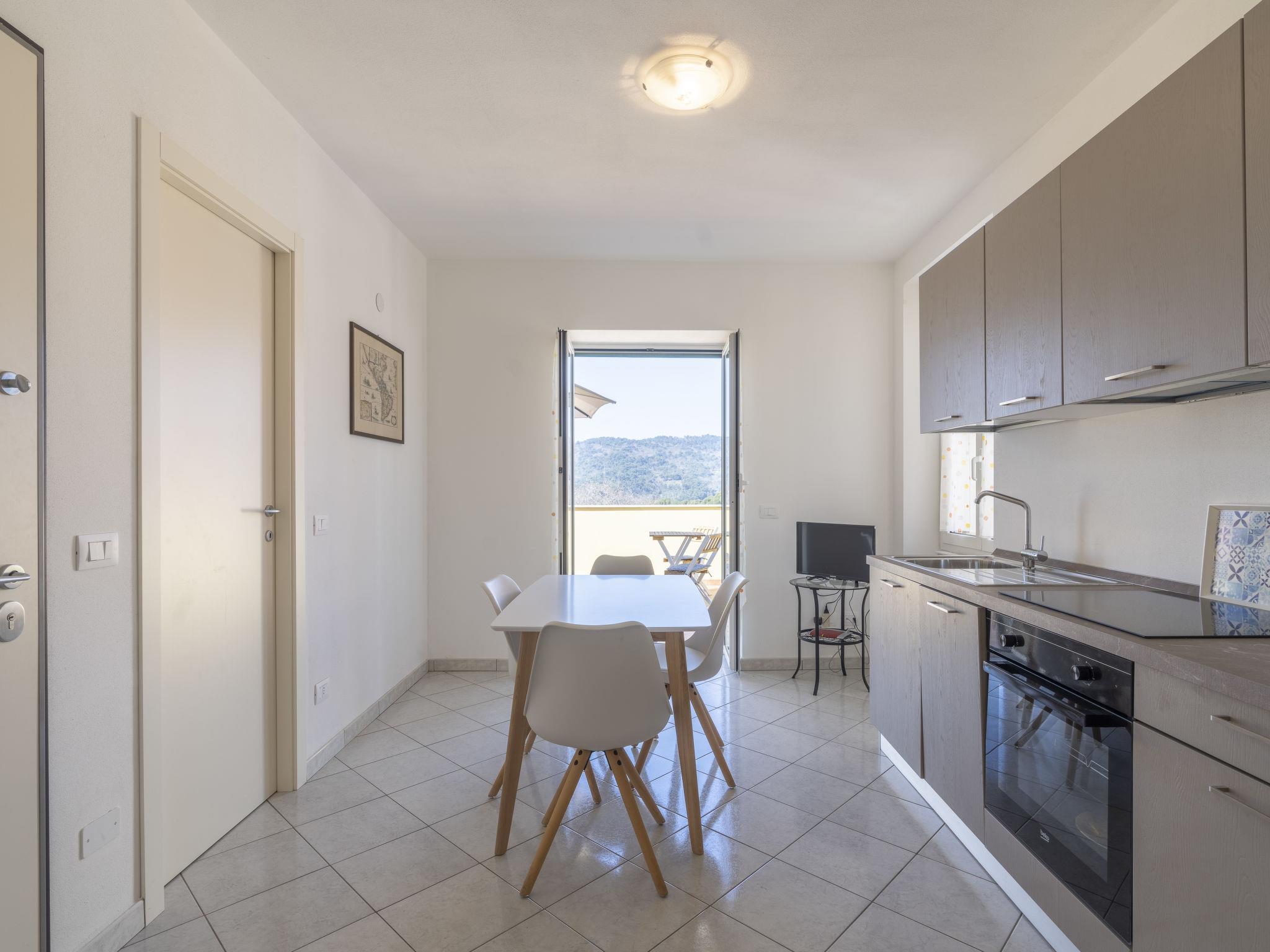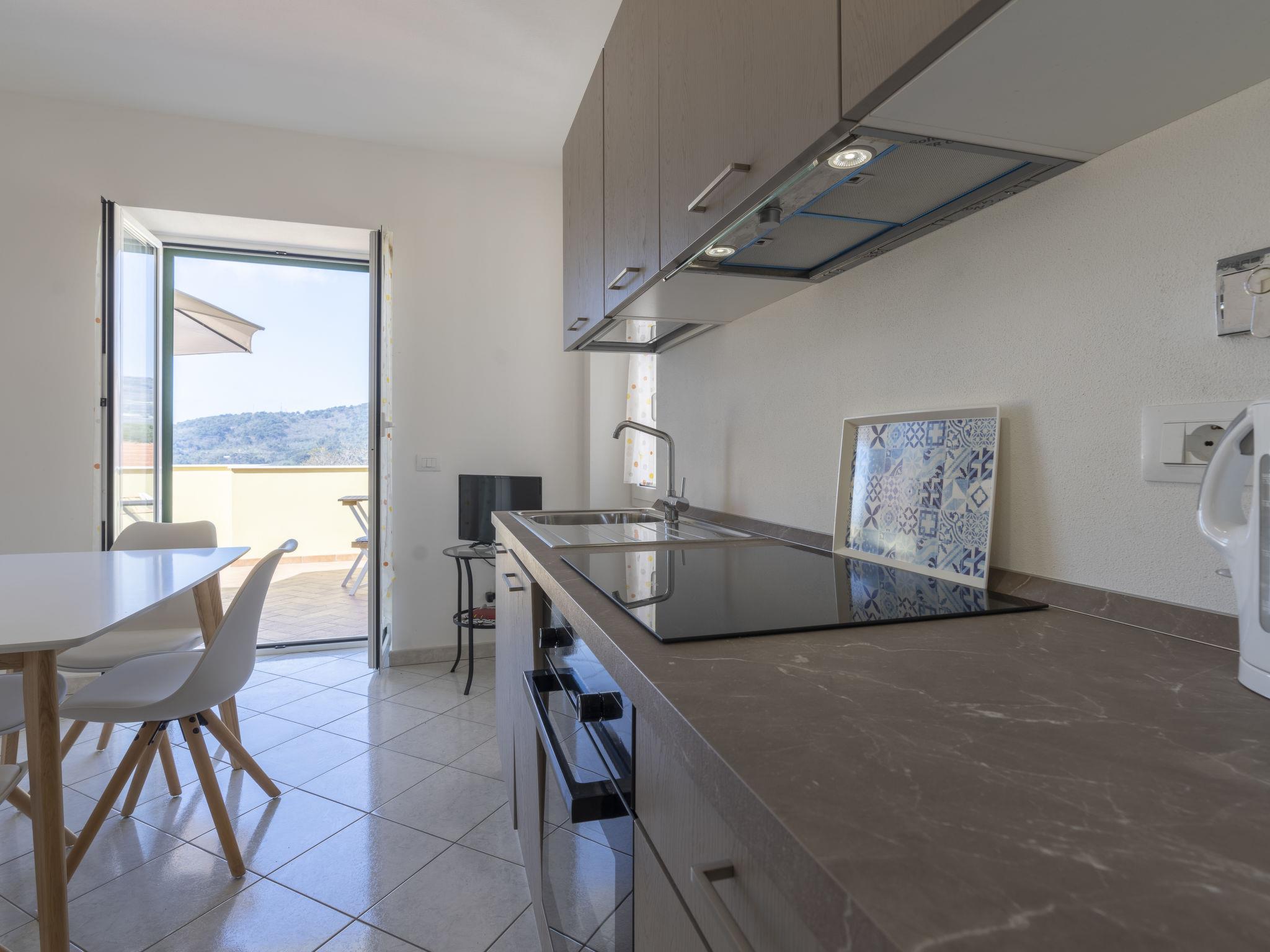 "Rosmarino", 1-room apartment 40 m2 on 2nd floor. Bright, practical and modern furnishings: living/sleeping room with 1 double sofabed (160 cm), TV. Open kitchen (oven, dishwasher, 4 induction hot plates, freezer, electric coffee machine) with dining table. Exit to the terrace. Shower/WC. Gas heating. Large terrace, south-west facing position. Terrace furniture, barbecue (portable), deck chairs. Very beautiful distant view of the sea and the countryside. Facilities: washing machine, children's high chair, baby cot. Internet (WiFi, free). Parking (1 car). Maximum 1 pet/ dog allowed. IT008052C2EKEAYHNK