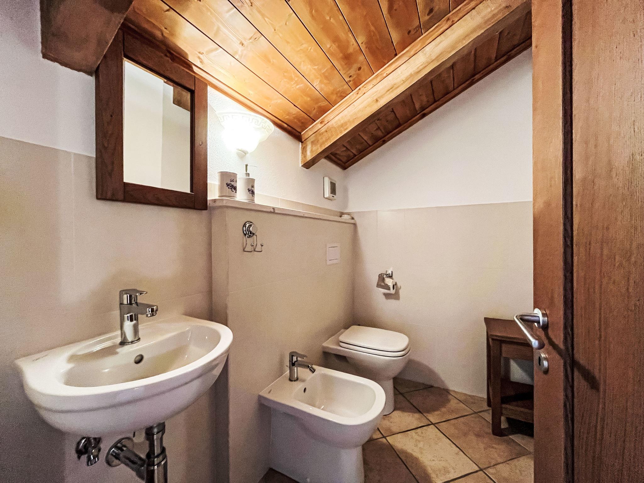 "Noce (SBO103)", 3-room apartment 55 m2 on 2 levels, on the upper floor. Beautiful and cosy furnishings: living/sleeping room with 1 double sofabed (160 cm), dining table and satellite TV. Exit to the balcony. 1 room with 1 french bed (160 cm). Open kitchen (oven, dishwasher, 4 gas rings, kettle, freezer, electric coffee machine). Shower/bidet/WC. Heating available only from 01.10. to 15.05. Top floor: 1 room with sloping ceilings with rooflight with 1 bed (80 cm), separate WC. Heating. Balcony. Balcony furniture. Beautiful panoramic view of the mountains and the countryside. Facilities: washing machine, iron, children's high chair, baby cot. Internet (WiFi, free). Please note: non-smokers only. Maximum 2 pets/ dogs allowed. Private entrance. IT009056B452IYH6GR
