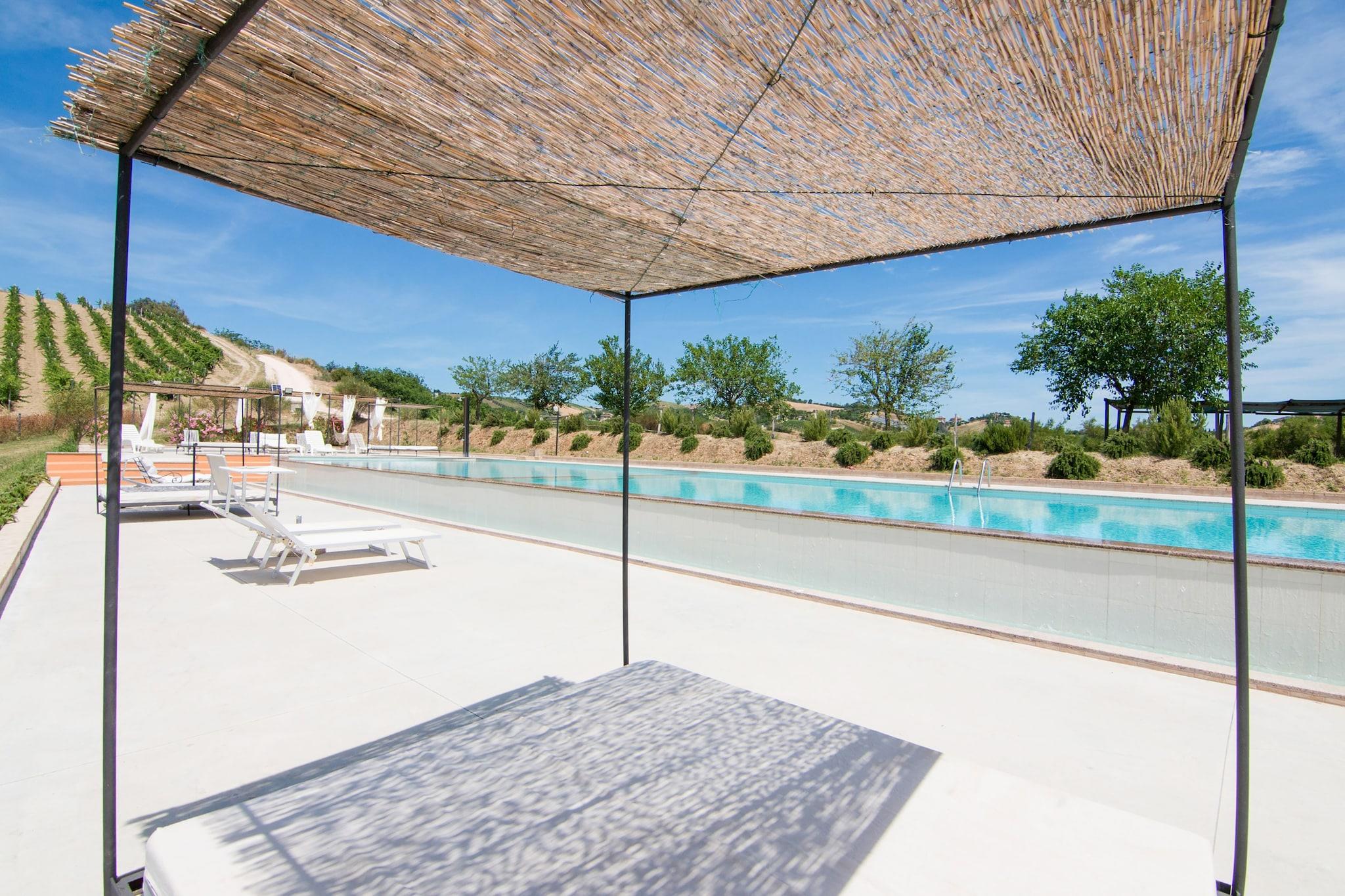 This apartment is in the property, named as Casali Costadoro to keep you comfortable. Great for a group of friends or family, the home features a bubble bath and a swimming pool for relaxation. We are situated in the heart of Italy, and a long drive shall take you to Assissi, a town of religious, mythical importance involving St. Francis of Assissi. Daily essentials are available at the supermarket, 2 km away. Enjoy the sandy beaches and sunny rays at the sea beach 15 km away, and Riviera delle Palme shall not fail to enrapture you, covered with 1000's of palm trees and a long coast for you to cycle along. Multiple food festivals in summer await you by the coast of Marche, it starts with GustoPolis in Gabicce Mare (PU), while in June the Brodetto week takes place in Porto Recanati. Admire the valley views from the terrace. Enjoy the barbecue in the well-furnished garden. The fireplace in the living room will keep you warm in chilly weather.