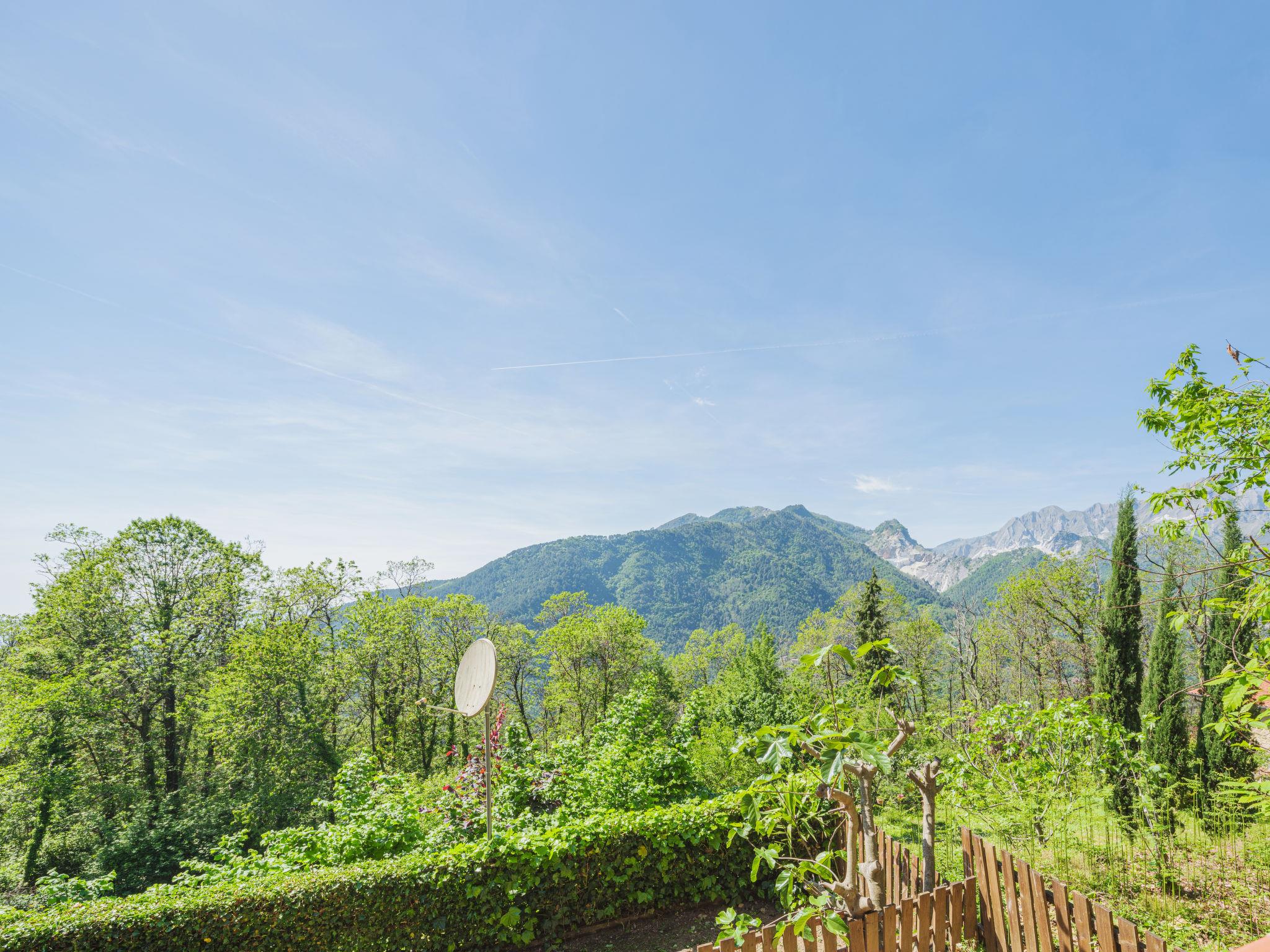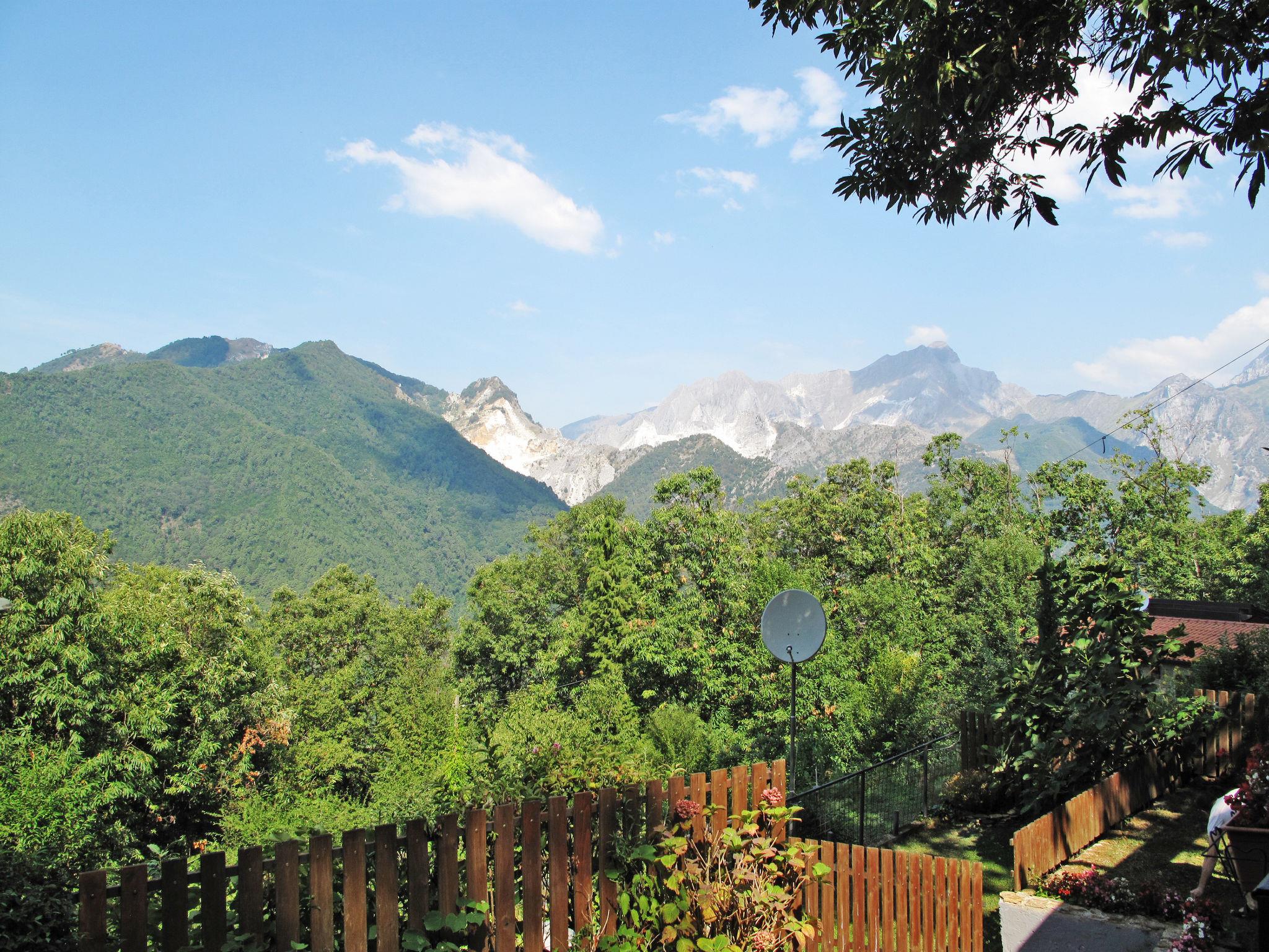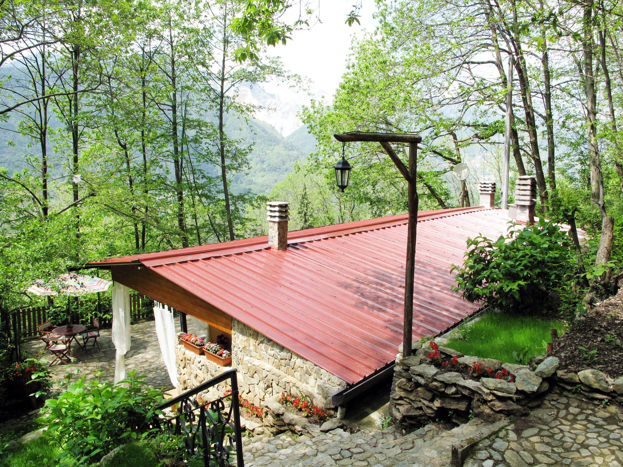 Cosy chalet "Mare e Monti", 400 m a.s.l., detached, surrounded by trees. Above San Carlo, in the district of Altagnana (2 km) 3 km from the centre of San Carlo, 5 km from the centre of Massa, 62 km from the centre of Pisa, in a secluded, elevated position on a slope, 9.5 km from the sea, 9.5 km from the beach, in the woods. Private: terraced garden, 1'100 m2 (fenced) with trees, natural garden. Stepped path (42 steps) to the house. Parking at the house at 10 m. Grocery 2 km, supermarket 5 km, restaurant 2 km, bus stop "Altagnana" 2 km, railway station "Massa" 5 km, sandy beach "Marina di Massa" 9.5 km. Nearby attractions: Pietrasanta 17 km, Forte dei Marmi 16 km, Viareggio 36 km, Lucca 55 km, Carrara Fantiscritti (cave di marmo) 13 km, Lerici 32 km. Well-known lakes can easily be reached: Lago di Massaciuccoli 52 km, Torre del Lago 44 km. Please note: car recommended.