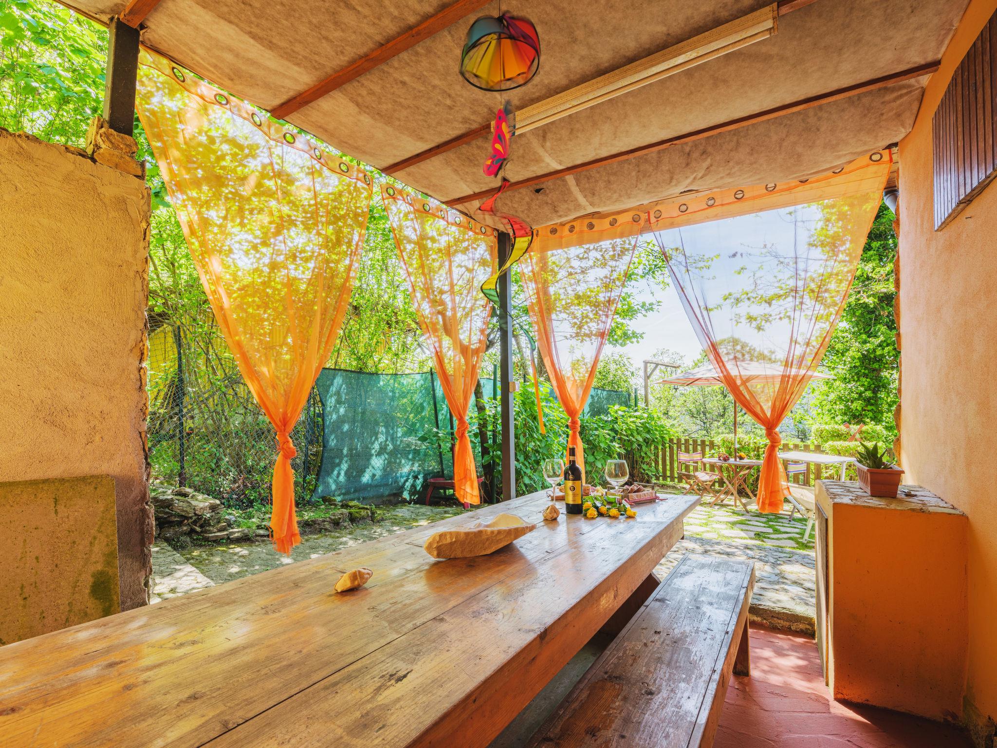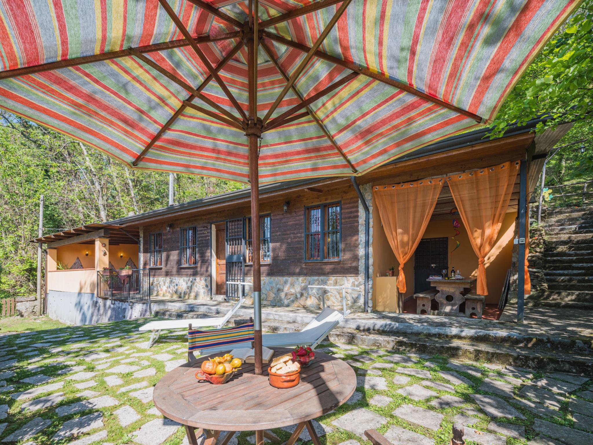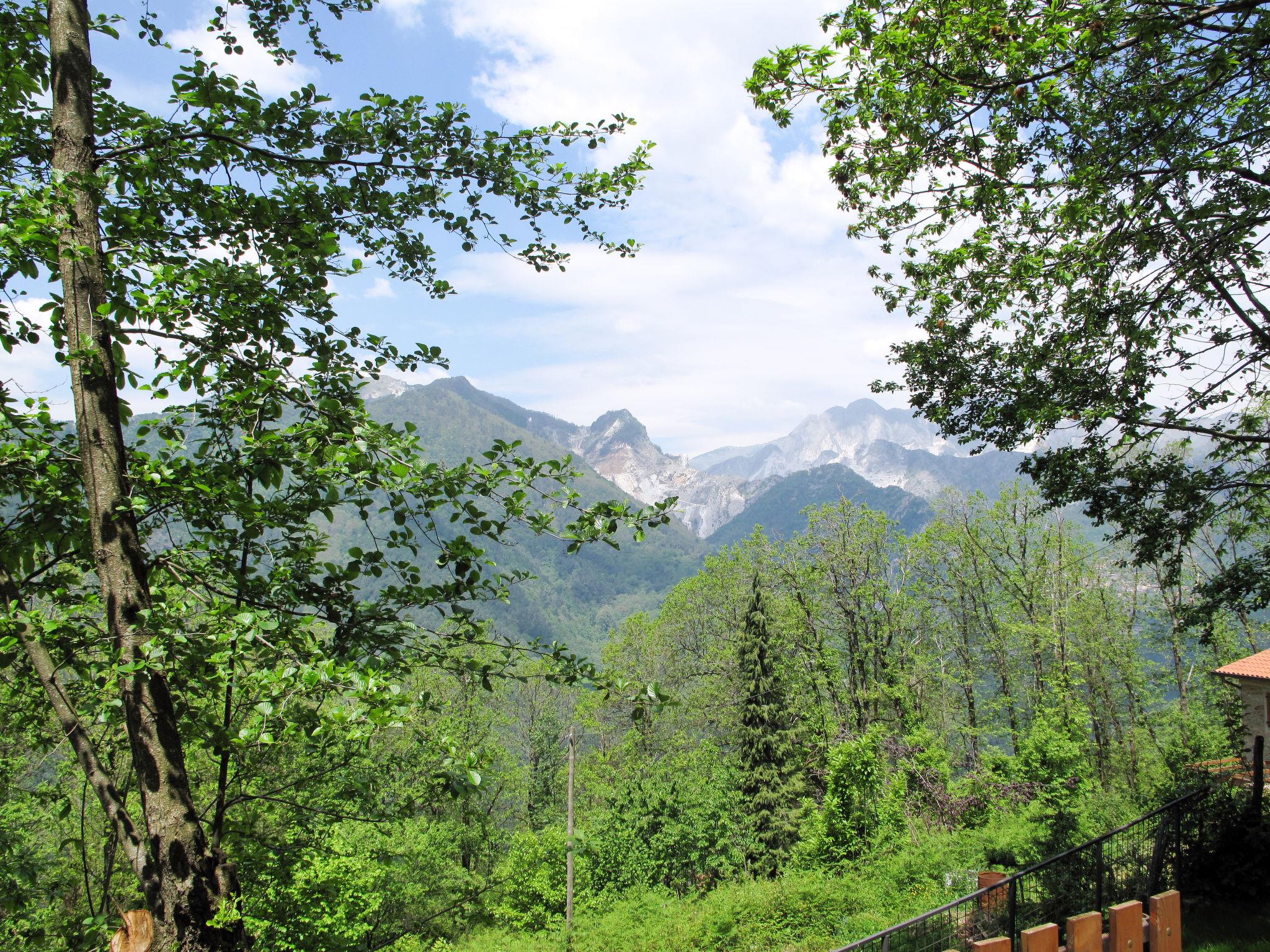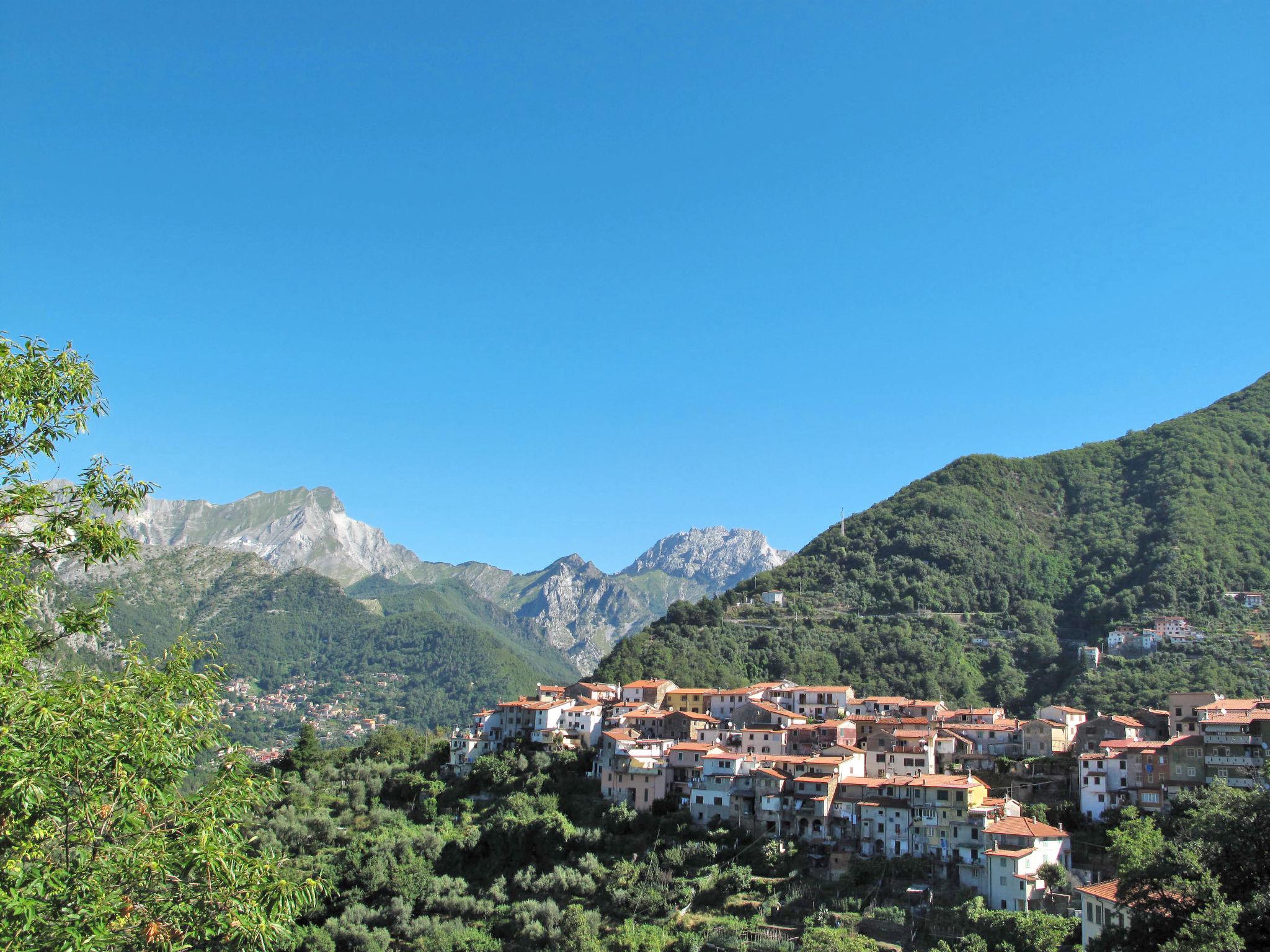 Cosy chalet "Mare e Monti", 400 m a.s.l., detached, surrounded by trees. Above San Carlo, in the district of Altagnana (2 km) 3 km from the centre of San Carlo, 5 km from the centre of Massa, 62 km from the centre of Pisa, in a secluded, elevated position on a slope, 9.5 km from the sea, 9.5 km from the beach, in the woods. Private: terraced garden, 1'100 m2 (fenced) with trees, natural garden. Stepped path (42 steps) to the house. Parking at the house at 10 m. Grocery 2 km, supermarket 5 km, restaurant 2 km, bus stop "Altagnana" 2 km, railway station "Massa" 5 km, sandy beach "Marina di Massa" 9.5 km. Nearby attractions: Pietrasanta 17 km, Forte dei Marmi 16 km, Viareggio 36 km, Lucca 55 km, Carrara Fantiscritti (cave di marmo) 13 km, Lerici 32 km. Well-known lakes can easily be reached: Lago di Massaciuccoli 52 km, Torre del Lago 44 km. Please note: car recommended.
