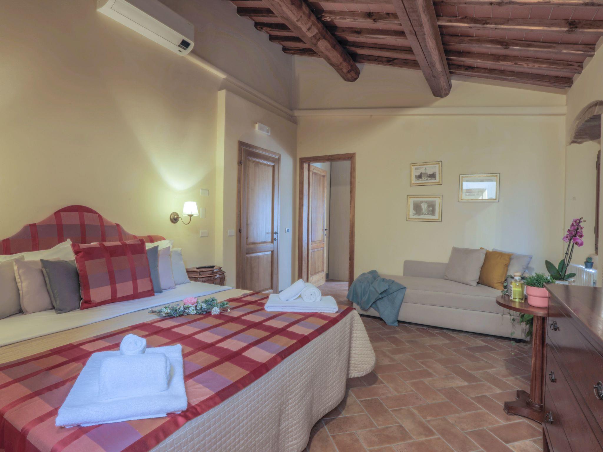 Outside you can enjoy large green spaces, panoramic terrace overlooking the Chianti hills, outdoor dining area, relaxation area, solarium, seasonal opening of the swimming pool and jacuzzi from May to October .