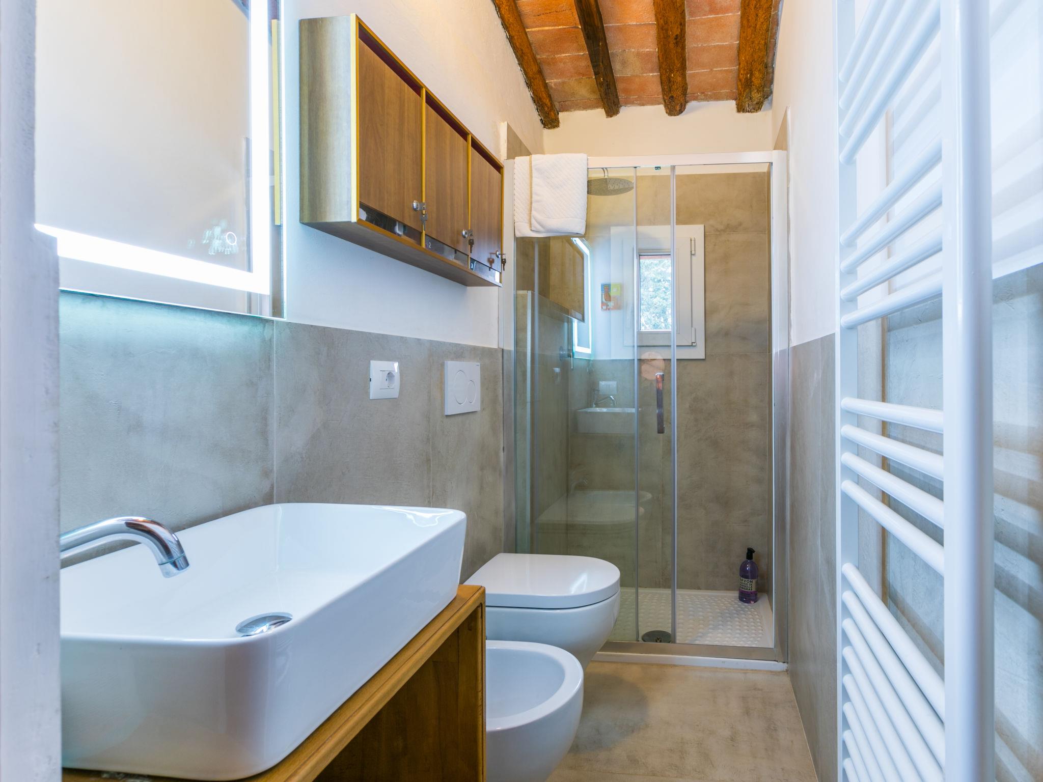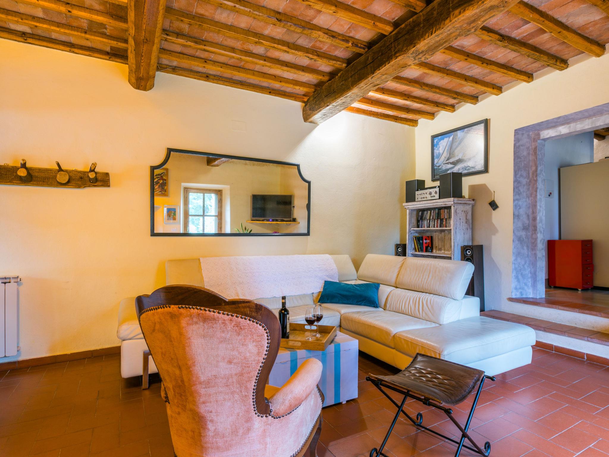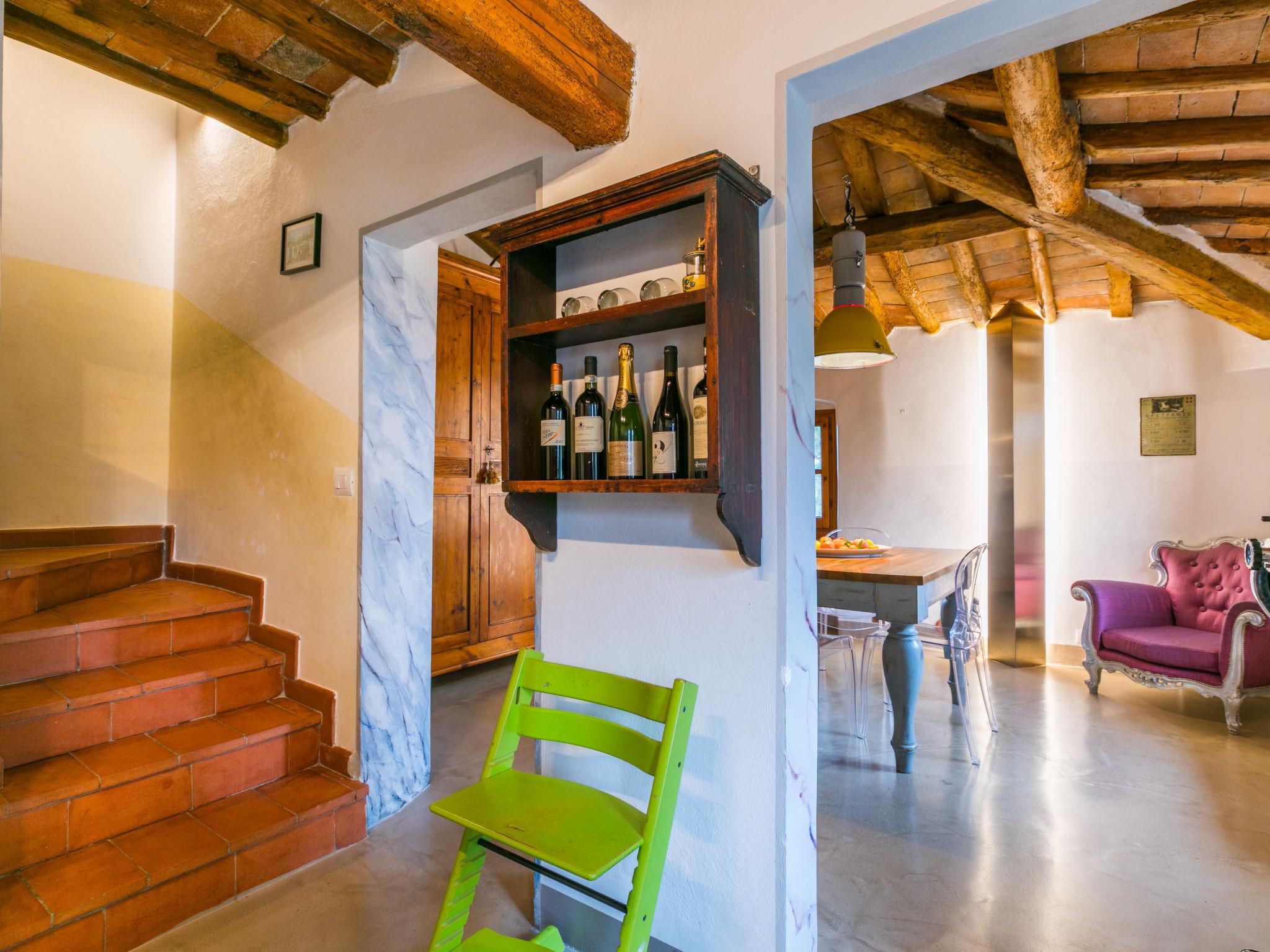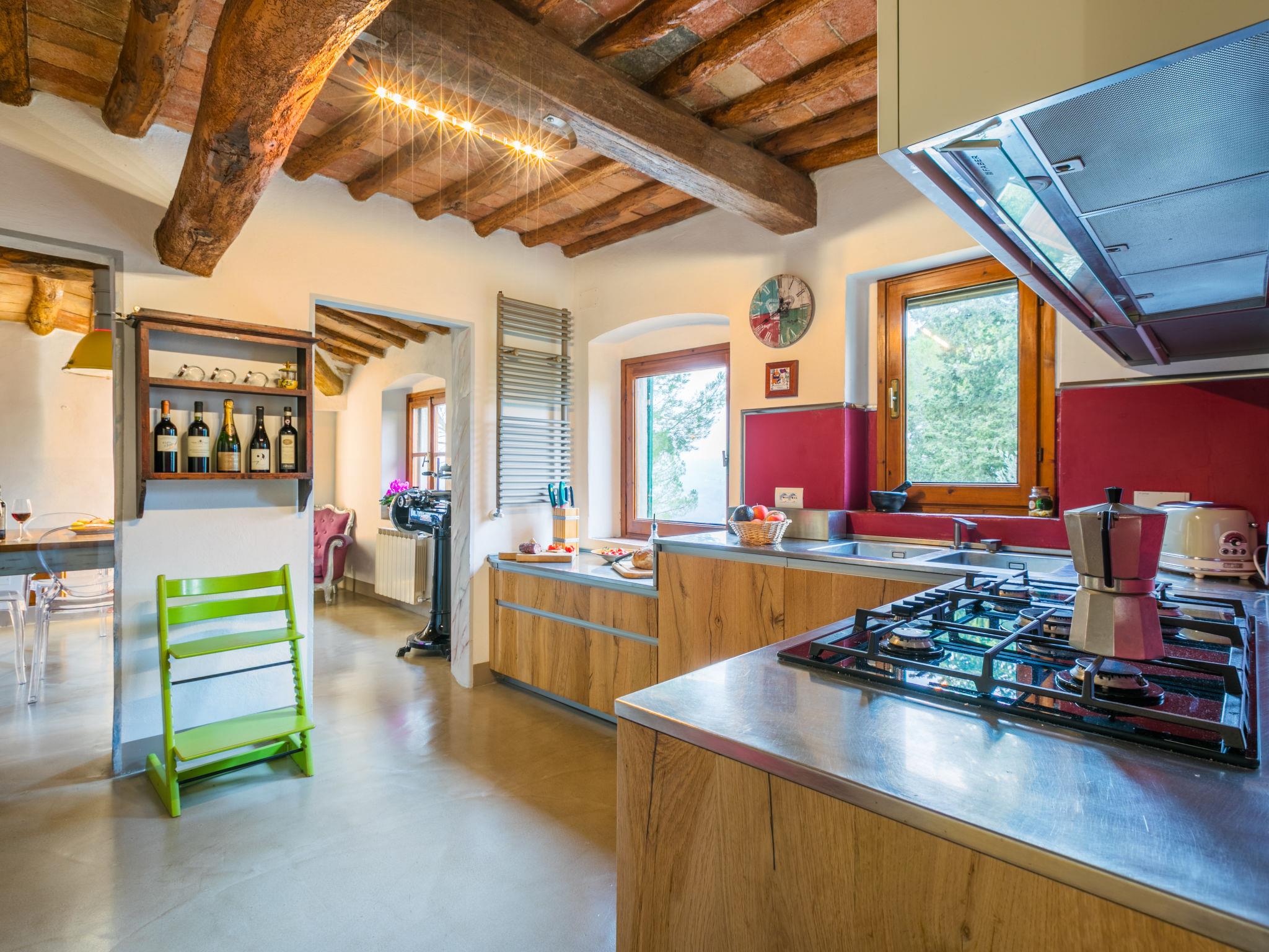 " Sole", 6-room farmhouse 195 m2 on 3 levels. Spacious, fully renovated in 2019, tasteful and cosy furnishings: open living room with open-hearth fireplace and TV (flat screen). Exit to the terrace. Dining room. Kitchen (oven, dishwasher, Gas stove, 5 gas rings, toaster, kettle, microwave, electric coffee machine). On the lower ground floor: 1 double bedroom. Exit to the garden. Shower/WC. Upper floor: 2 double bedrooms, each room with air conditioning. 1 double bedroom with 1 bed (140 cm), air conditioning. Shower/bidet/WC, bath/shower/bidet/WC. Heating (extra), air-conditioning. Natural stone floors. Terrace, large terrace roofed, patio. Terrace furniture, barbecue, deck chairs, covered balcony, box-room. Very beautiful panoramic view of the countryside. Facilities: washing machine, iron, mosquito net, children's high chair, baby cot for up to 2 year olds, hair dryer. Internet (WiFi, free). Parking (fenced) at the house. Please note: non-smokers only. Private entrance. The pool mentioned in the description is for private use. IT048038C24Q4Q8KAO