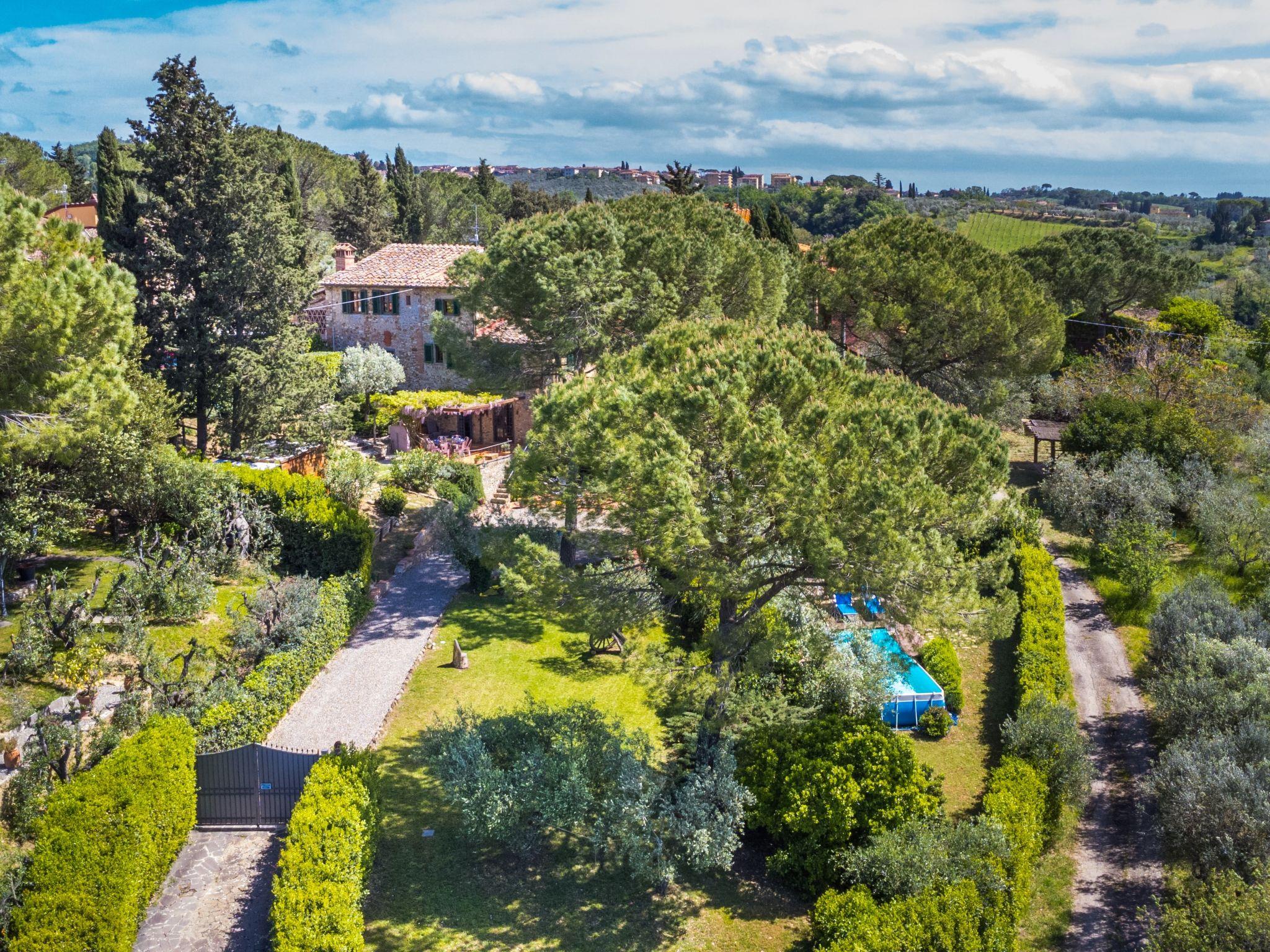 S.Casciano Val di Pesa: Large, cosy farmhouse "Sole", 3 storeys, renovated in 2019, surrounded by trees and vineyards. 2.5 km from the centre of San Scasciano, in a secluded, sunny position on a slope, 90 km from the sea, in the countryside. Private: property 600 m2 (fenced), terraced garden with wildlife garden and trees, swimming pool (above ground) (3 x 8 m, seasonal availability: 06.Jun. - 06.Sep.). Outdoor shower, terrace, garden furniture, barbecue, pool maintenance by the owner/gardener. In the house: washing machine. Linen change (suppl. charge extra). Towel change (suppl. charge extra). Cook on request (extra). Pre-arrival grocery service. 800 m long bumpy, narrow motor access to the house. Parking (for 4 cars) at the house on the premises. Shop 2 km, grocery 2 km, supermarket 2 km, restaurant 2 km, bakery 2 km, bicycle rental 2 km, bus stop "San Casciano" 2 km, railway station "Firenze Santa Maria Novella" 22 km, sandy beach 90 km, indoor swimming pool 4 km. Golf course (18 hole) 21 km, tennis 4 km, walking paths from the house 100 m. Nearby attractions: Firenze 22 km, San Gimignano 40 km, Siena 60 km, Pisa 74 km. Please note: car recommended. Baby equipment (included). Groups of teenagers on request only. Local sale of farm products.