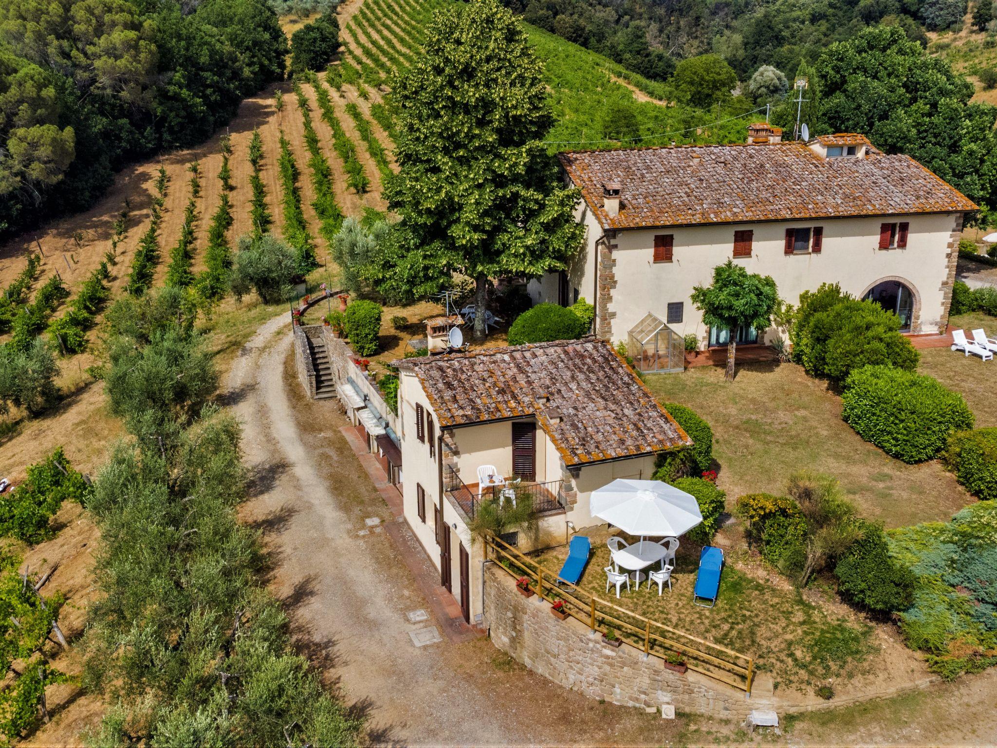 2-family house on a vinyard "Villa Magna + Dependance", 2 storeys, detached from the 19th century, renovated, surrounded by meadows, fields and vineyards. Property composed of main house and outbuilding 9 km from the centre of San Casciano, 4 km from the centre of Cerbaia, 10 km from the centre of Scandicci, in a secluded, sunny position. For shared use: property 10'000 m2 (fenced), garden with lawn and trees. Private: terraced garden, swimming pool (13 x 5 m, seasonal availability: 01.May. - 05.Oct.). Outdoor shower, terrace, garden furniture, barbecue, pool maintenance by the owner/gardener. 300 m long motor access (via unmade road). Parking on the premises. Shop 4 km, grocery 4 km, supermarket 9 km, restaurant 2 km, bar 4 km, bakery 4 km, bus stop 350 m, railway station "Scandicci" 10 km, sandy beach "Marina di Pisa" 75 km, indoor swimming pool 10 km. Golf course (9 hole) 12 km, tennis 10 km. Nearby attractions: Firenze 27 km, San Gimignano 41 km, Volterra 67 km, Siena 68 km. Please note: car recommended. Suitable for families, baby equipment (included). Groups of teenagers on request only. Local sale of farm products. The owner lives in the same residence.