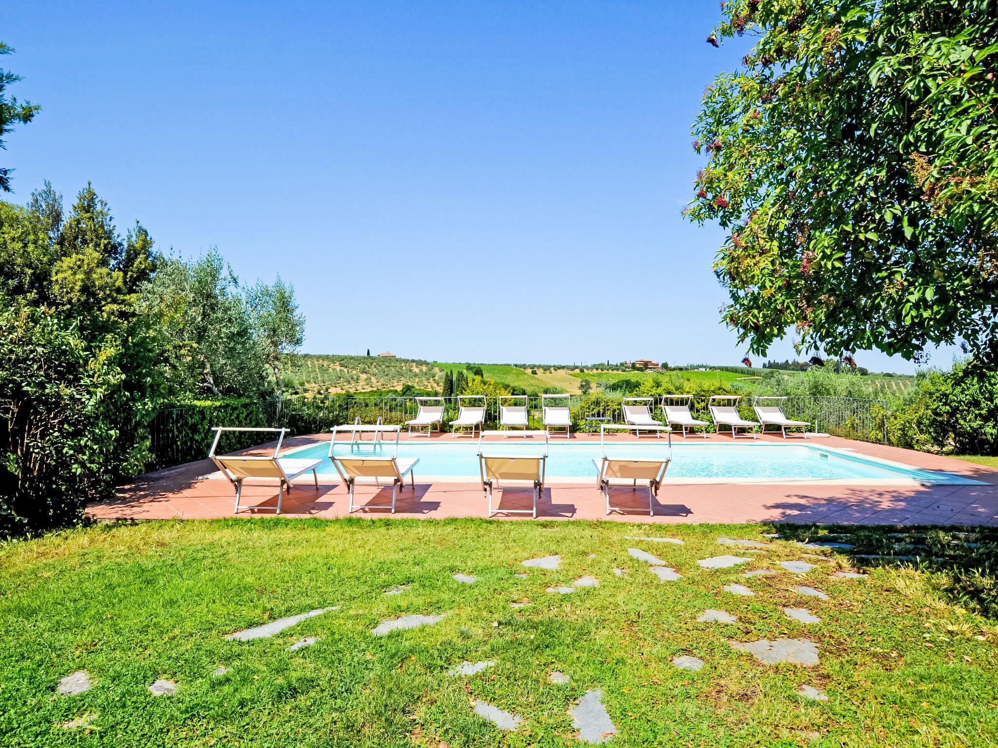 Beautiful country house "Bulleri", renovated. 4 km from the centre of San Casciano, in a quiet, sunny position on top of a hill, in the countryside. For shared use: property 30 ha. Private: large garden 2'000 m2 with wildlife garden, swimming pool (5 x 10 m, depth 140 - 140 cm, seasonal availability: 03.Apr. - 16.Oct.). Outdoor shower, terrace, garden furniture, barbecue. In the house: internet access, central heating system, washing machine, heating to be paid on the spot (06.Nov. - 08.Apr.). Linen change (suppl. charge extra). Towel change (suppl. charge extra). Cook on request (extra). Parking on the premises. Shop 3 km, bus stop 4 km. Golf course 25 km, tennis 5 km. Nearby attractions: Firenze 22 km, Siena 55 km. Casa Bulleri is a carefully restored villa in a panoramic position in the Chianti Classico region near San Casciano, surrounded by vineyards and olive groves. Its original structure dates back to the 16th century, from which the rectangular tower and the little chapel of the still-running farm have been preserved. The owner's villa and several annex buildings are located on the 30-ha property. Guests have private grounds with a beautiful garden and a swimming pool in a position with great view. Wine-tasting and sales of wine, olive oil and Vinsanto (Italian dessert wine).