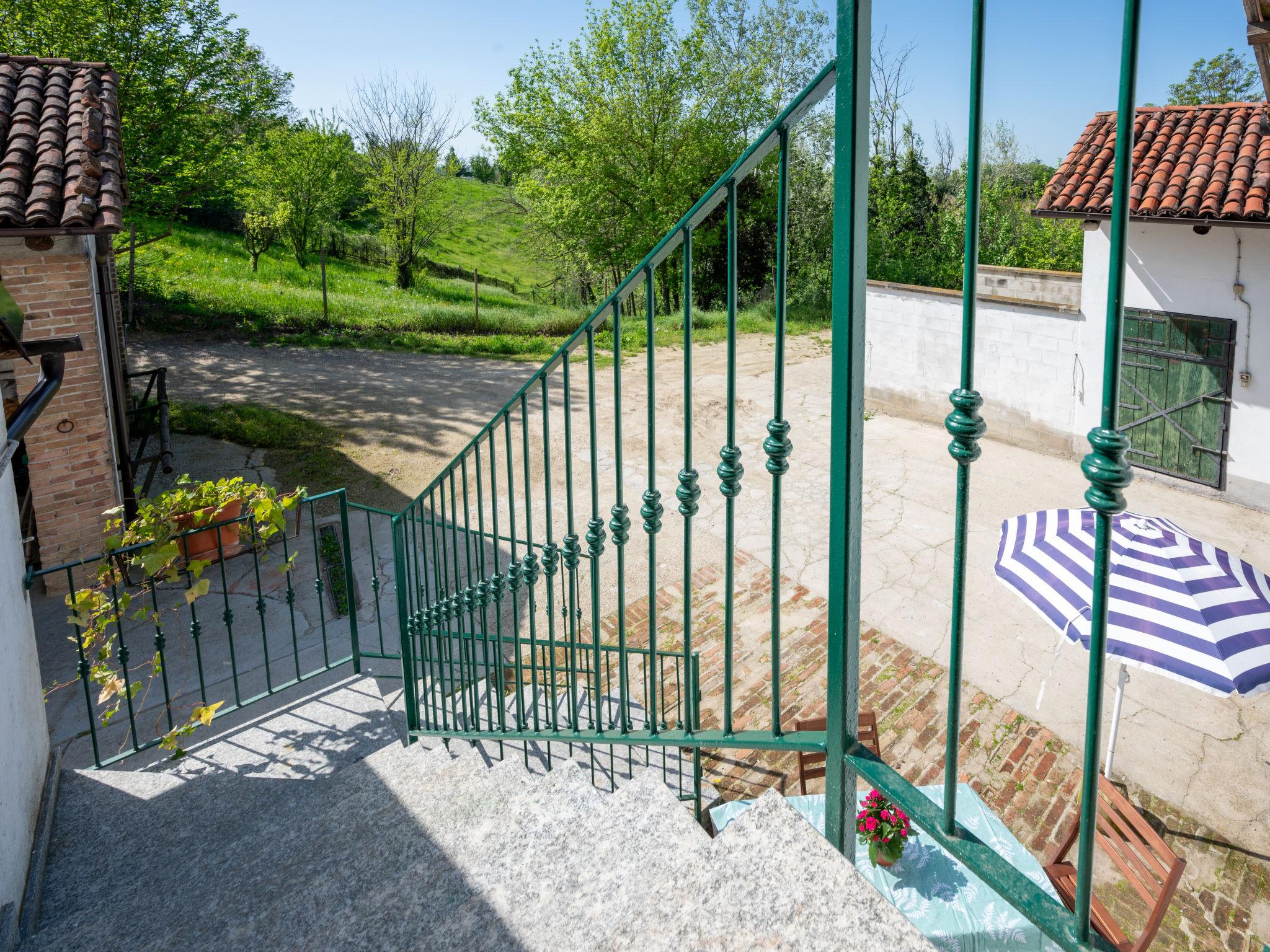Country house "Il Carroccio", 400 m a.s.l.. 3 apartments in the residence. In the district of Torrazzo 2 km from the centre of San Damiano d'Asti, 15 km from the centre of Asti, 25 km from the centre of Alba, on top of a hill, in the countryside. For shared use: property 3'000 m2, garden with trees, meadow, swimming pool (above ground) (10 x 5 m, depth 130 cm, seasonal availability: 07.Jun. - 15.Sep.). WC in the pool area, outdoor shower. In the house: washing machine. Parking at the house on the premises. Supermarket 2 km, bus stop 2 km, railway station "Asti" 15 km, outdoor swimming pool 2 km. Golf course (9 hole) 16 km. Please note: car recommended. Owner lives in separate semi-detached house. Obligation to wear bathing caps.