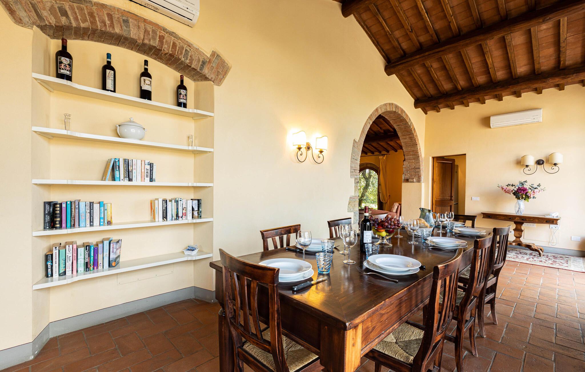 Skønne omgivelser på en bakke med panoramaudsigt til dalen, vinbjergene og det omliggende landskab, kun en km fra den lille by San Donato i Poggio, som I kan gå til på en dejlig spadseretur gennem skoven.
