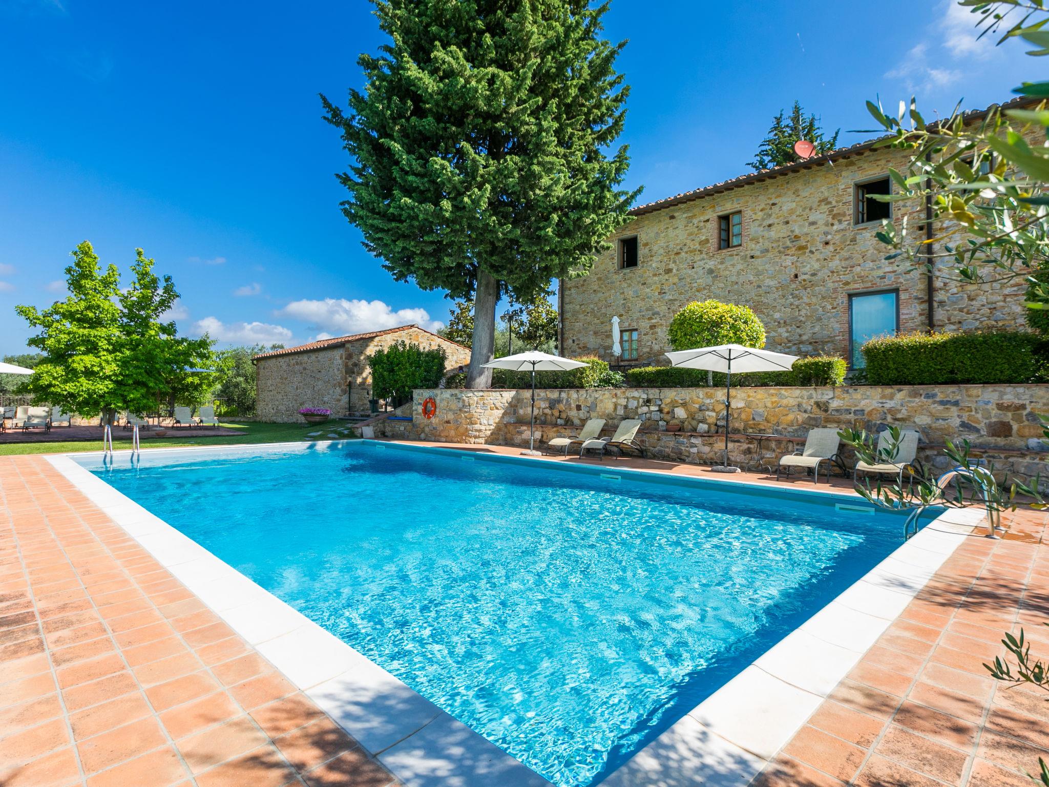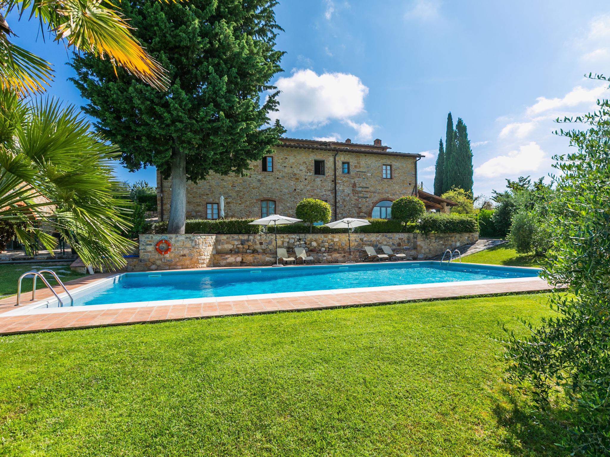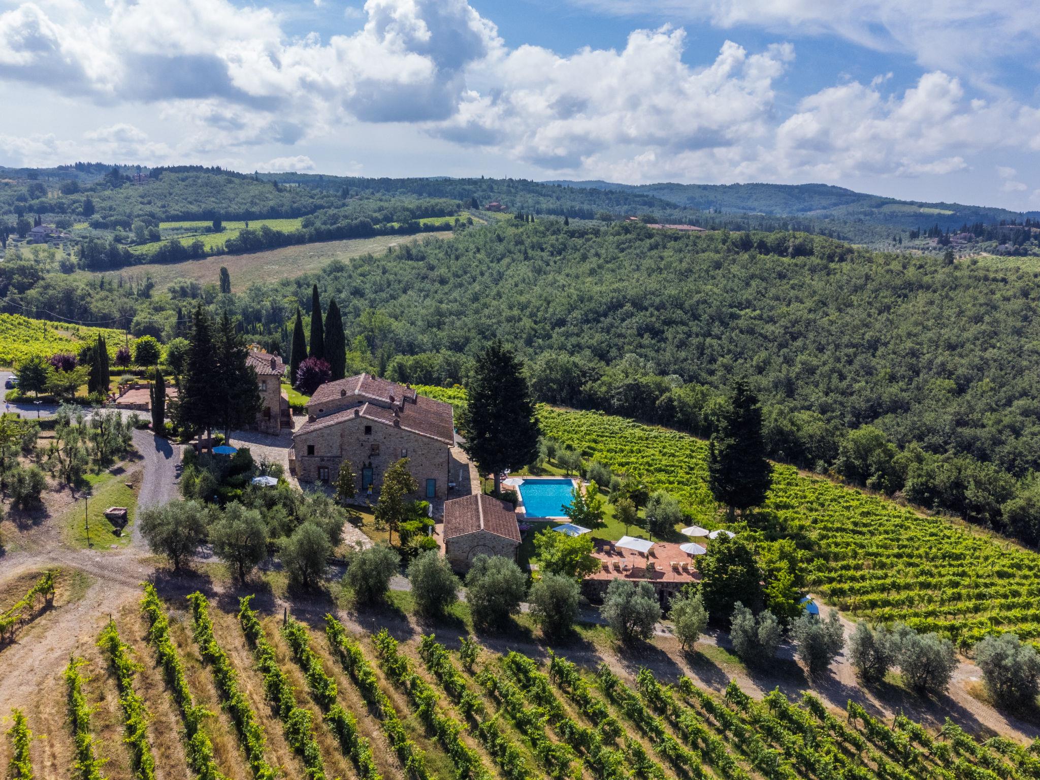 Beautiful country house "Agriturismo Campolungo", 2 storeys, built in 1700, renovated in 2005, surrounded by fields and vineyards. 6 apartments in the property. 1 km from the centre of San Donato in Poggio, 41 km from the centre of Firenze, 50 km from the centre of Siena, in a secluded, sunny position, 90 km from the sea, in the countryside. For shared use: property 6 m2 (fenced), well-kept garden flowers and trees, swimming pool fenced (15 x 8 m, depth 100 - 300 cm, seasonal availability: 01.Apr. - 31.Oct.). Outdoor shower, terrace, garden furniture, barbecue, pool maintenance by the owner/gardener. In the house: WiFi, washing machine (extra) (for shared use). 500 m long motor access to the grounds (via unmade road). Roofed, parking on the premises. Shop 1 km, grocery 1 km, supermarket 1 km, restaurant 1 km, bar 1 km, bakery 1 km, bus stop "San Donato" 1 km, railway station "Poggibonsi" 13 km, sandy beach "Cecina" 90 km. Golf course (18 hole) 35 km, tennis 4 km, walking paths from the house 100 m, fishing possibilities 4 km. Nearby attractions: San Gimignano 28 km, Greve in Chianti 20 km, Certaldo 29 km, Volterra 50 km. Please note: suitable for families, baby equipment (included). Local sale of farm products. The owner lives on the same property. All houses/apartments are individually designed/furnished.