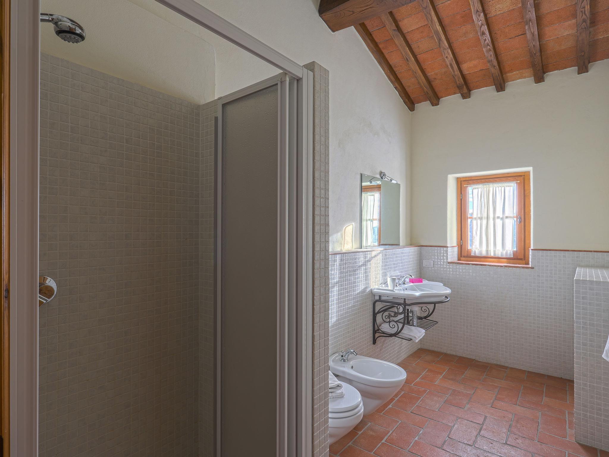 "Boccaccio", 3-room apartment 90 m2, on the ground floor. Object suitable for 4 adults. Spacious, fully renovated in 2005, rustic and cosy furnishings: living room with satellite TV (flat screen). 1 double bedroom. 1 room with 2 beds (80 cm). Kitchen-/living room (4 hot plates, oven, dishwasher, microwave, electric coffee machine) with dining table. Shower/bidet/WC. Heating, air-conditioning. Natural stone floors. Patio. Terrace furniture, barbecue. Very beautiful panoramic view of the countryside and Chianti. Facilities: safe, children's high chair, baby cot for up to 2 year olds, hair dryer. Internet (WiFi, free). Parking (roofed, 2 cars). Please note: suitable for families. Non-smokers only. Maximum 1 pet/ dog allowed. Private entrance. No mandatory extra charges to be paid on-site except for local tax. Bedlinen, towels, final cleaning and all energy costs are included. IT048054B5EBVWGG6K