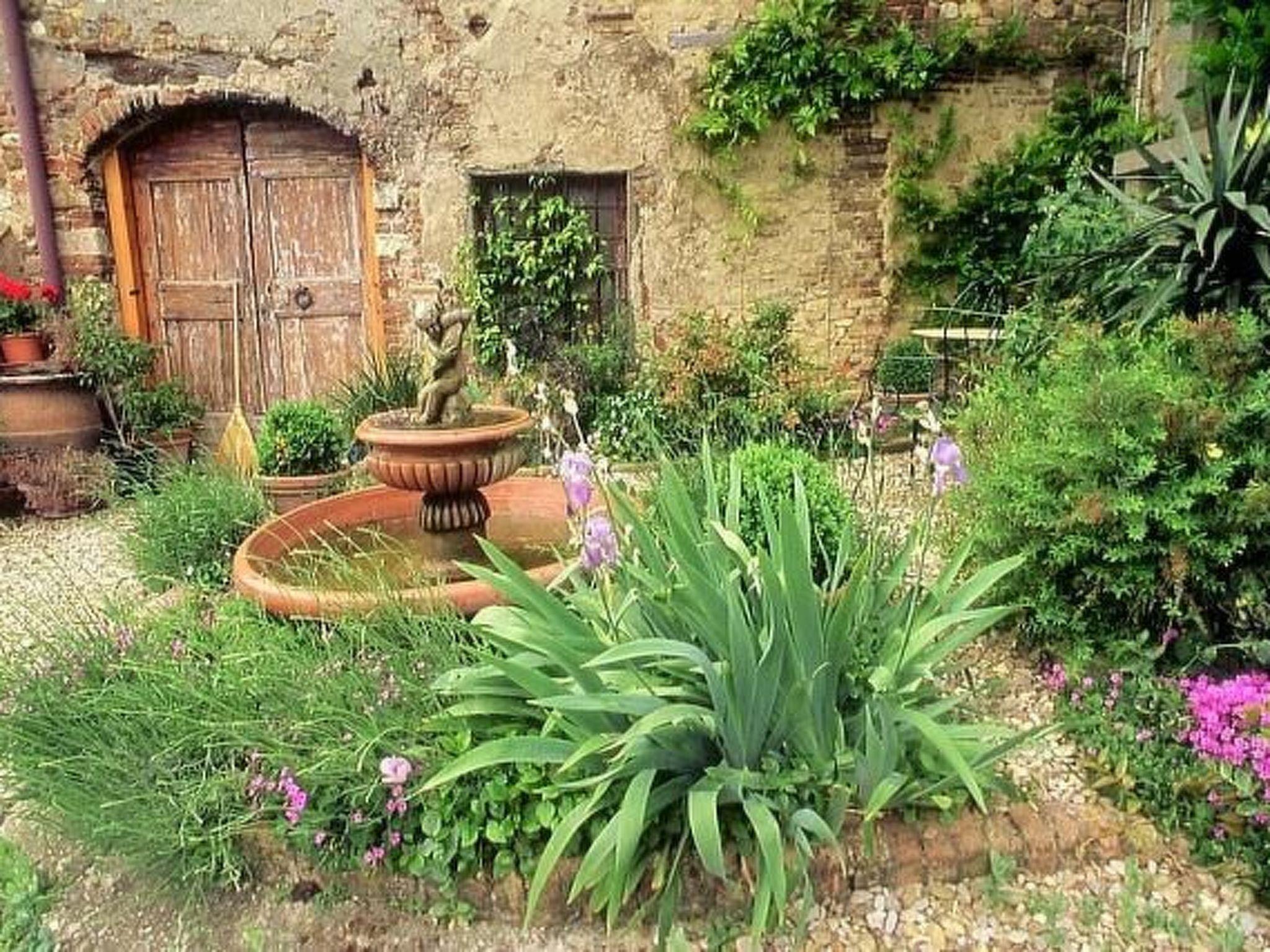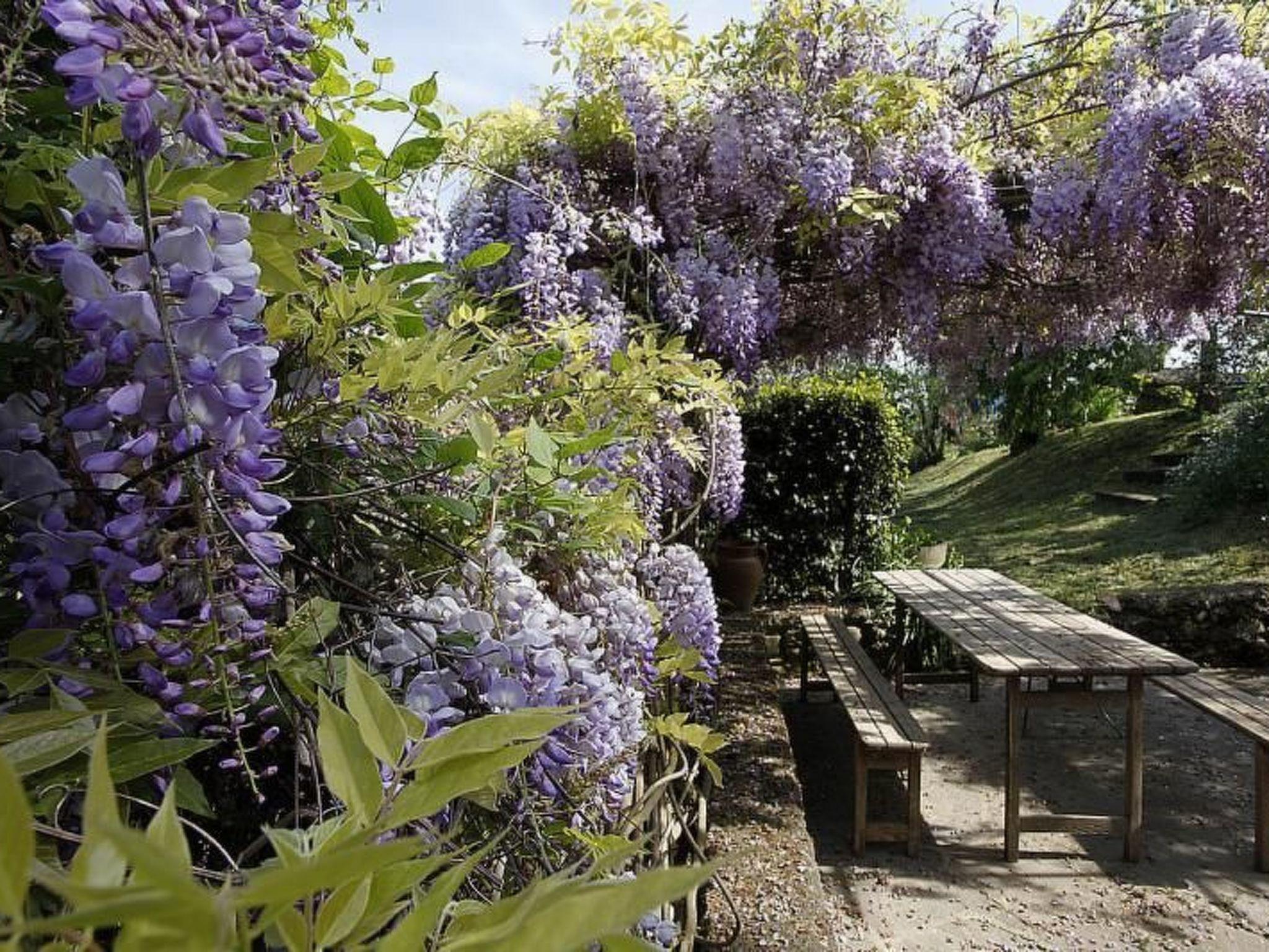 Outside there is a garden with an old well and is equipped with a large table, chairs and a barbecue.