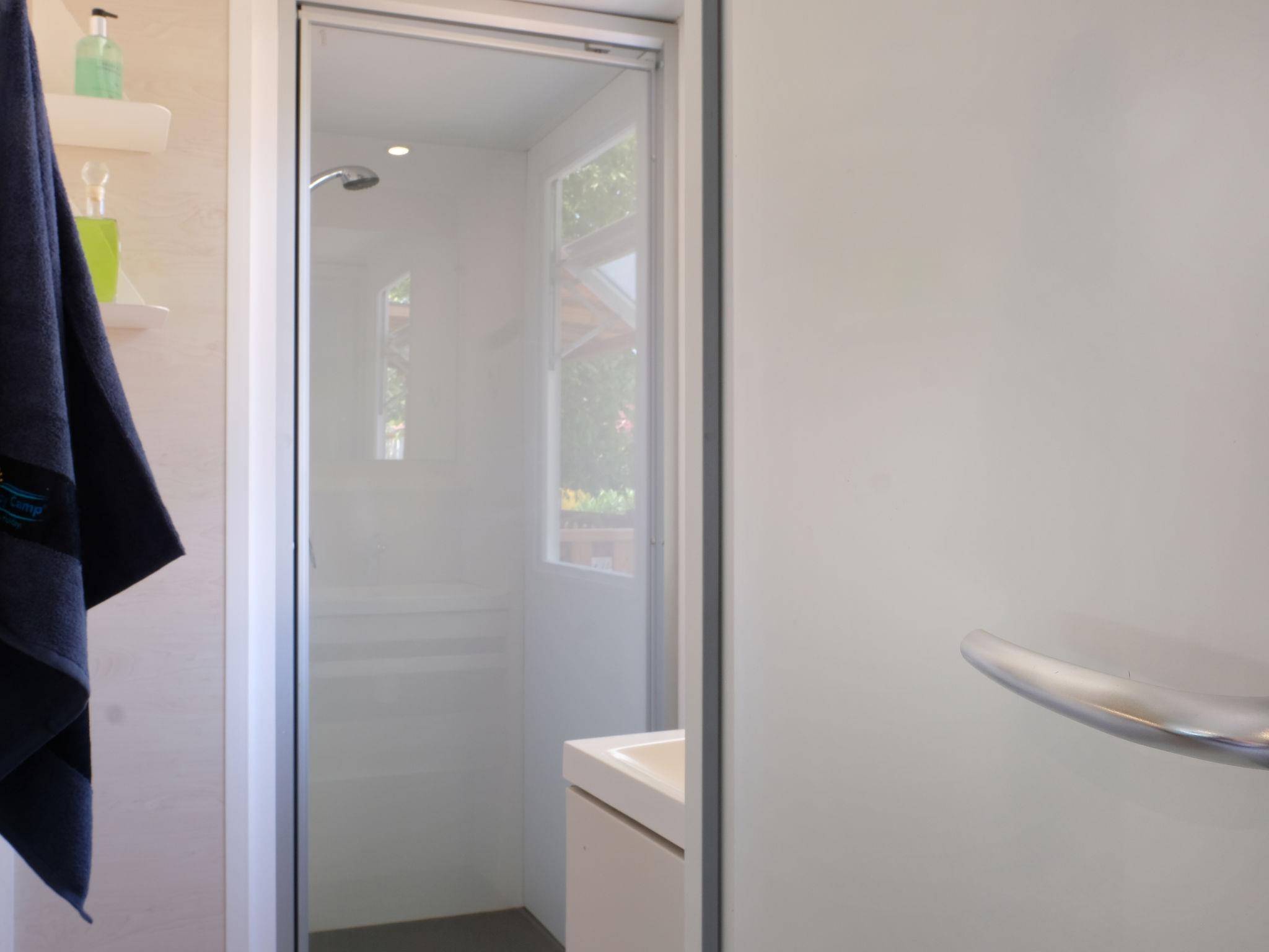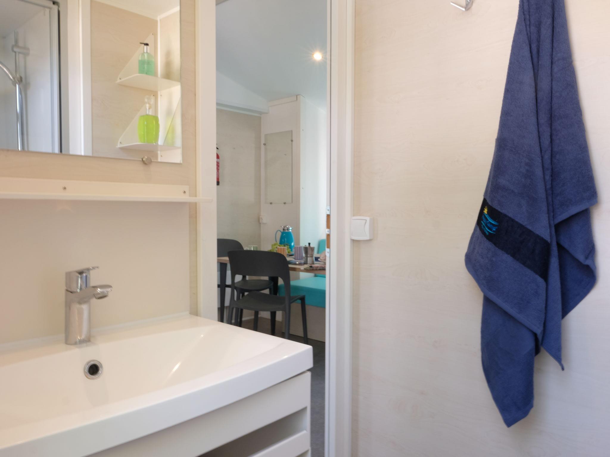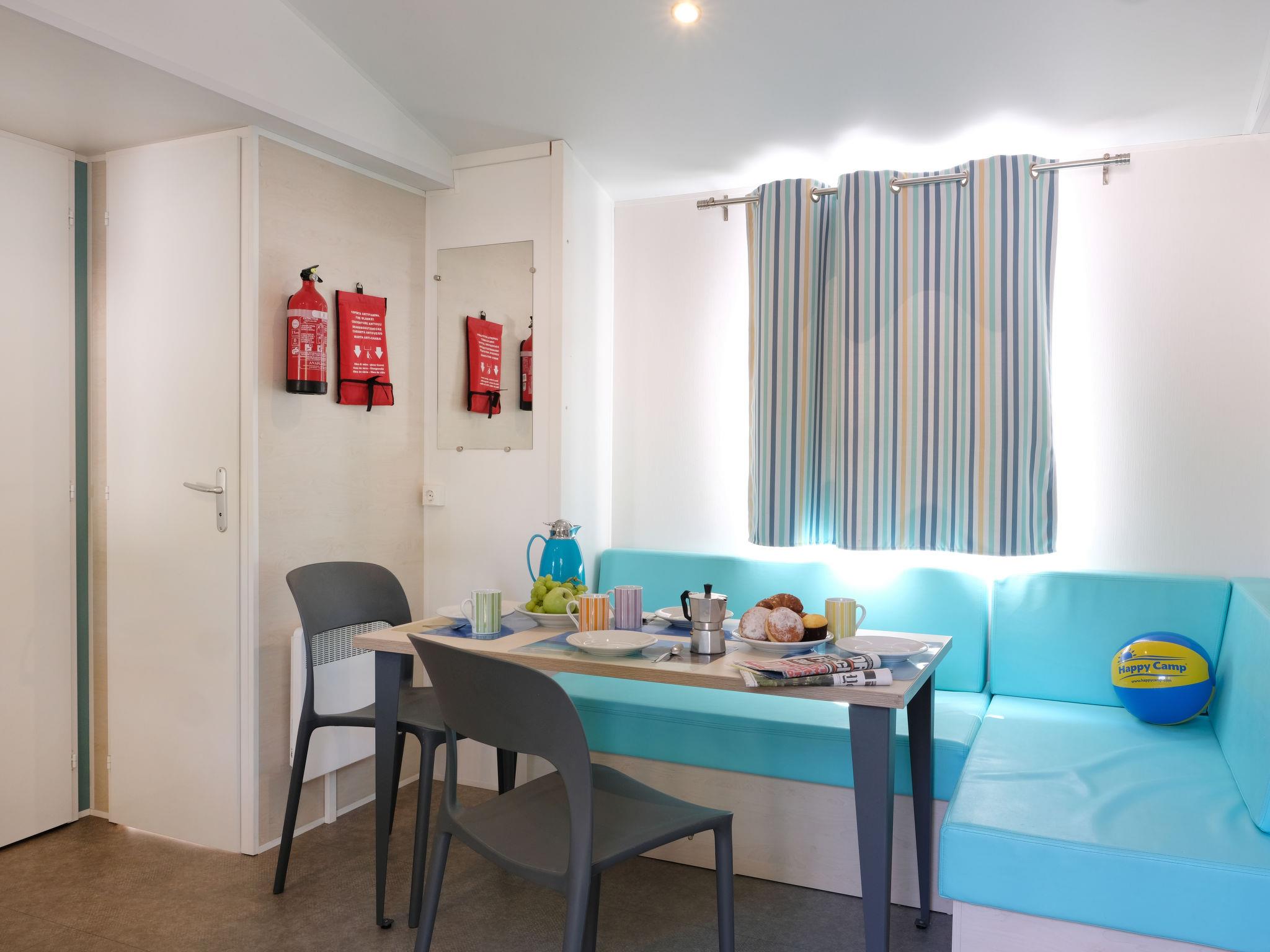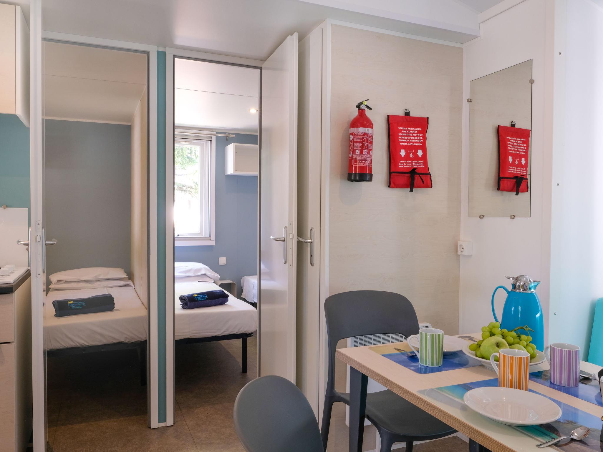 "Happy Premium", 4-room mobile home 30 m2. Comfortable furnishings: living/dining room with electric heating and air conditioning. 1 room with 1 french bed (140 cm, length 190 cm). 2 rooms, each room with 2 beds (70 cm, length 190 cm). Open kitchen (4 hot plates, microwave, freezer, electric coffee machine). Shower/WC. Air-conditioning (extra). Terrace partly roofed. Terrace furniture, barbecue (portable), deck chairs (2). Facilities: mosquito net. Parking (1 car). Please note: non-smokers only. IT017171B1LCE2B6U8