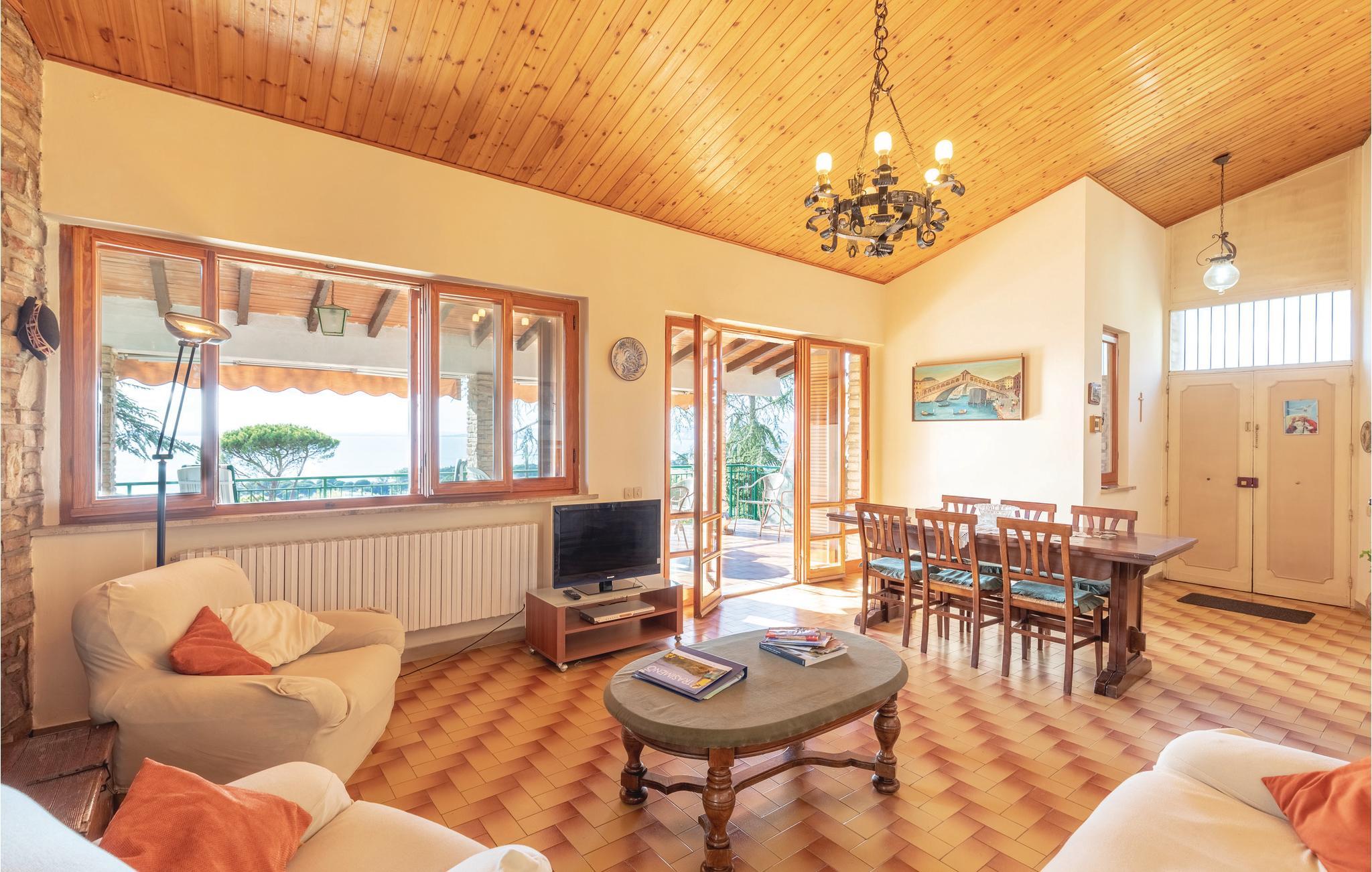 Skønt og lyst feriehus 3 km fra San Feliciano, med udsigt over søen Trasimeno. Huset har to niveauer: I stueetagen er der en stor stue med panoramaterrasse, et stort køkken, et dobbeltværelse, et soveværelse med to senge, som kan laves til dobbeltseng, endnu et soveværelse med to senge og et badeværelse. På nederste etage er der et dobbeltværelse med badeværelse og bruser. Fra dette værelse har I adgang til verandaen med udsigt over søen. De to etager er forbundet med både intern og ekstern trappe. I kan nyde en aperitif på terrassen foran opholdsstuen, mens I nyder udsigten over søen Trasimeno eller tage jeres måltider udenfor på den store terrasse med grill, bord og stole. Huset er omgivet af en smuk have, hvor I kan slappe af med en god bog eller nyde solens varme stråler. Huset er ideelt for familier og vennegrupper, der gerne vil tilbringe deres ferie sammen. Stranden ved søen Trasimeno er 700 m, og San Feliciano ligger kun 3 km væk. Herfra kan I nå Isola Polvese og Maggiore. Ikke langt fra huset ligger en cykelsti, som fører ned til søen. Snyd ikke jer selv for at opleve de traditionelle festligheder, musikfestivaler, det italienske køkken samt de udsøgte vine og olivenolier i regionen. Der er 4 gratis cykler i huset.