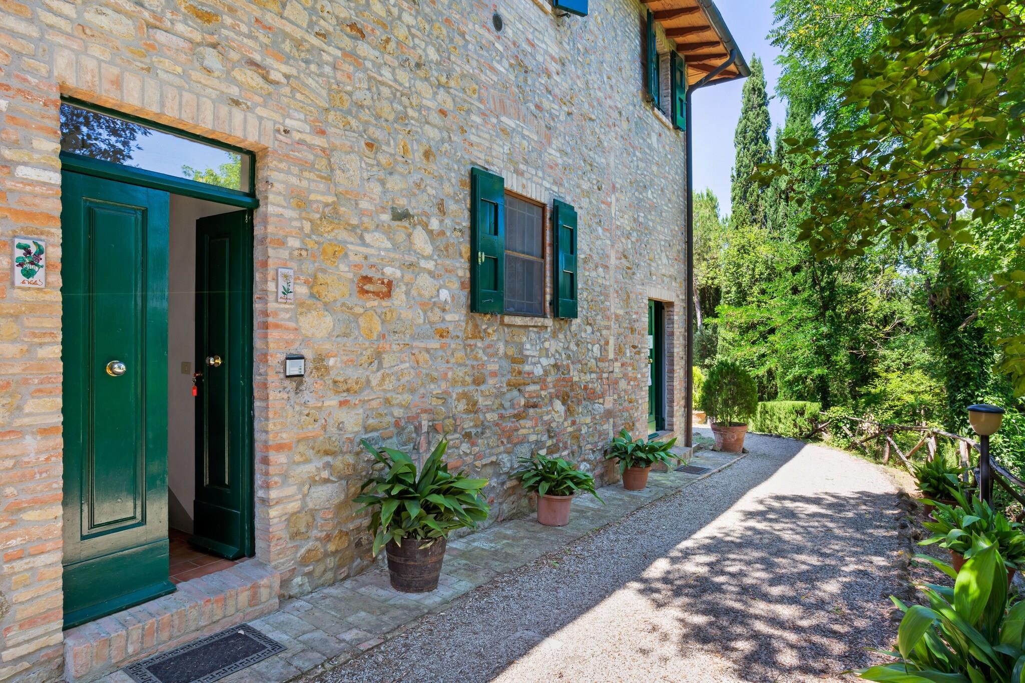 Denne kæledyrsvenlige bondegård i Località Sant'Andrea byder velkommen til op til 10 gæster og tilbyder et hyggeligt og autentisk toscansk ophold med gratis trådløs internetadgang. Stueetagen indeholder et køkken med alt nødvendigt og en stue/spisestue med en dobbelt sovesofa og satellit-tv. Et soveværelse med dobbeltseng og et komplet badeværelse er også placeret her. På første sal finder du endnu et rummeligt køkken med pejs, yderligere to soveværelser (et dobbeltværelse, et med køjesenge), en anden stue med en sovesofa og to badeværelser, hvilket gør det ideelt til store familier eller grupper. Ejendommen har både privat have og adgang til en smukt anlagt 3000 m² fælles have. Gæsterne kan slappe af ved den store 17×6 m fælles swimmingpool (åben maj-oktober) omgivet af natur. En fælles vaskemaskine tilføjer bekvemmelighed, mens udendørsmøbler inviterer til udendørs spisning og aftenafslapning under stjernerne. Beliggende kun 4 km fra middelalderbyen San Gimignano, berømt for sine ikoniske tårne, UNESCO-status og freskoerne i Collegiate Church, er dette bondehus en port til Toscanas rige historie. Tag på naturskønne dagsture til Siena (30 km), Volterra (33 km) eller Firenze (58 km).