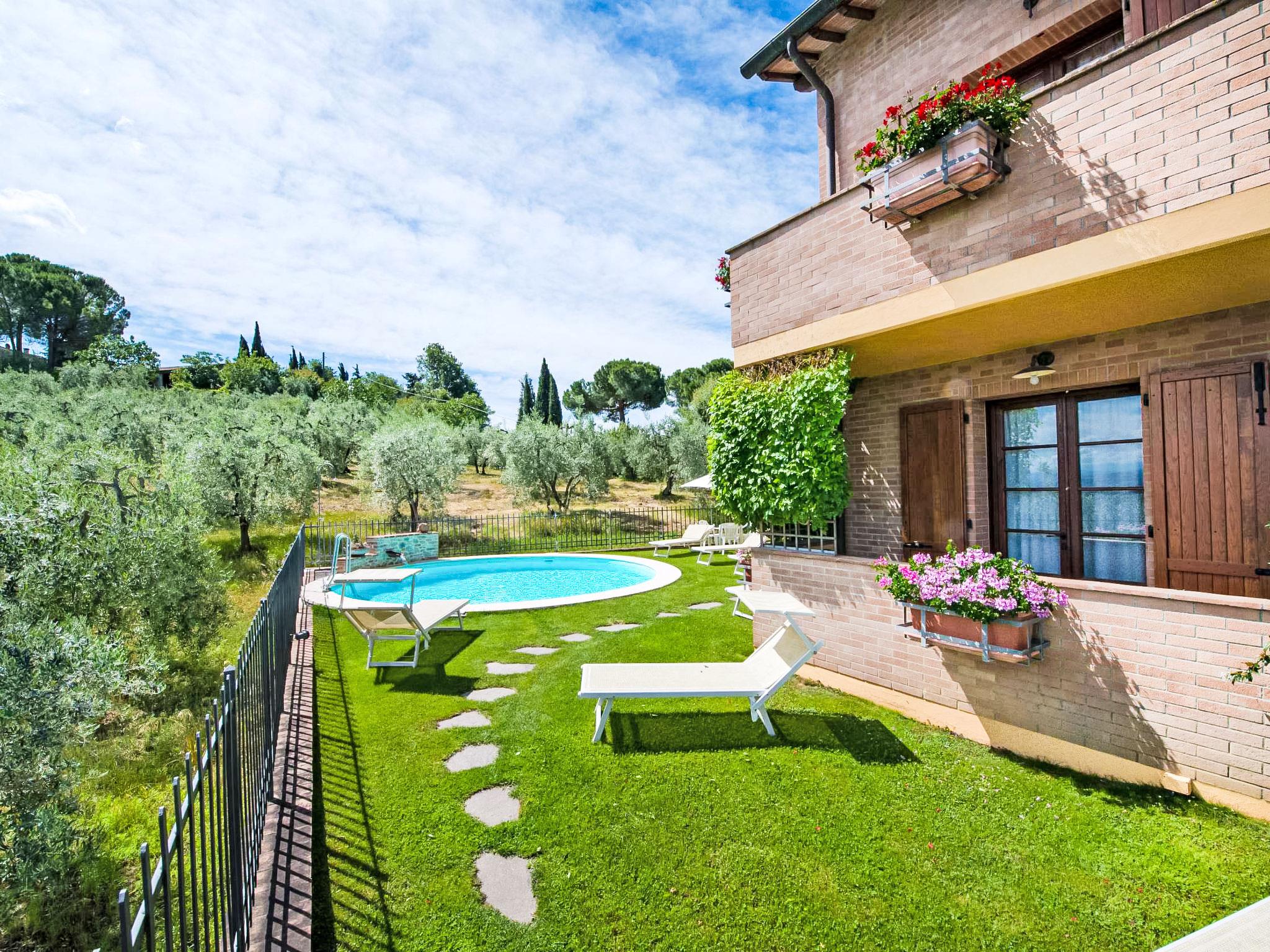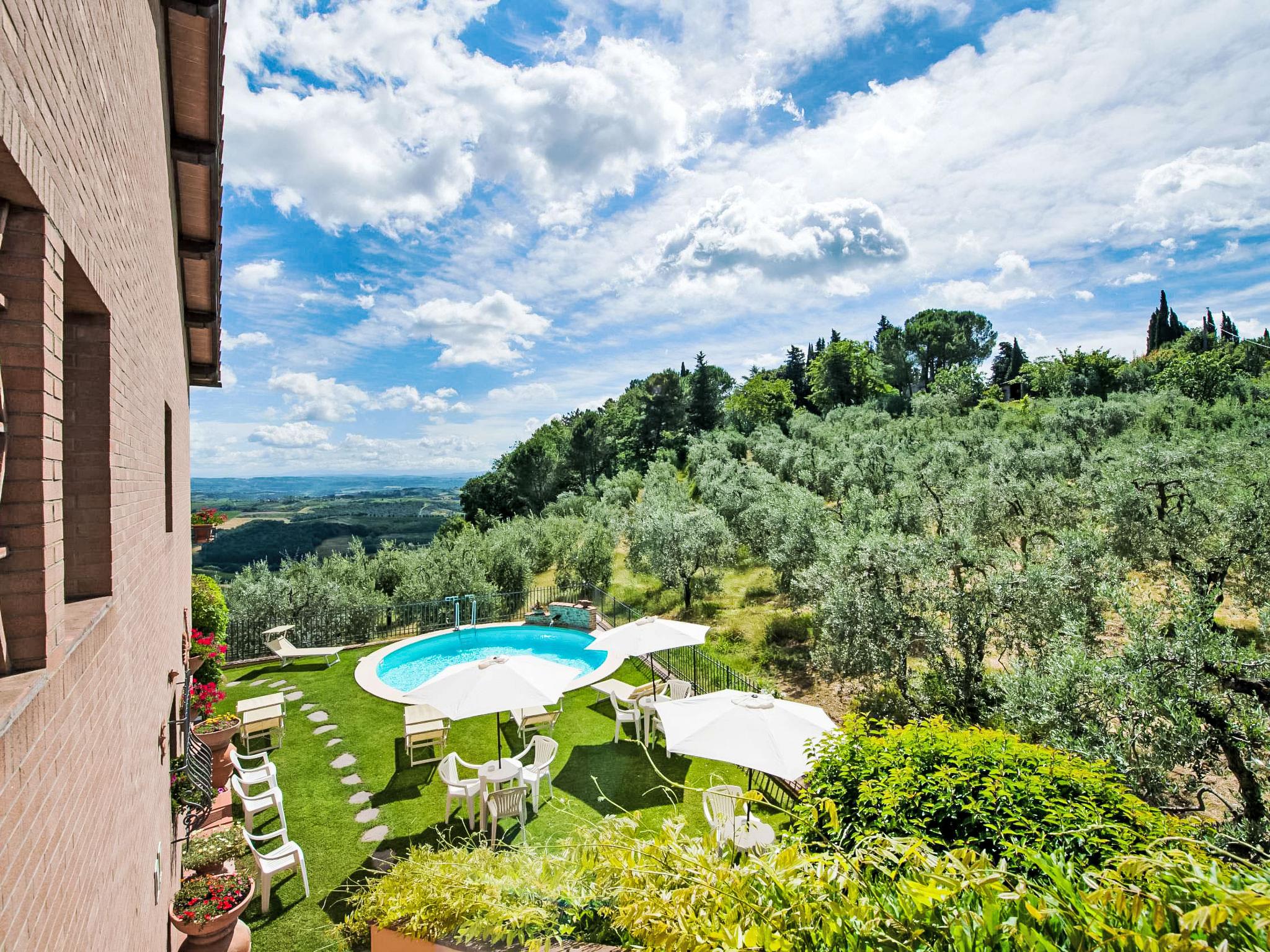 Residence "Lari", 2 storeys, built in 2000. 10 apartments in the property. 5 km from the centre of San Gimignano, 30 km from the centre of Volterra, 52 km from the centre of Siena. For shared use: swimming pool round (5 m diameter, seasonal availability: 24.May. - 27.Sep.). Outdoor shower, garden furniture. In the house: WiFi, washing machine (for shared use, extra). Communal covered parking. Shop 5 km, grocery 5 km, restaurant 100 m, bus stop 250 m. Nearby attractions: Certaldo 8 km, Colle Val d'Elsa 20 km, Barberino Val D'elsa 22 km, Badia a Passignano 39 km, San Casciano in Val di Pesa 40 km, Greve in Chianti 50 km. Please note: Additional accommodations can be booked. A total of 10 apartments.