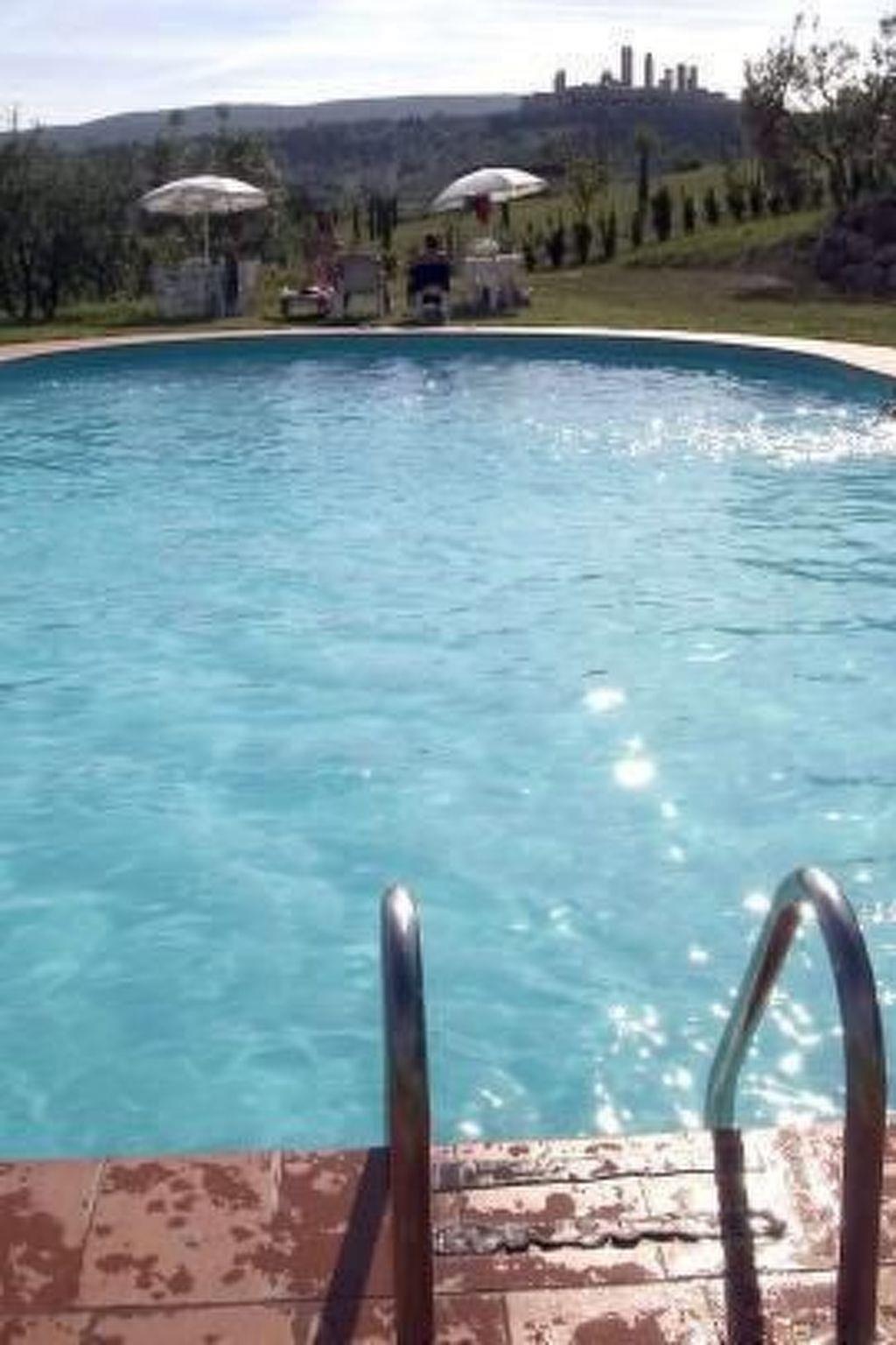 Beautiful apartment situated in an ancient hamlet (composed of totally 13 apartments) on the ground floor of a two-storied farmhouse with an enchanting view on the heart of the Tuscan Countryside, 3 Km from the centre of San Gimignano, Worlwide Heritage Town of UNESCO.It is a typical example of old Tuscan country houses, with floor made with terracotta tiles, and wooden beams on the ceiling.It also has a wide farmyard, still with floor done in terracotta files, with table, chairs and beach umbrella; a shared swimming pool (16x6 mt - depth 1,40-2,00 mt) of joint ownership (in 2011 open from 15 May until 15 October), with an enchanting view on the San Gimignano Towers; a big private garden, a communal park with pathways through olive and fruit trees, and parking sites.Distances:San Gimignano at 3 km with all kind of shops, tennis courts, restaurants etc;, Golf course - 18 holes - in Castelfalfi. Siena 38 kmPisa 77 km, Firenze 55 km, Vinci km 45 – Birthplace of LeonardoCertaldo 12 Km - Medieval Hamlet (birthplace of Boccaccio)Volterra 30 km, Cecina - sea w/beach km 74