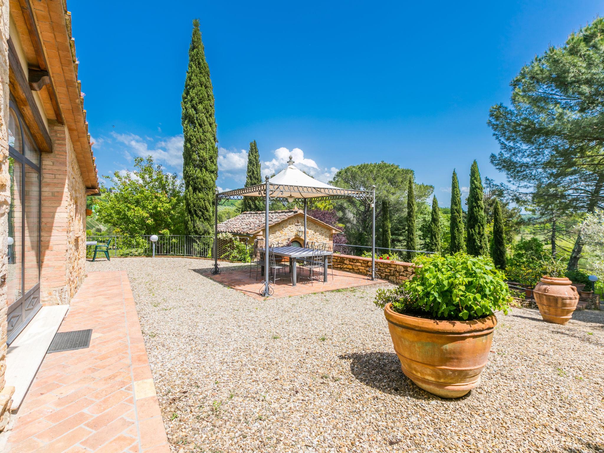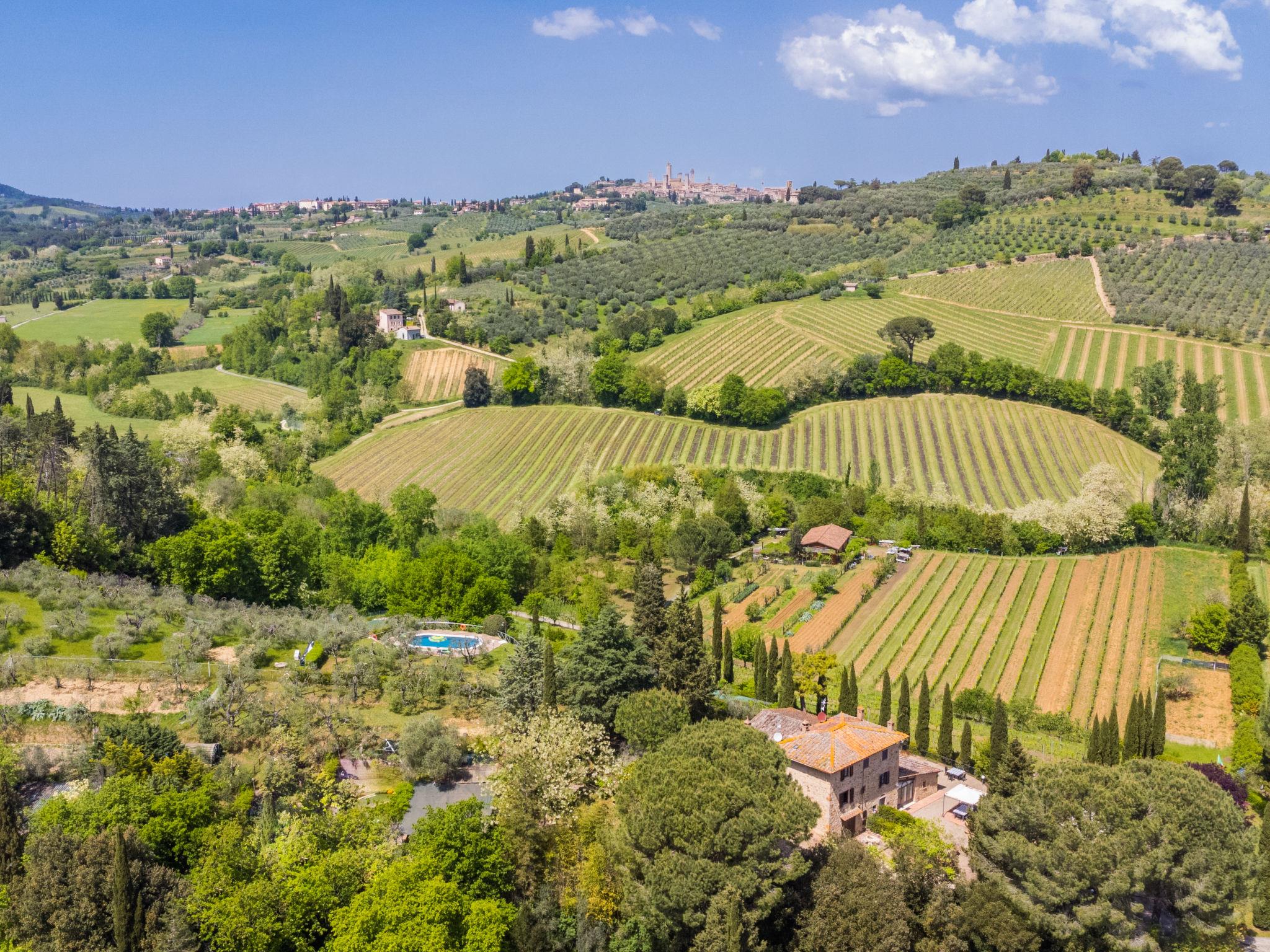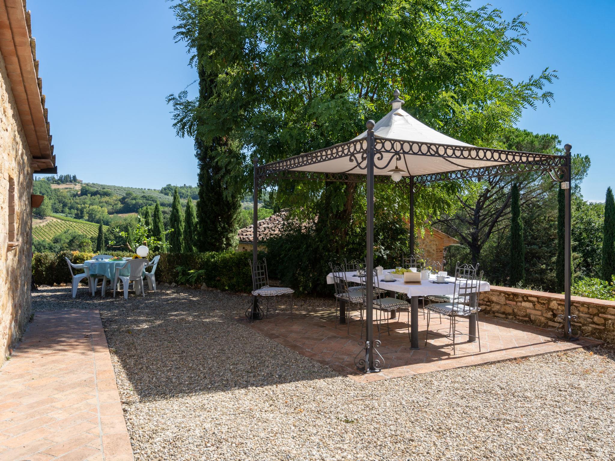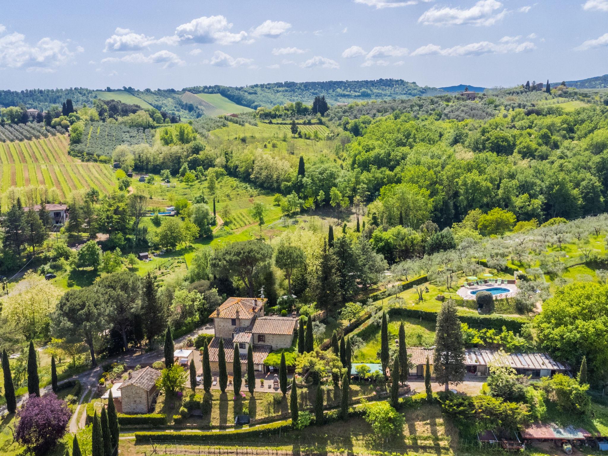 Beautiful, cosy, rustic country house "Il Sangiovese", semi-detached, surrounded by meadows and vineyards. 2.5 km from the centre of San Gimignano, 30 km from the centre of Volterra, 40 km from the centre of Siena, in a sunny position on a slope. For shared use: beautiful, well-kept terraced garden with flowers and trees. Private: swimming pool (9 x 4 m, seasonal availability: 01.May. - 30.Sep.). Pool maintenance by the owner/gardener. Supermarket 1.7 km, restaurant 2.3 km, bus stop 1.5 km, railway station "Poggibonsi" 20 km, sandy beach "Castiglioncello" 75 km. Golf course (27 hole) 30 km. Nearby attractions: Siena 55 km, Volterra 35 km, Firenze 65 km. Please note: car recommended. Local sale of farm products. Residence with electric gates. The owner lives on the same property.