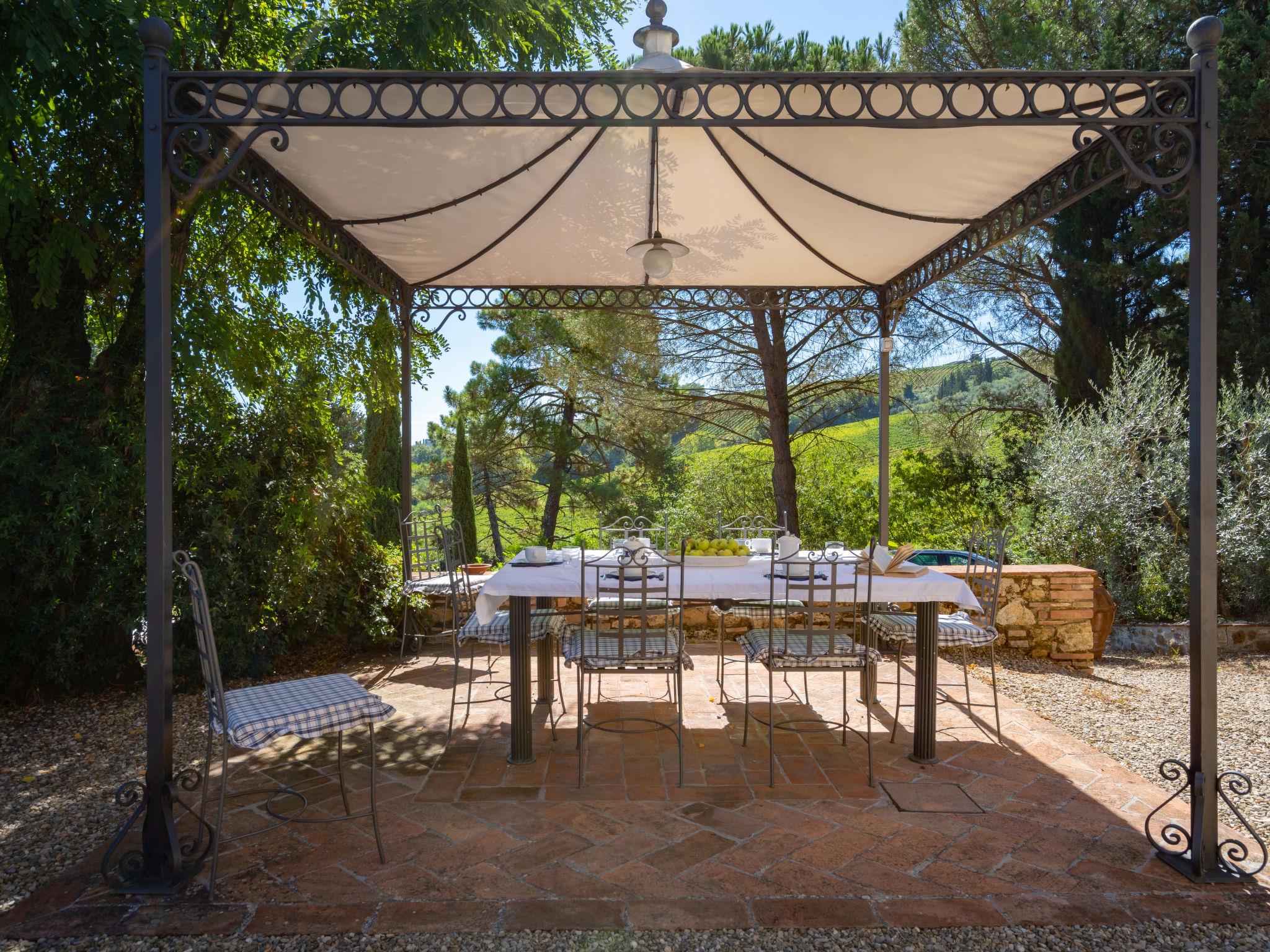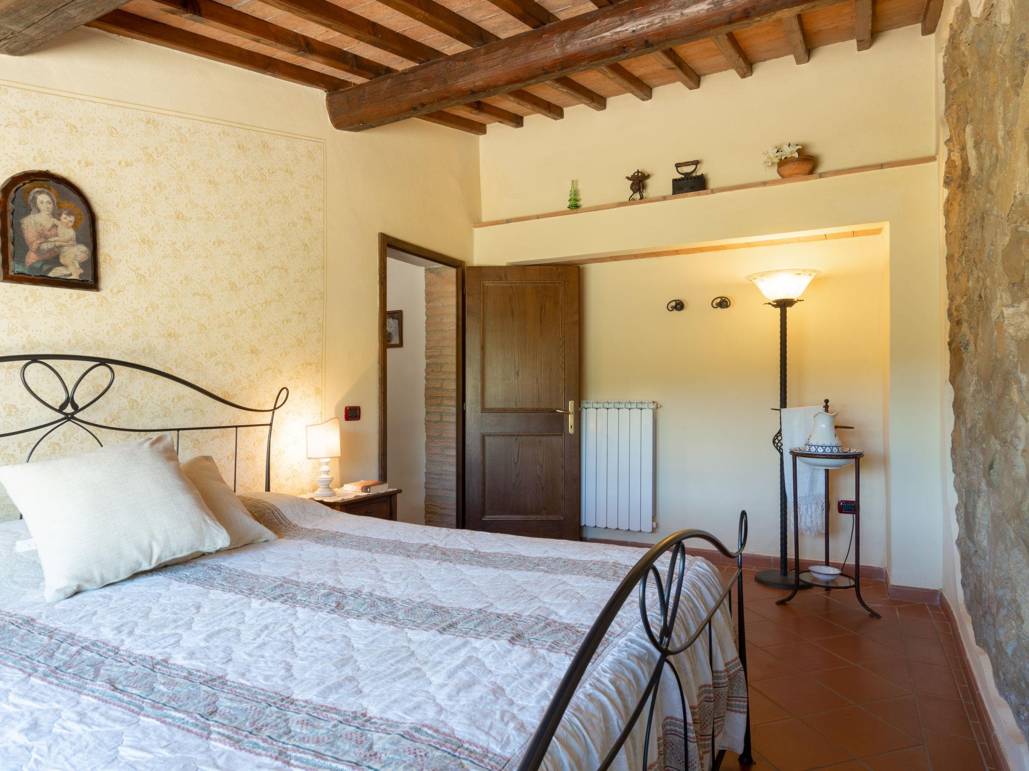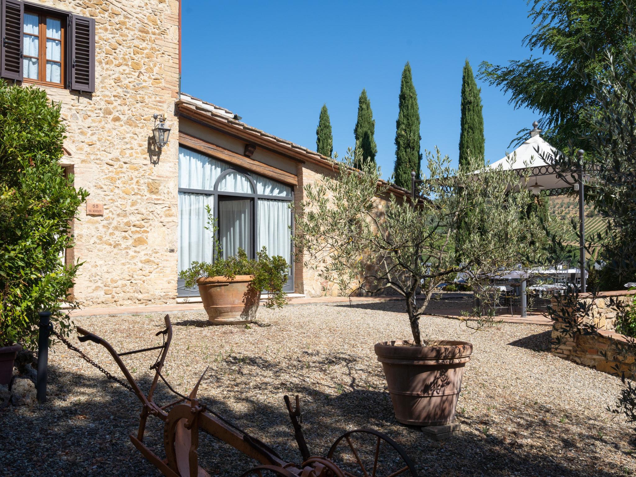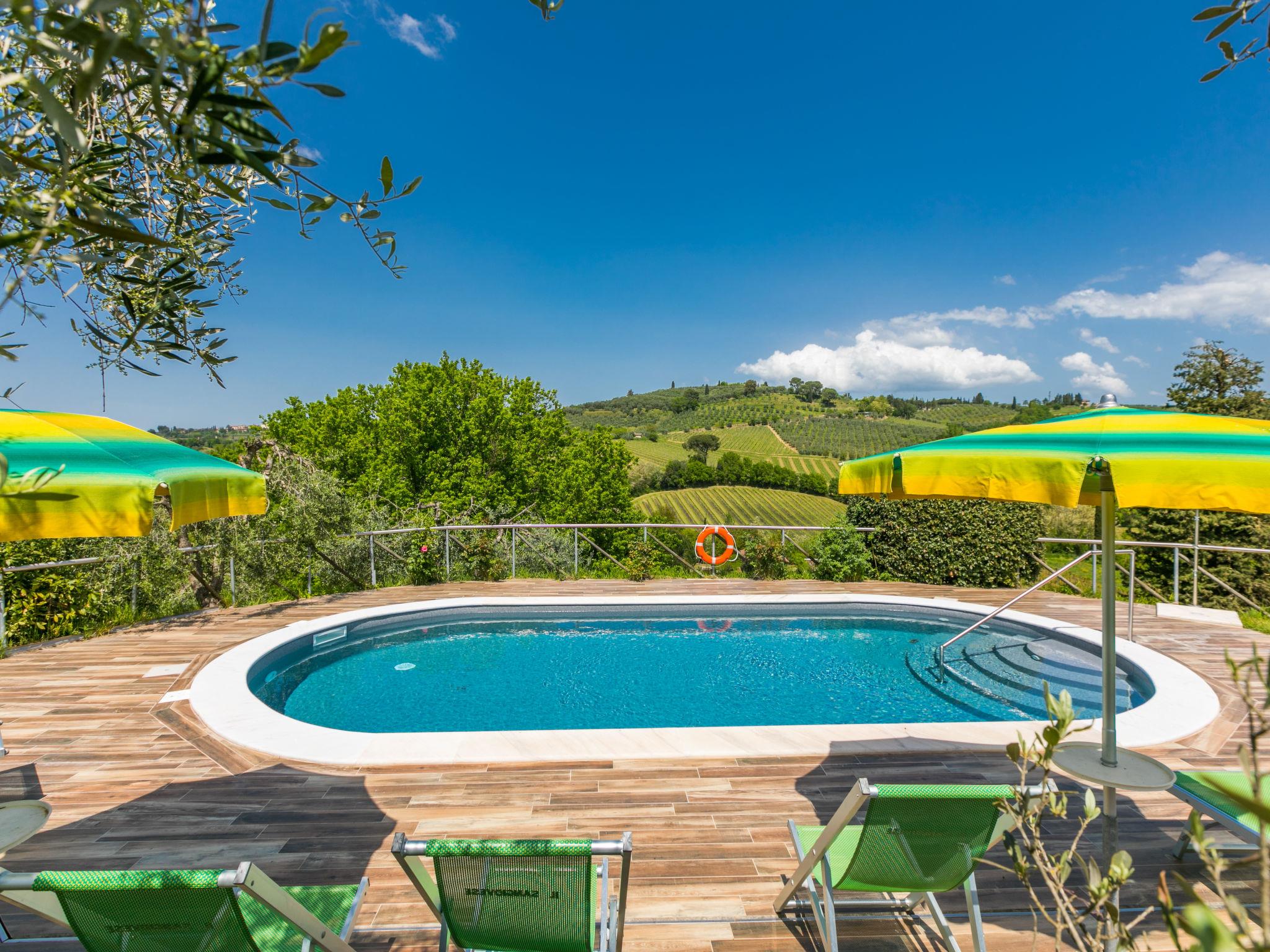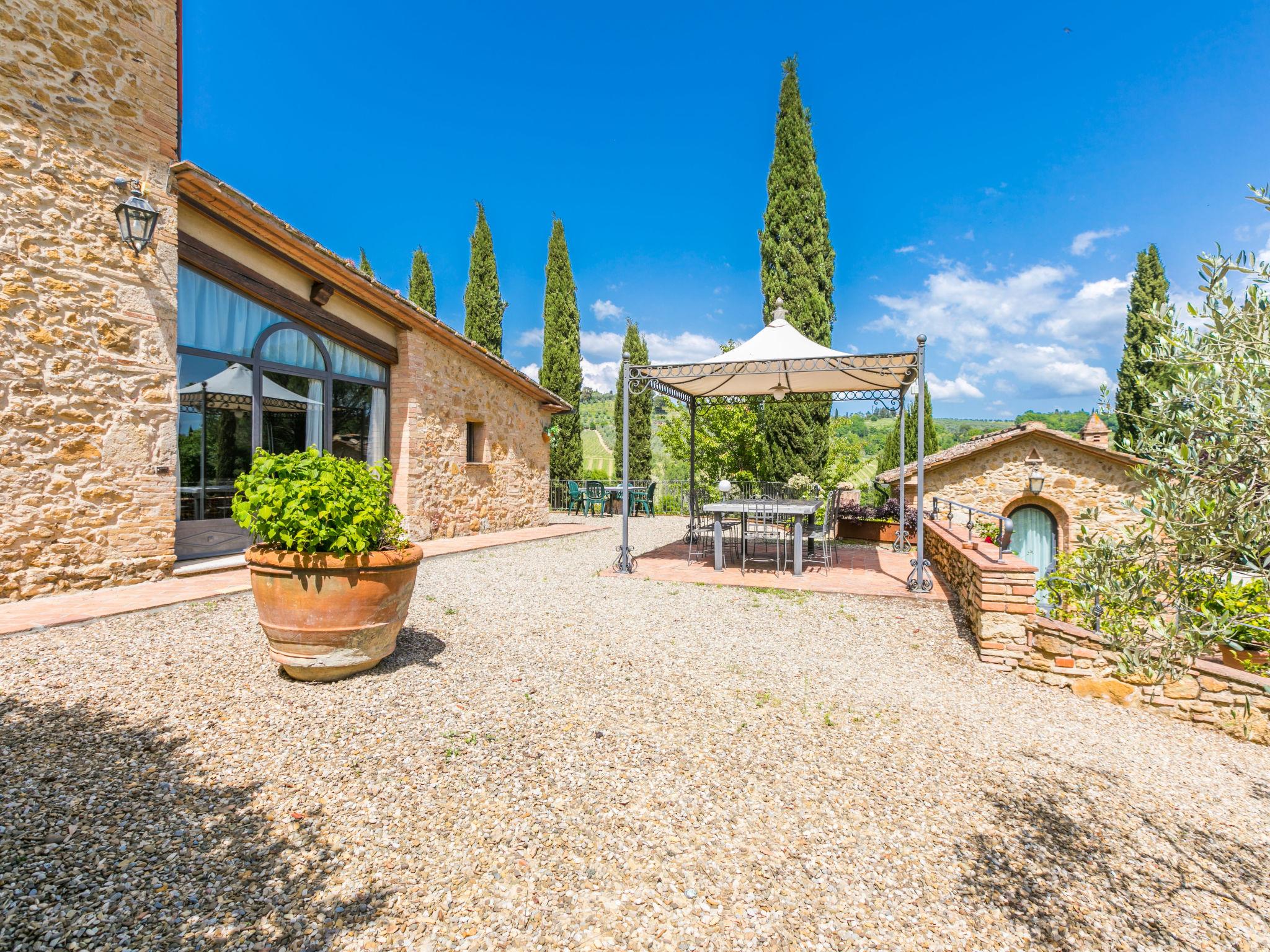 Beautiful, cosy, rustic country house "Il Sangiovese", semi-detached, surrounded by meadows and vineyards. 2.5 km from the centre of San Gimignano, 30 km from the centre of Volterra, 40 km from the centre of Siena, in a sunny position on a slope. For shared use: beautiful, well-kept terraced garden with flowers and trees. Private: swimming pool (9 x 4 m, seasonal availability: 01.May. - 30.Sep.). Pool maintenance by the owner/gardener. Supermarket 1.7 km, restaurant 2.3 km, bus stop 1.5 km, railway station "Poggibonsi" 20 km, sandy beach "Castiglioncello" 75 km. Golf course (27 hole) 30 km. Nearby attractions: Siena 55 km, Volterra 35 km, Firenze 65 km. Please note: car recommended. Local sale of farm products. Residence with electric gates. The owner lives on the same property.