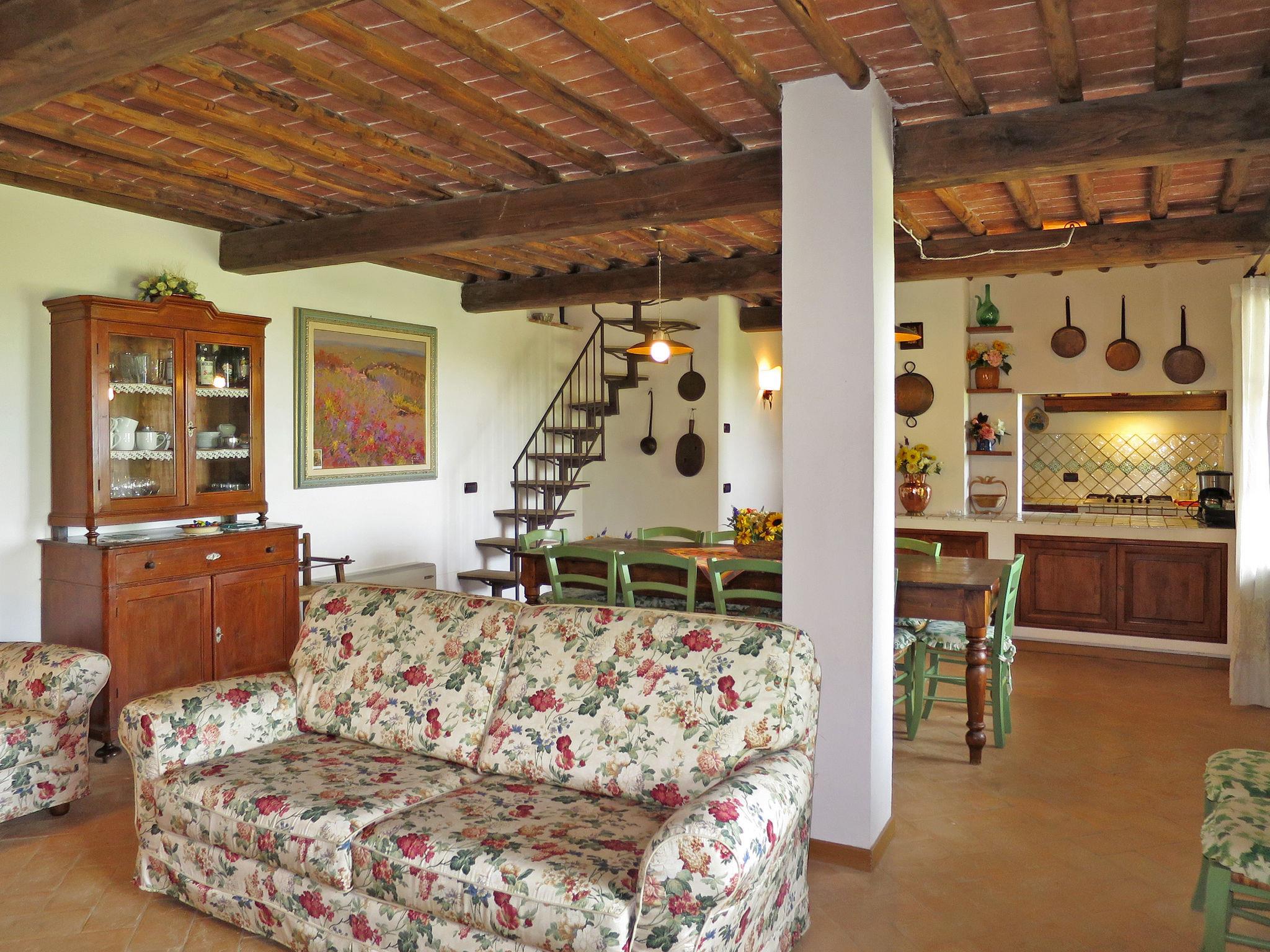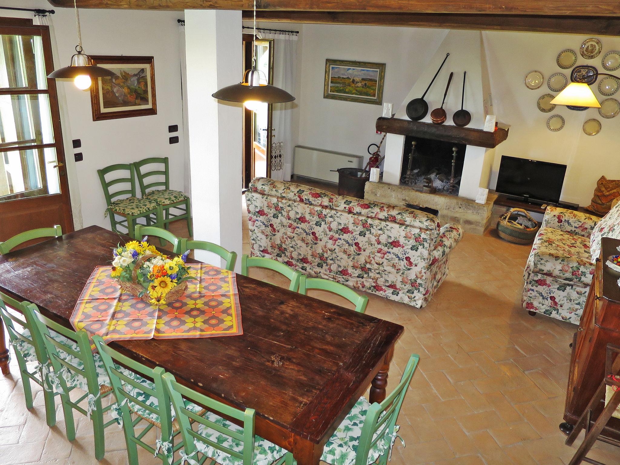 "Le Fonti di Santa Lucia", 6-room house 190 m2 on 2 levels. Object suitable for 10 adults. Beautiful and tasteful furnishings: living/dining room with open-hearth fireplace, dining table and satellite TV. Exit to the terrace. 1 room with 1 double bed and shower/bidet/WC. Kitchenette (oven, dishwasher, 5 gas rings, toaster, kettle, freezer, electric coffee machine). Shower/bidet/WC. Upper floor: (spiral staircase), 2 rooms, each room with 1 double bed and shower/bidet/WC. 1 room with 1 double bed and shower/bidet/WC. Exit to the garden, to the swimming pool. 1 large room with 1 double bed, kitchen corner and shower/bidet/WC. Exit to the terrace. Gas heating, air-conditioning (extra). Comfortable furnishings in the country house style. Terrace roofed, large terrace. Terrace furniture, barbecue, deck chairs. Marvellous panoramic view of the countryside and Chianti, San Gimignano. Facilities: washing machine, children's high chair, baby cot. Internet (WiFi, free). Parking (roofed, 4 cars). Please note: non-smokers only. Maximum 2 pets/ dogs allowed. No mandatory extra charges to be paid on-site except for local tax. IT052028B5A3TGSM6P