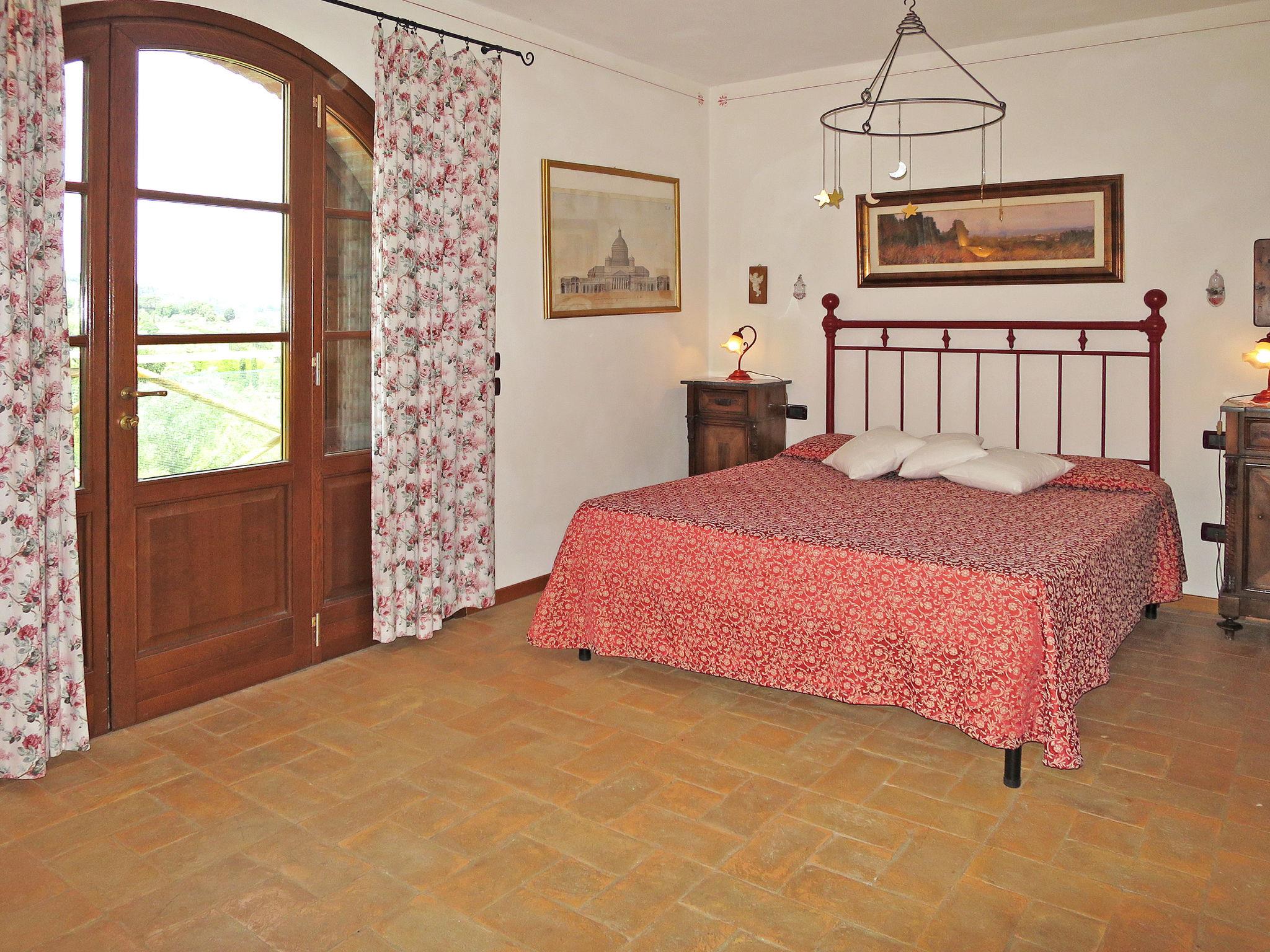 Very beautiful villa "Le Fonti di Santa Lucia", detached, surrounded by meadows and vineyards. In the district of Santa Lucia.(300 m) 2.5 km from the centre of San Gimignano, 10 km from the centre of Poggibonsi, outside the resort, 47 km from the centre of Siena. In a secluded, elevated position on a slope, 68 km from the sea, in the countryside. Private: garden 3'000 m2 (fenced) with flowers and trees, meadow, natural pond, swimming pool (14 x 6 m, depth 140 - 190 cm, seasonal availability: 25.Apr. - 10.Oct.). Outdoor shower, terrace, pool maintenance by the owner/gardener. Linen change weekly. 300 m long steep motor access (via unmade road). Roofed, parking (for 4 cars) at the house. Shop 2.5 km, supermarket 2.5 km, bus stop 2.5 km, railway station "Poggibonsi" 10 km, sandy beach "Cecina Mare" 68 km, indoor swimming pool 10 km.