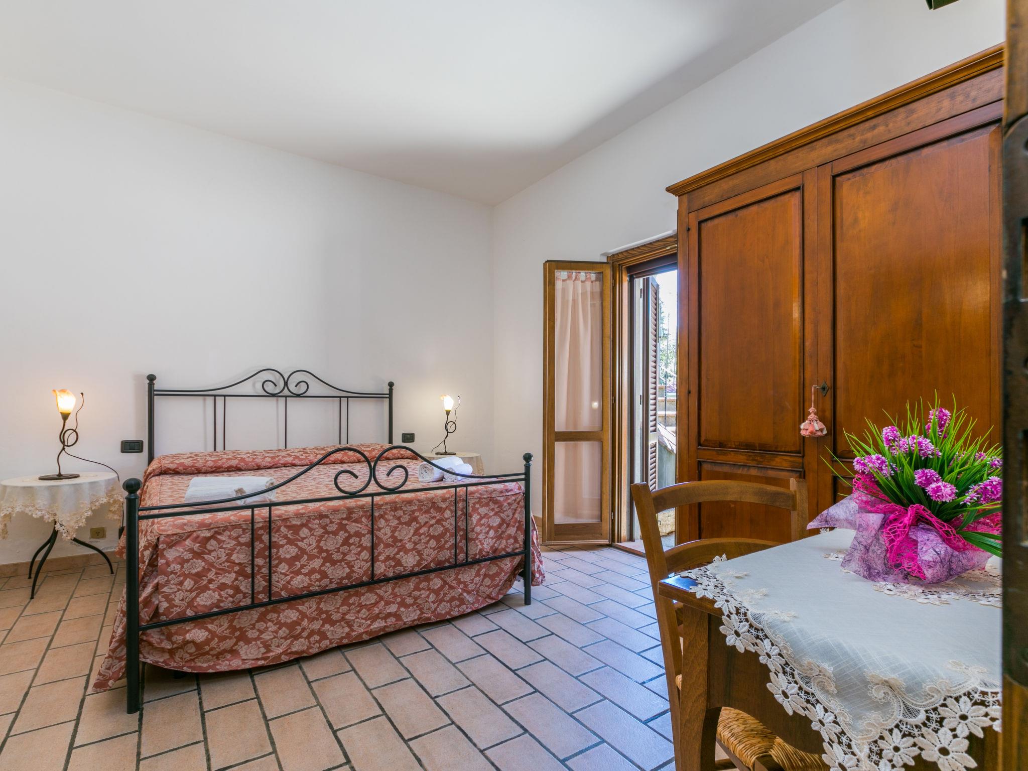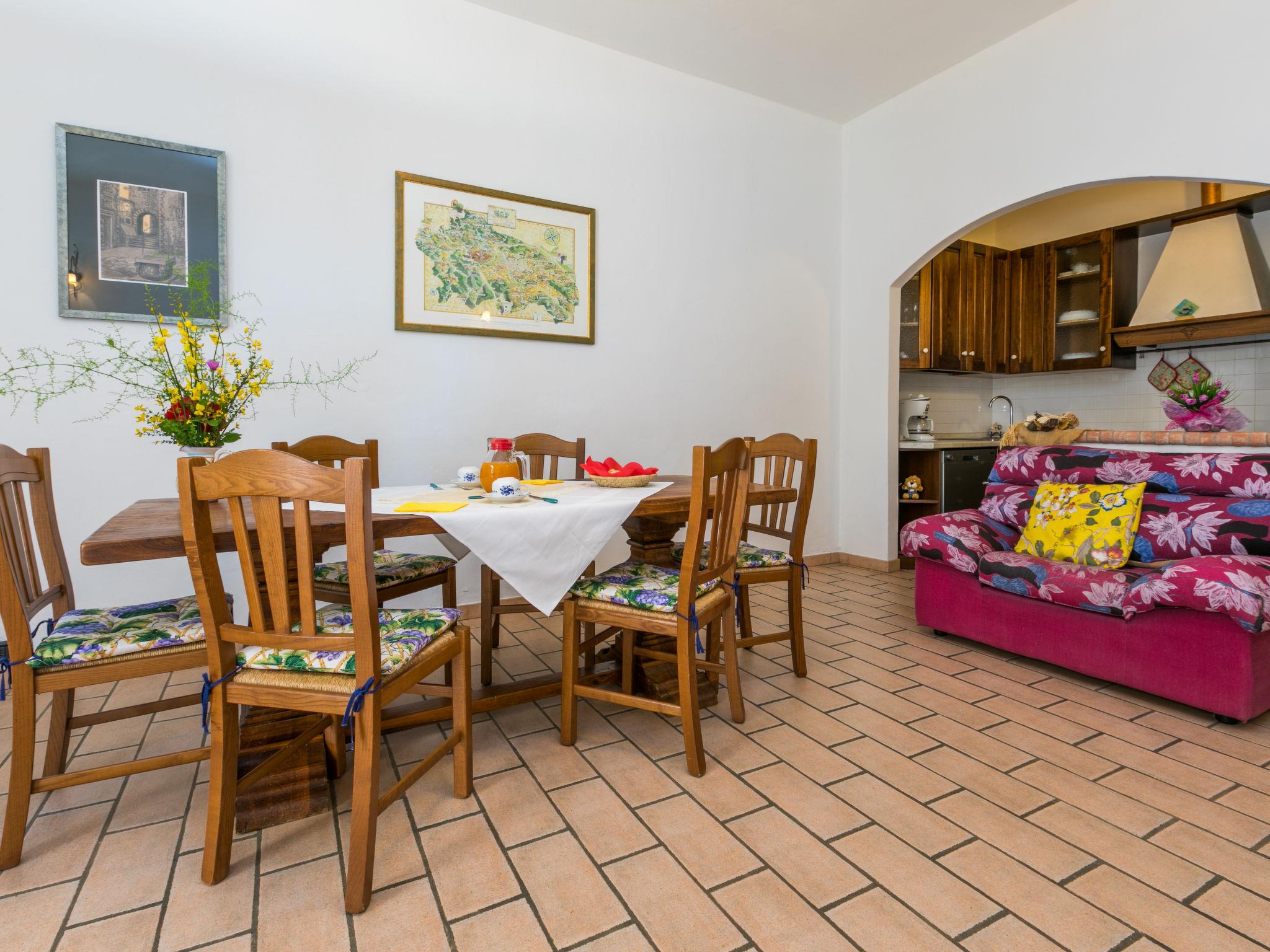 3-room apartment 80 m2, on the ground floor. Object suitable for 4 adults + 1 child. Rustic and cosy furnishings: living/dining room with dining table. Exit to the terrace. 1 room with 1 french bed (160 cm), shower/bidet/WC and satellite TV. 1 room with 1 bed and 1 french bed (160 cm), shower/bidet/WC and satellite TV. Exit to the garden. Small, open kitchen (oven, dishwasher, 5 gas rings, toaster, electric coffee machine, pizza oven). Gas heating. Comfortable furnishings in the country house style. Terrace 10 m2, roofed, garden 200 m2, porch. Terrace furniture, barbecue, deck chairs (4). Facilities: baby cot for up to 2 year olds. Parking (2 cars) at the house. Please note: private entrance. The pool mentioned in the description is for private use. The third bed in one of the bedrooms can only be occupied by children under the age of 12. No mandatory extra charges to be paid on-site except for local tax. IT052028B5JPECGNZX