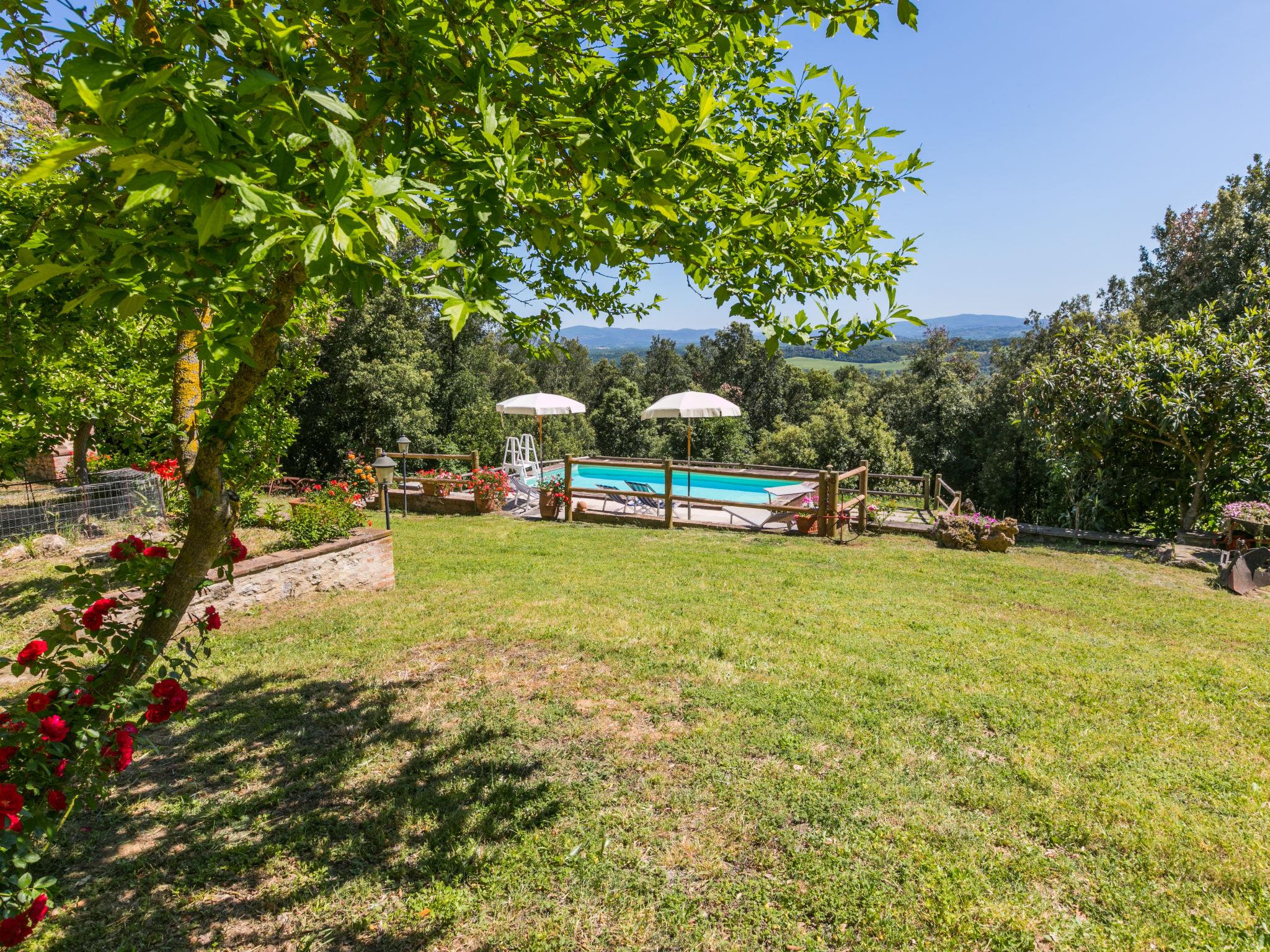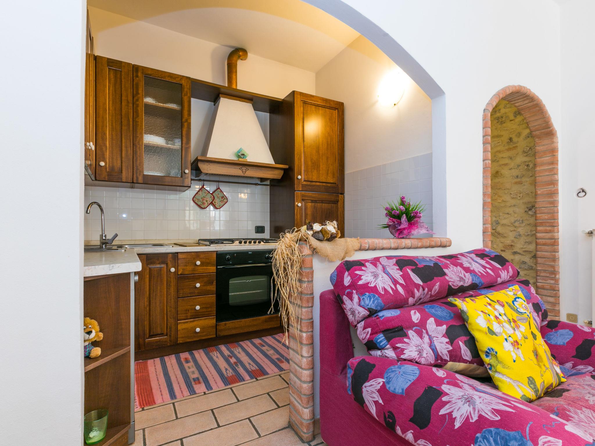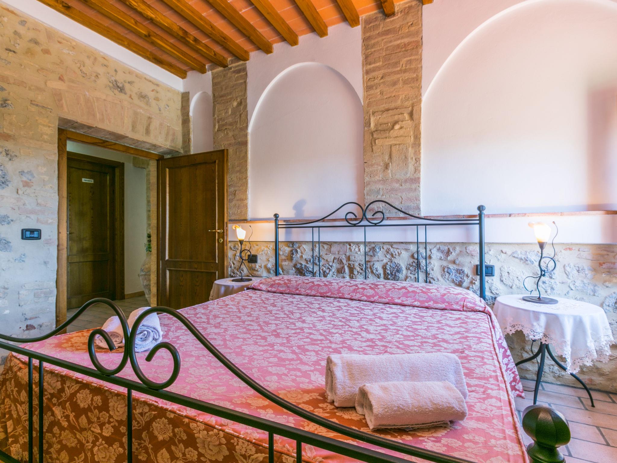 Rustic agricultural estate "Borgo Antico", detached, surrounded by trees. 5 km from the centre of San Gimignano, 600 m from the centre of San Donato, 35 km from the centre of Siena. For shared use: property 20 ha with trees, natural garden. Private: swimming pool (9 x 6 m, seasonal availability: 01.May. - 30.Sep.). Motor access (400 m via unmade road). Parking on the premises. Grocery 5 km, bus stop 500 m, railway station "Poggibonsi" 20 km, sandy beach "Cecina" 50 km. Nearby attractions: Volterra 20 km. On the estate animal husbandry. Local sale of farm products. Please note: the owner lives in the same residence. The owner has a dog.