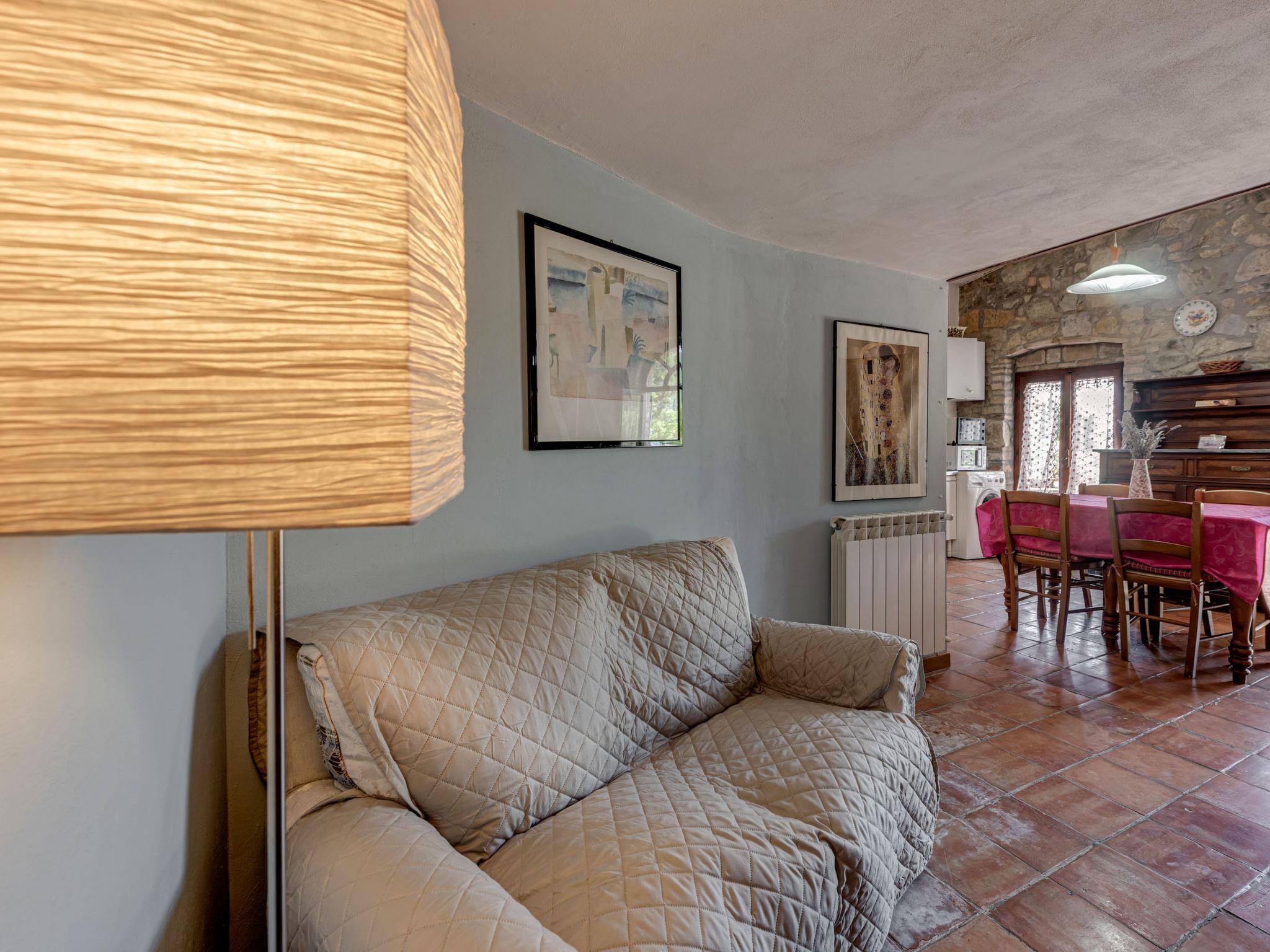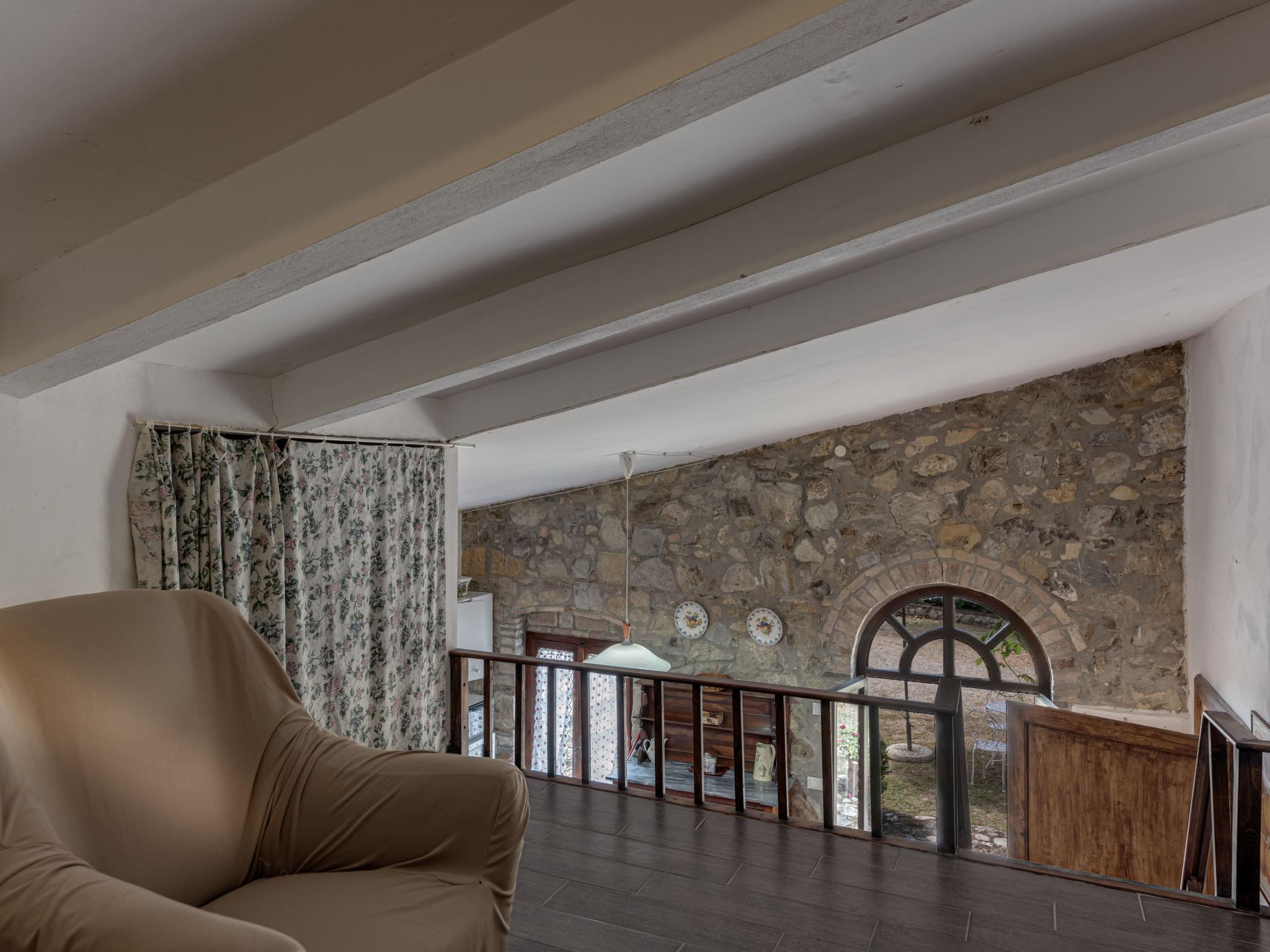 "Glicine", 4-room apartment 80 m2 on 2 levels, on the ground floor. Object suitable for 4 adults. Spacious, rustic and cosy furnishings: living/dining room with open-hearth fireplace, dining table and satellite TV (flat screen). Exit to the garden. Large living/sleeping room with 1 double bed. Exit to the garden. 1 room with 1 bed (100 cm). Kitchen (oven, Gas stove, 4 gas rings, electric coffee machine). Shower/bidet/WC. Gas heating (extra). Upper floor: open gallery with sloping ceilings with 1 bed (80 cm). Natural stone floors. Patio. Terrace furniture. Panoramic view of the countryside. Facilities: children's high chair, baby cot for up to 2 year olds. Parking space n 2. Please note: suitable for families. Non-smokers only. Maximum 1 pet/ dog allowed. Private entrance. Instead of an enclosed bedroom, some sleeping areas are located in an open-plan area (gallery, alcove, etc.). IT052028B5SX9HLTJD